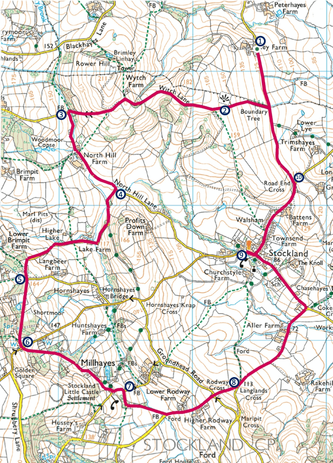 The route loops back through Stockland village, with a highly recommended pub stop at the Kings Arms just over a mile from home. For more information and contact details, check out our Local Pubs web page – we recommend you do this first as many pubs here have limited opening hours.