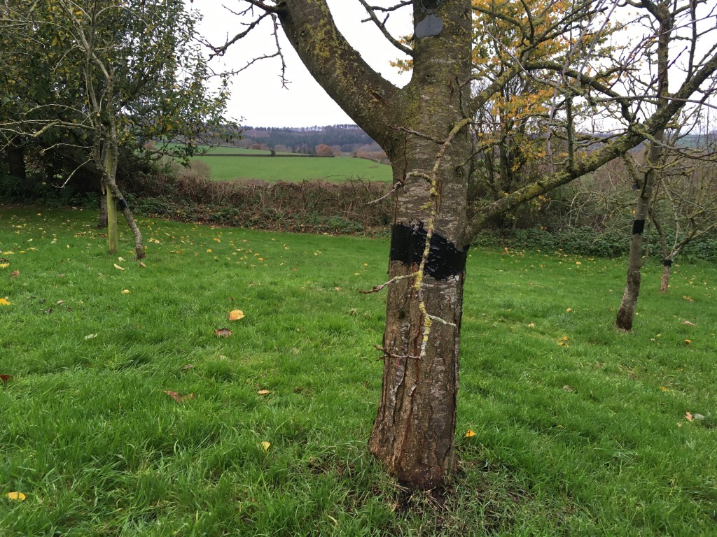 Second step in orchard TLC – greasing the trees to protect from wingless moths…