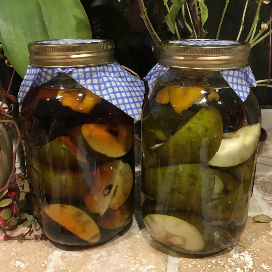 We did find one other very-effective use for the fruit – infusing various sorts of alcohol to create flavoured gins, liqueurs and brandies. We quickly learnt to balance our mixtures between those that took a couple of weeks and those that take several months (or even years), so we could start tasting them and wouldn’t need to buy collections of large mason jars, only to have them sitting round the house. Although we’ve still not tasted everything yet, our favourites are quince gin and spiced apple liqueur – the latter is fabulous on a cold winter’s evening.