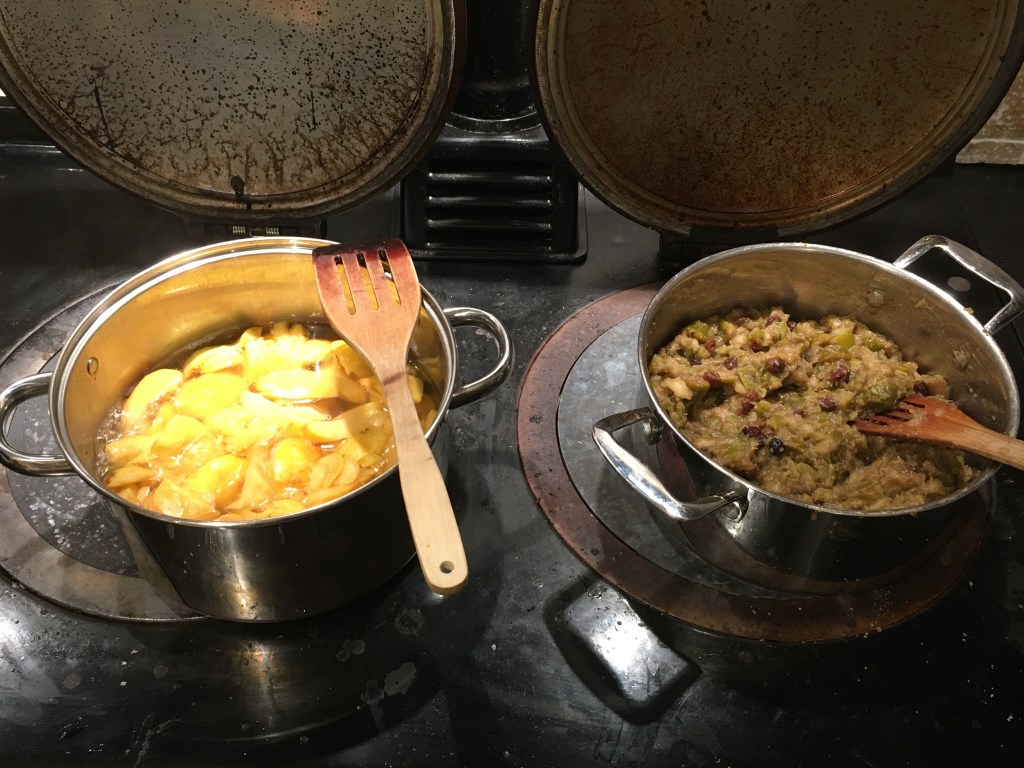 We also made our own chutney – using up the remaining green tomatoes and chillis that we brought with us from London, before starting to google recipes to use up the orchard fruit as it ripened. The smell from the spices as it cooked down kept the kitchen smelling lovely for the next couple of days!