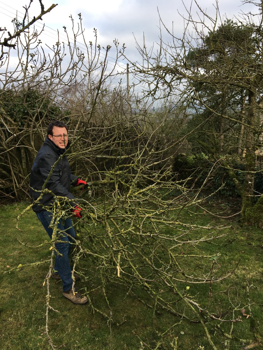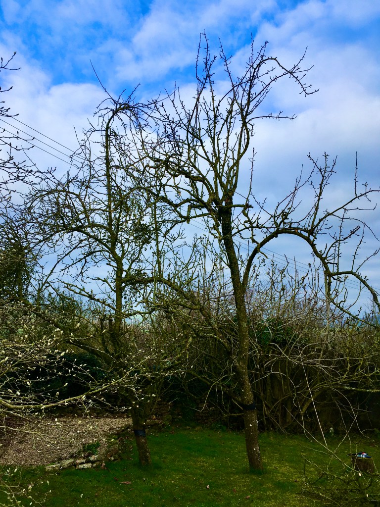 We’ve ended up focusing on the diseased parts and cutting those out first, then separating the trees from each other. We tried to follow the advice of clearing enough that a bird could fly through the branches without getting stuck (although probably not one of our garden birds, as they seem to be VERY fat now!!), but that was much harder in practice than it sounds! At least there’s a bit more air getting to the top branches now, and we hope the apple canker hasn’t spread too far. Vaccine-permitting, we’re hoping for some help with the plum trees, as one of those really has got overgrown!