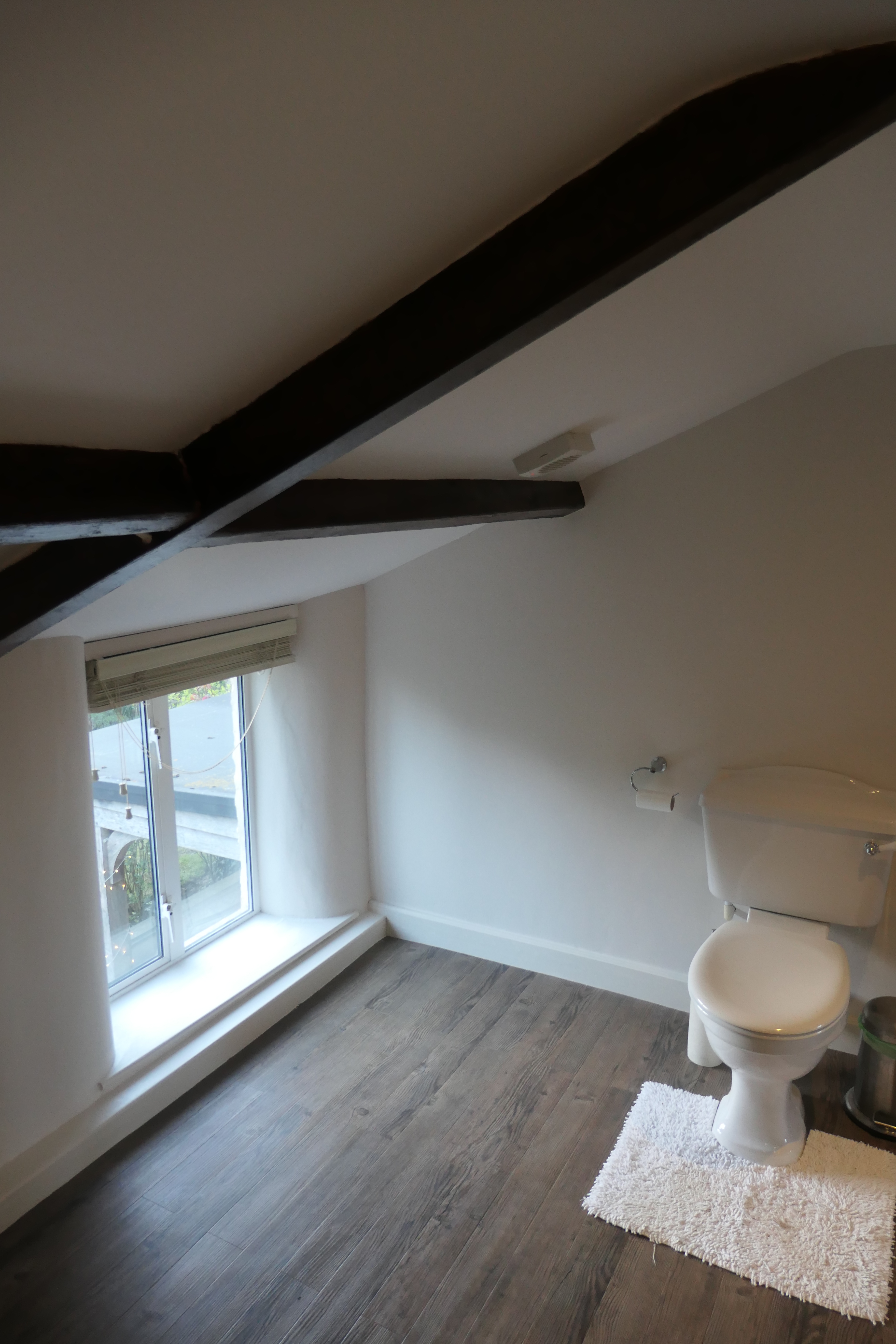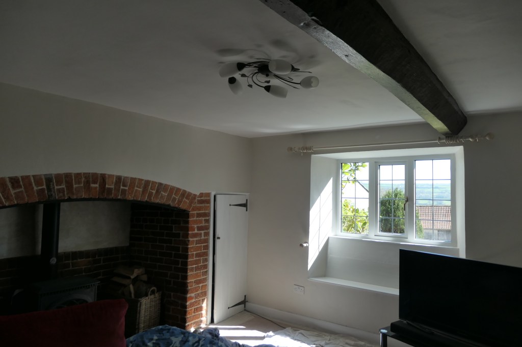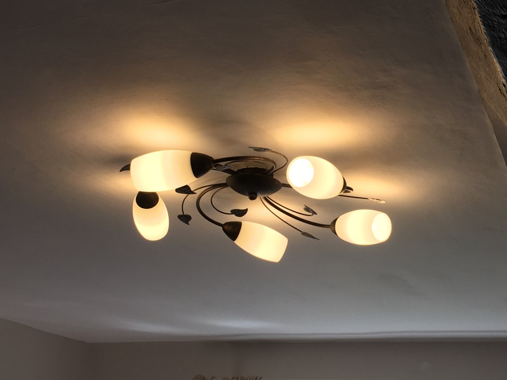 We have managed to get a couple more rooms closer to completion. The woodwork in the lounge is now completely painted – it’s amazing how the colour of the walls seems to darken alongside white woodwork rather than the previous faded yellow. And our new lounge light unexpectedly arrived on the Thursday before Easter, so we managed to get that in place too. Previously a pretty dark room with a single pendant and a lampshade that funnelled the light downwards only, our new LED bulbs spread the light far more throughout the room. It’ll make such a difference when we have the sofas in place ready for renting the place, as there shouldn’t be any seats with limited light.