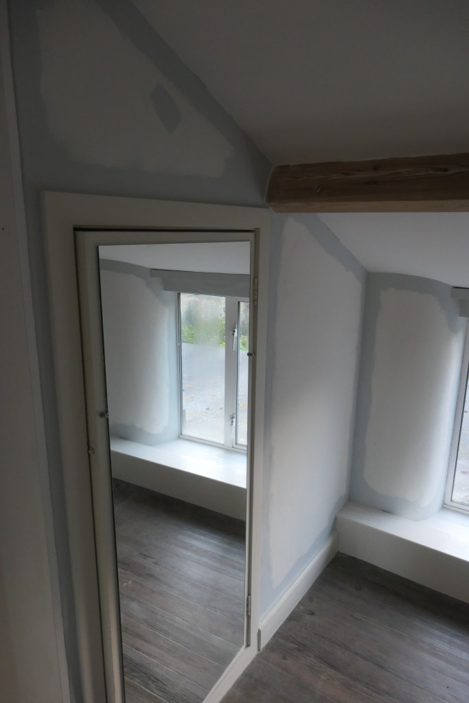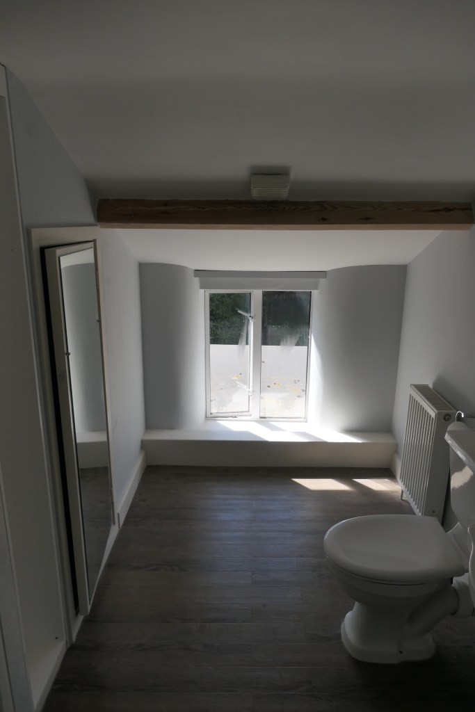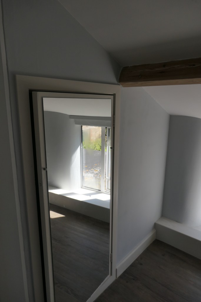 We’ve also finished the walls and ceiling in the ensuite – again taking it away from the original white to a grey-blue that’s closer to the colour of the tiles. Hopefully we can get the woodwork done over the bank holiday weekend to finish that room off; it’s not until you have to take a room apart and paint that you realise just how fiddly these small rooms are!