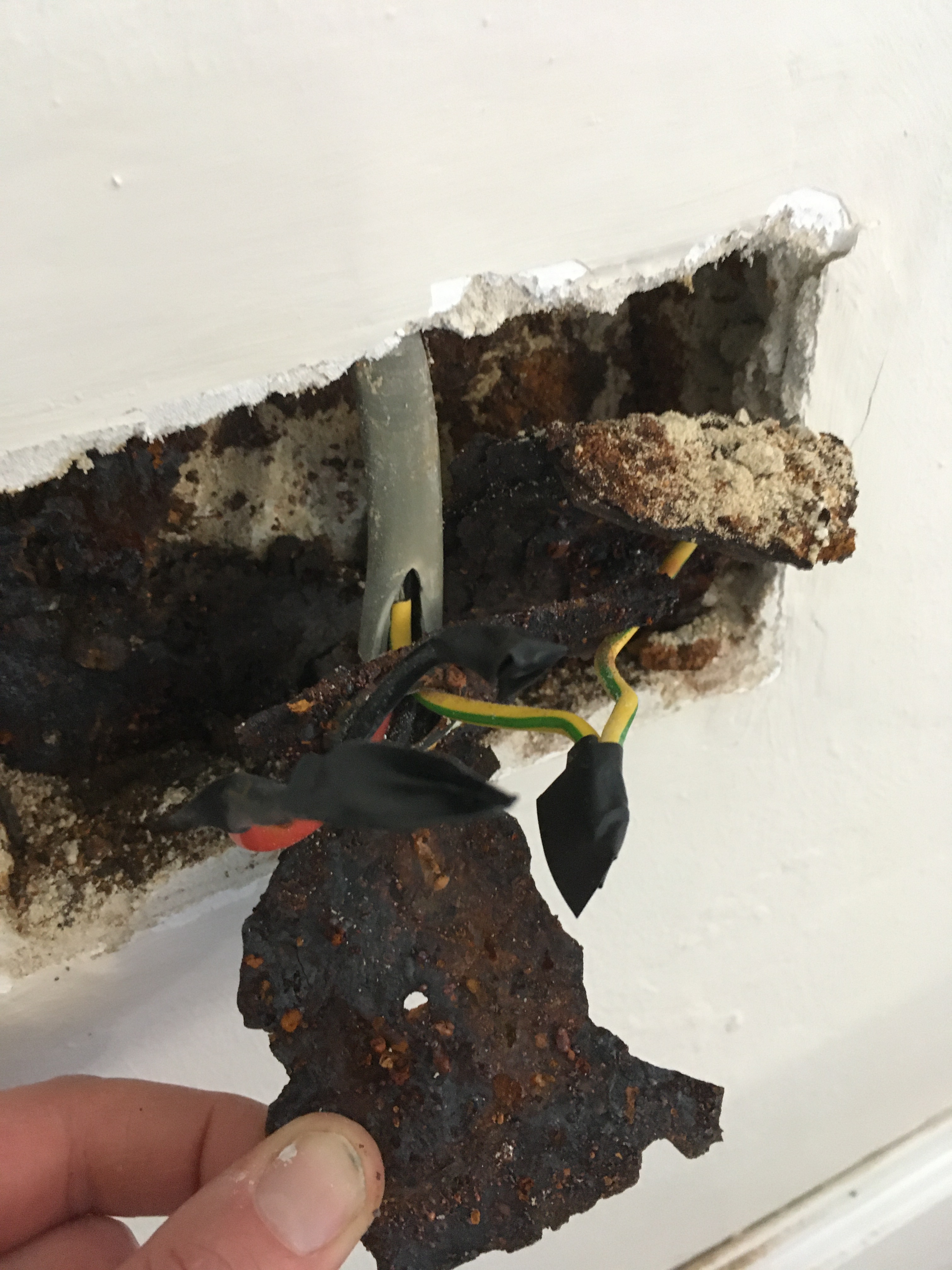 The other win this weekend was switching out an ancient (and very badly rusted) plug socket back box – a job we were dreading but was actually pretty easy, given it collapsed in our hands! One of the important jobs this summer will be to thin the magnolia that’s against the exterior wall to allow more air to circulate and dry the wall out – the back box was incredibly old but even so, it shouldn’t have rusted that much!