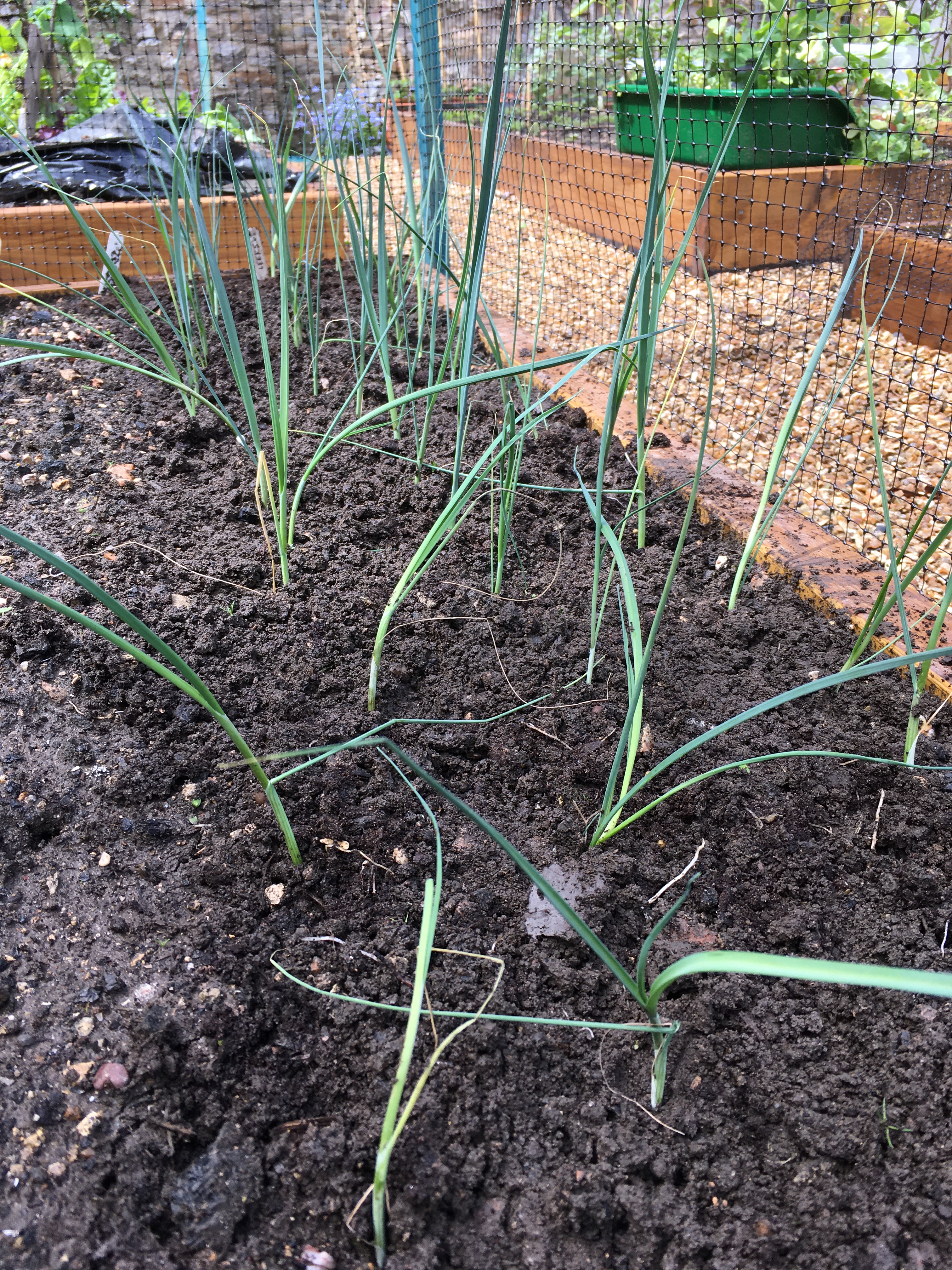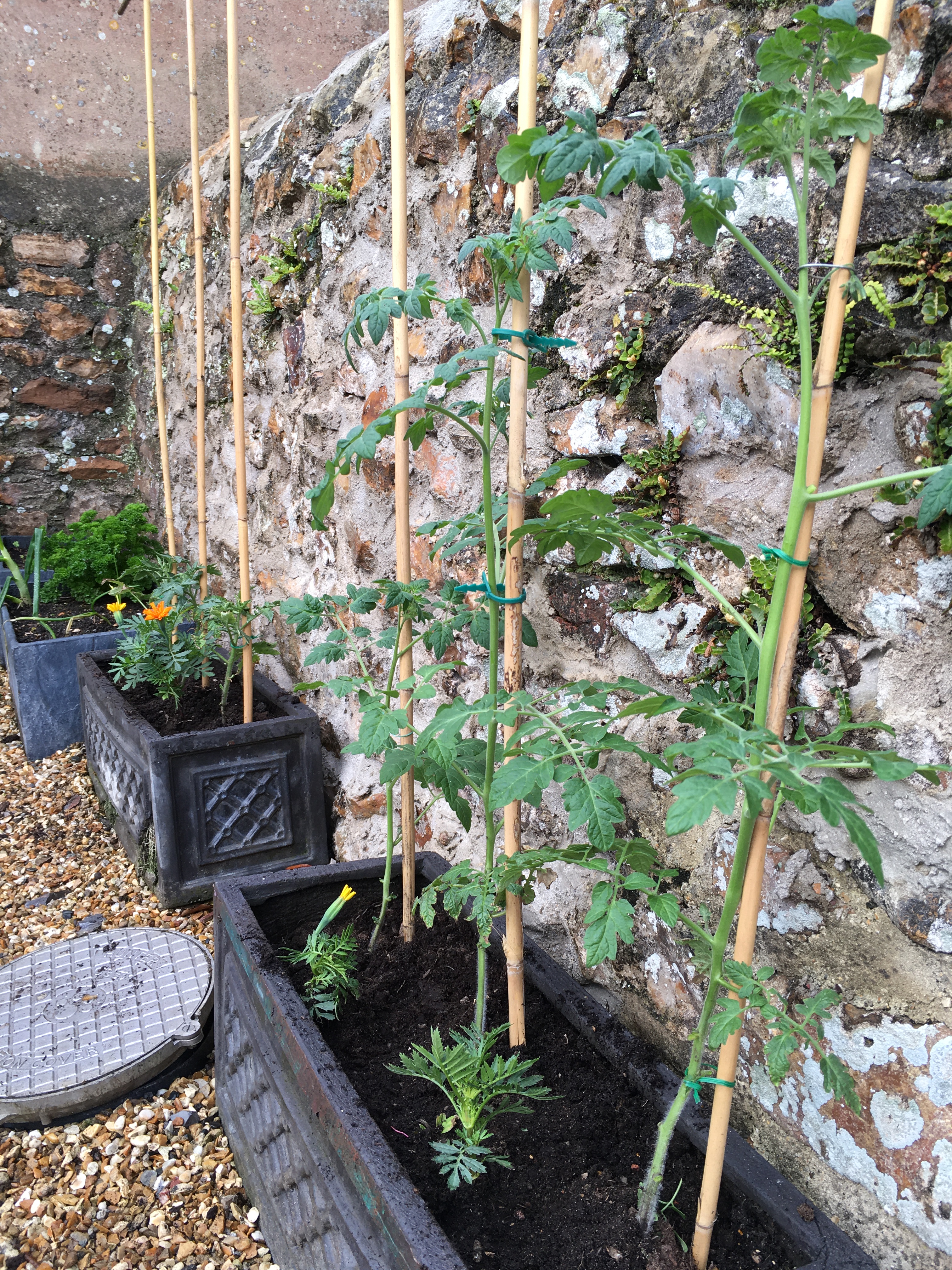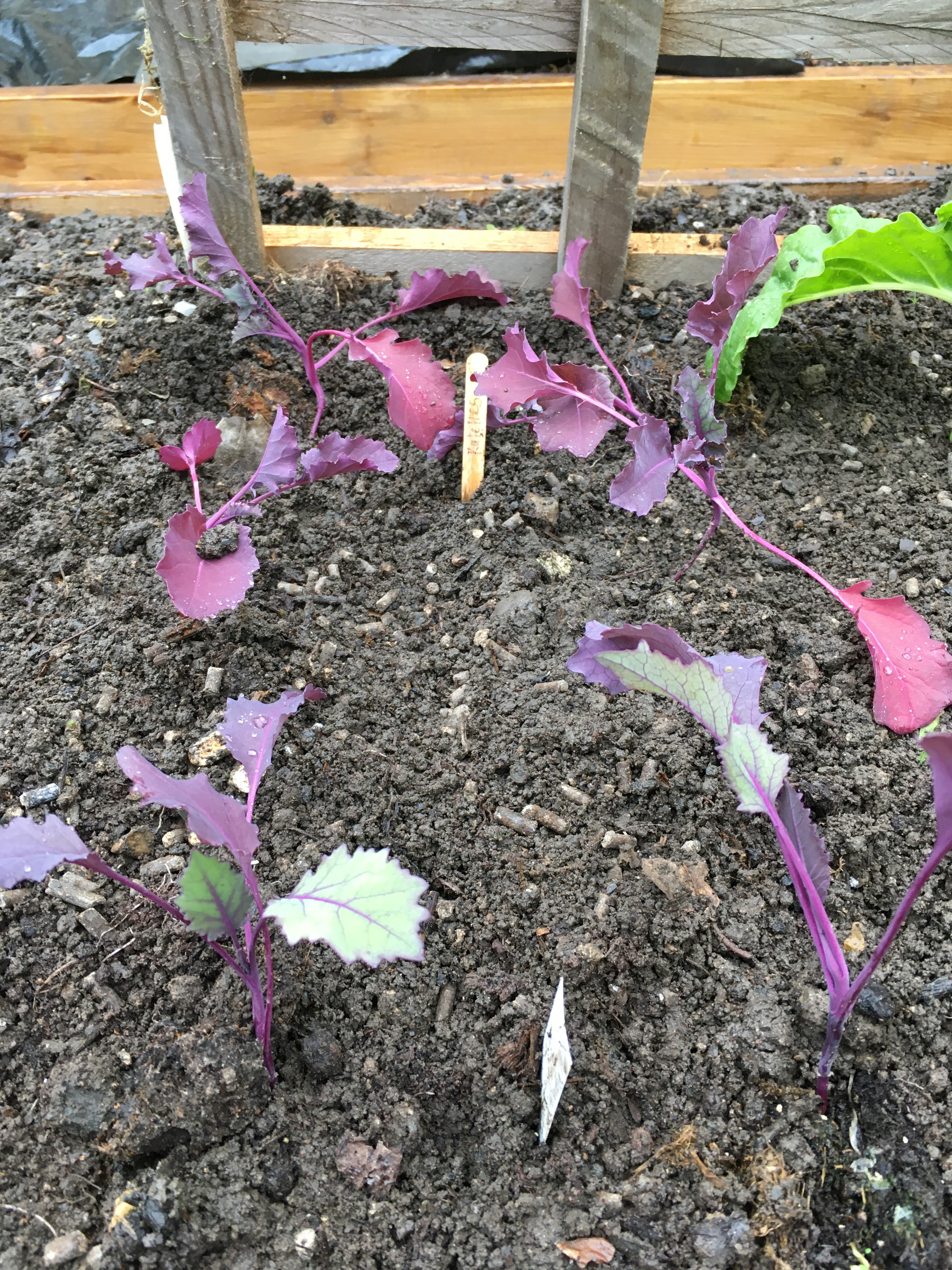 As our first ‘visitors’ next week will be helping us lay a new greenhouse base, the other priority was to plant out as many of the seedlings in the greenhouse as possible to clear it; as well as tame the lawns that seem to have appreciated the scarifying, aerating, feeding, and recent rain showers – the grass is pretty jungle-like! So, between cloud bursts this weekend, we’ve been planting out in the kitchen garden, and mowing. One of our lovely neighbours has given us cabbage seedlings in place of our failed attempt to grow them, so they’ve mostly gone out too (second photo) – the kitchen garden is suddenly looking colourful! Although I have a feeling we may not have spaced the plants out enough – ah well we’ll learn for next year!!