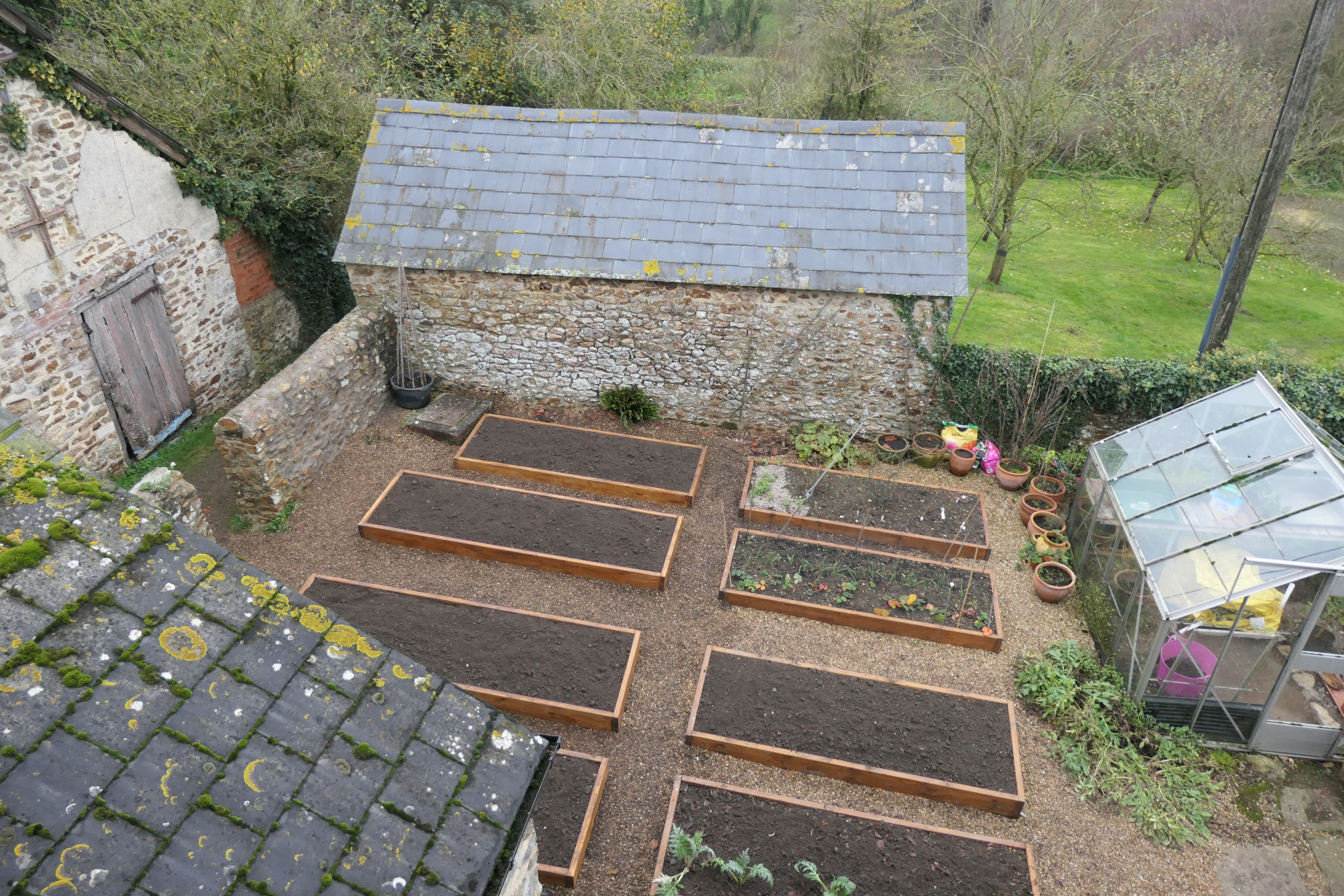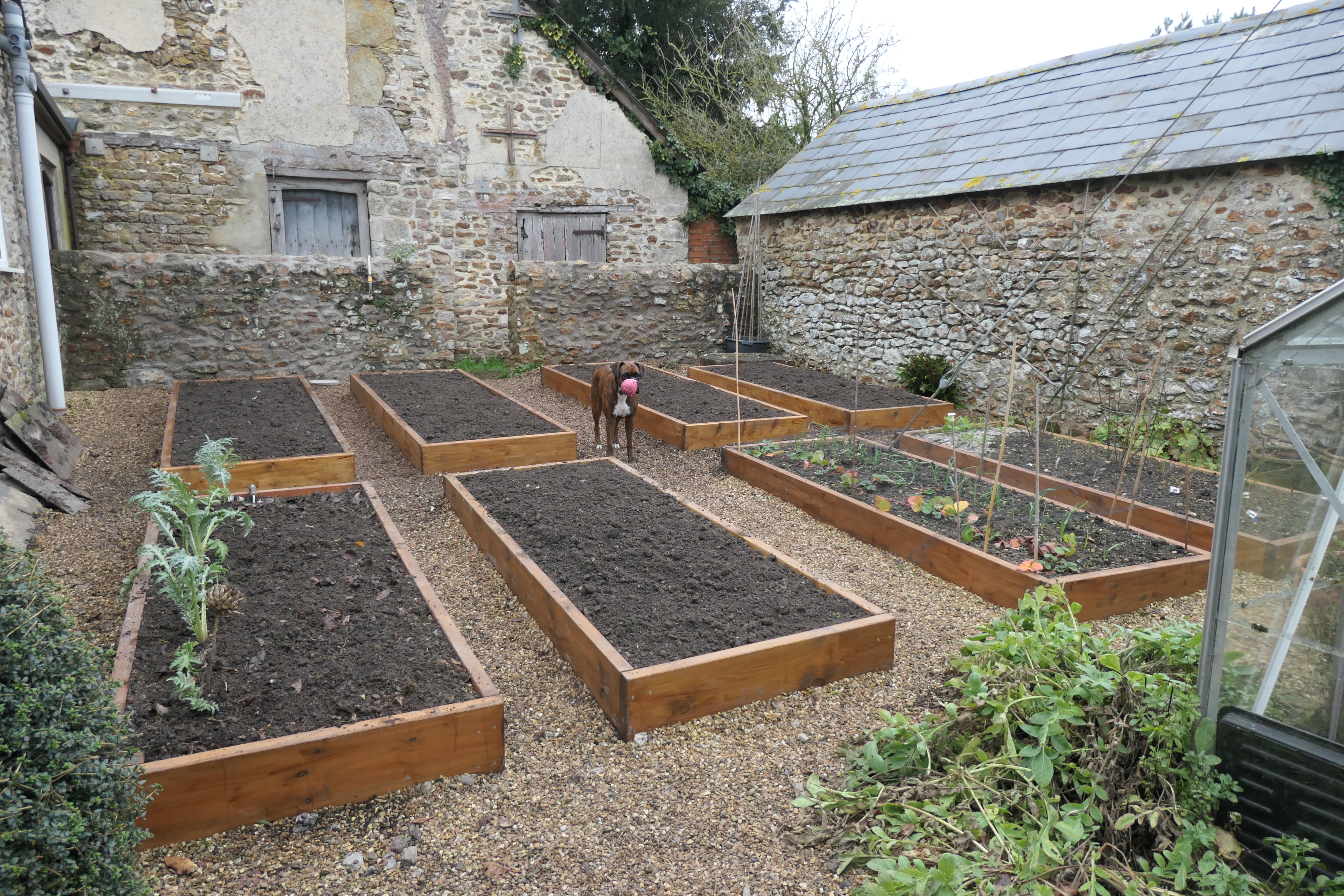 • Our first job was to tidy up the kitchen garden and shed – clearing out the latter and flattening the floor; repairing the garden wall and replacing the rotting square vegetable beds with back-friendly rectangular ones;