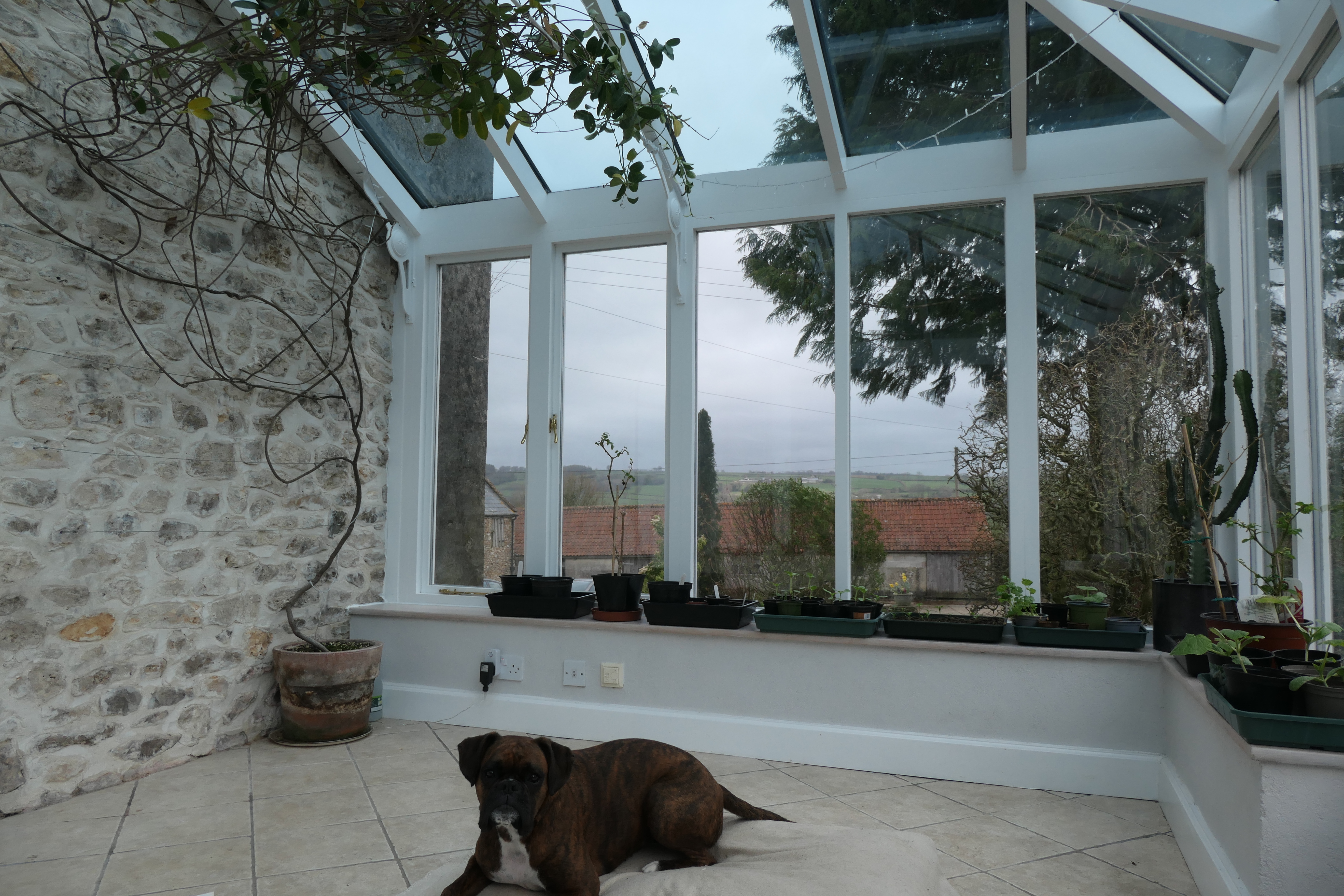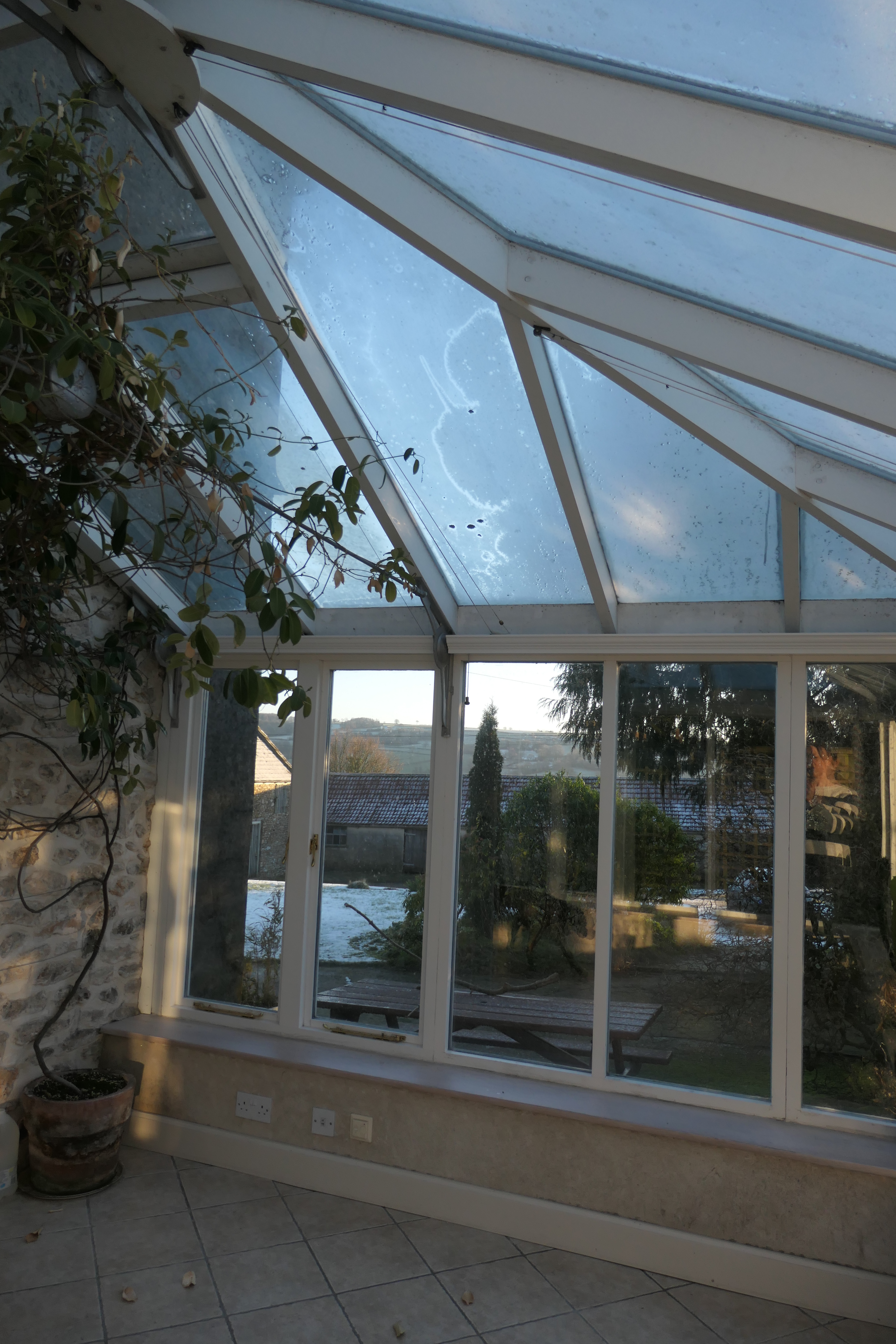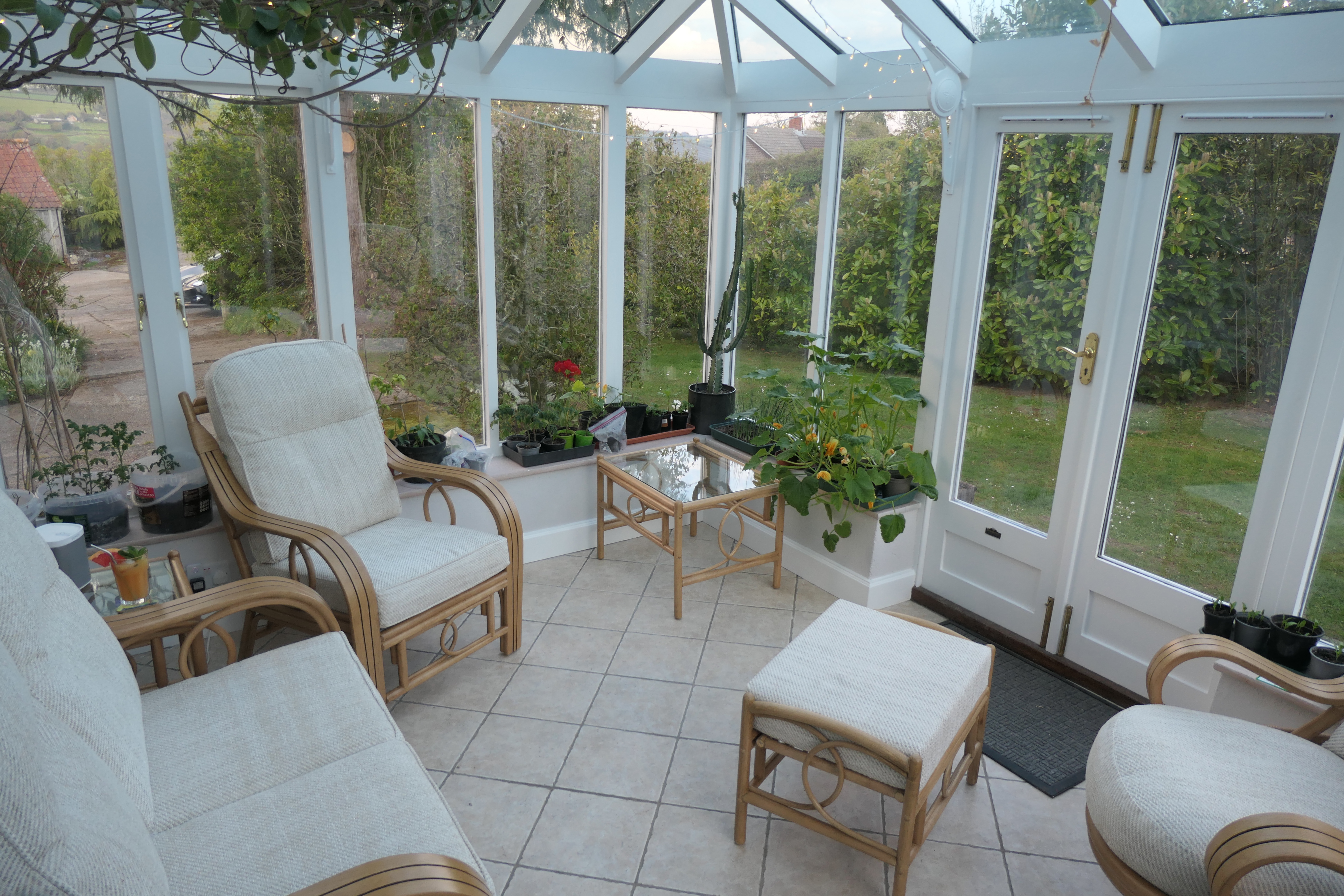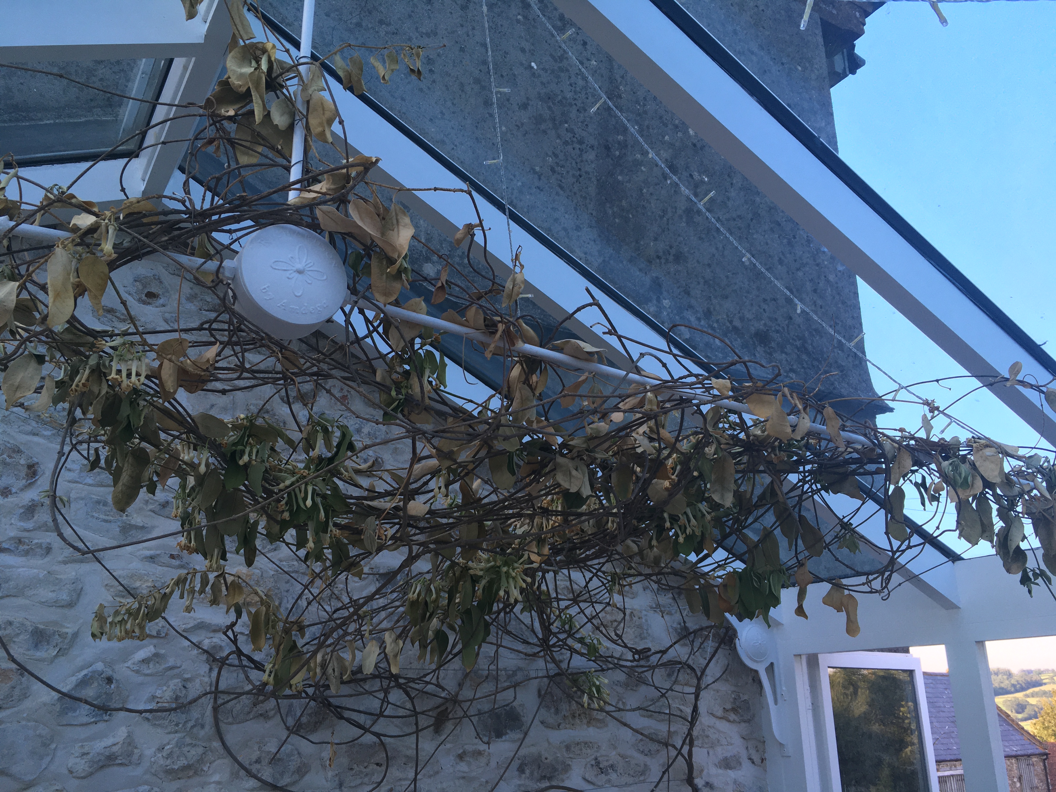 • We’ve had the experts in to repair the conservatory, which is looking much fresher and cleaner, and in theory won’t get as hot with the new blue-tinted roof. With the fairy lights up and the Madagascan jasmine, it had been a beautiful room to spend the evening in – until the recent extreme heat fried everything in there; now it’s just pretty miserable and sad. We’re exploring ways to keep it cooler in there, while we hope that the jasmine recovers!;