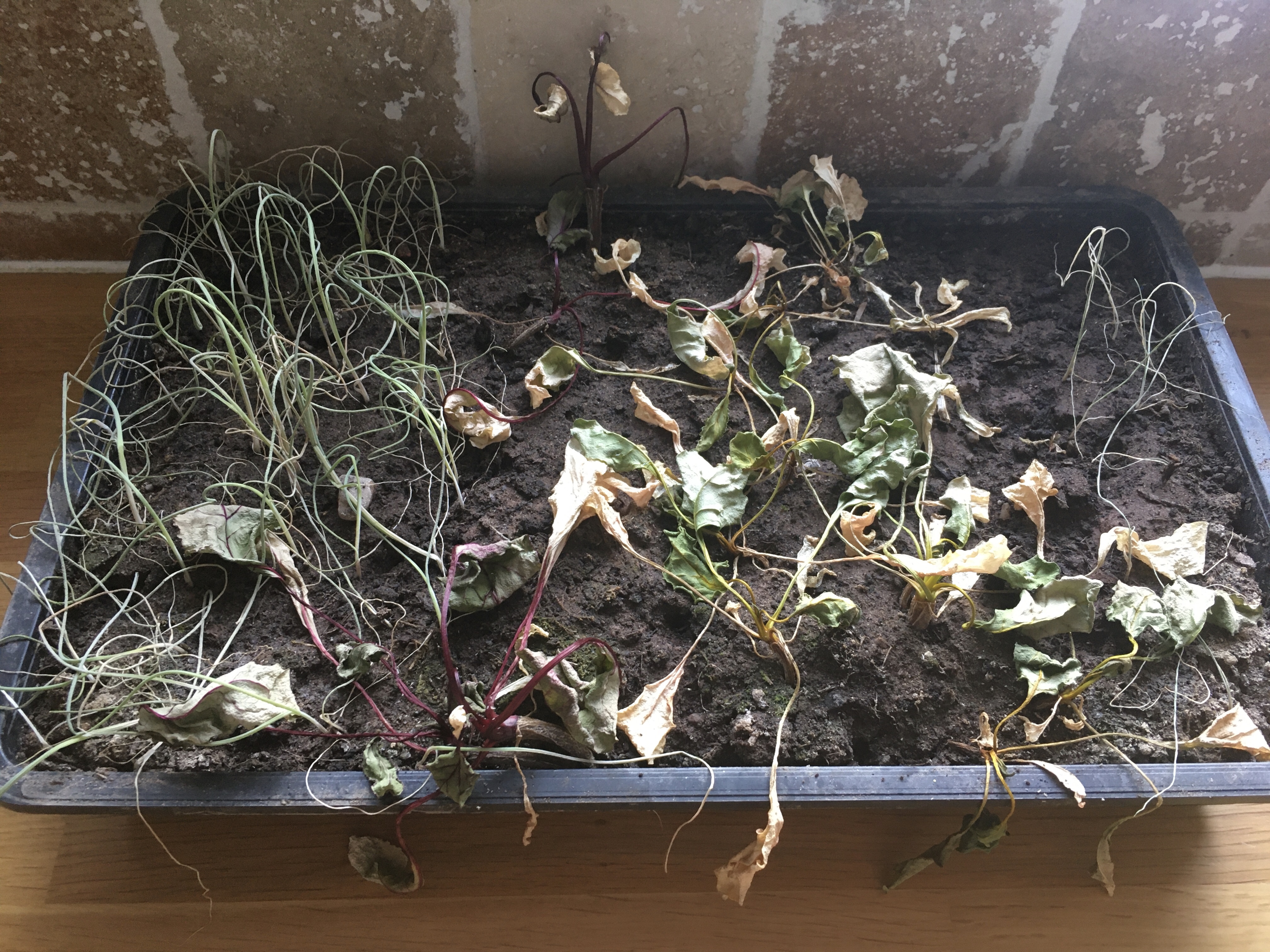• We’ve built covers for both the new trees and four beds, and then planted up every square inch with some sort of vegetable or fruit. A disappointing find this week – both red and blackcurrant bushes decimated by something – means we’ve added a new tall fruit cage-style cover to our to-do list, although we have until next spring to make it now;