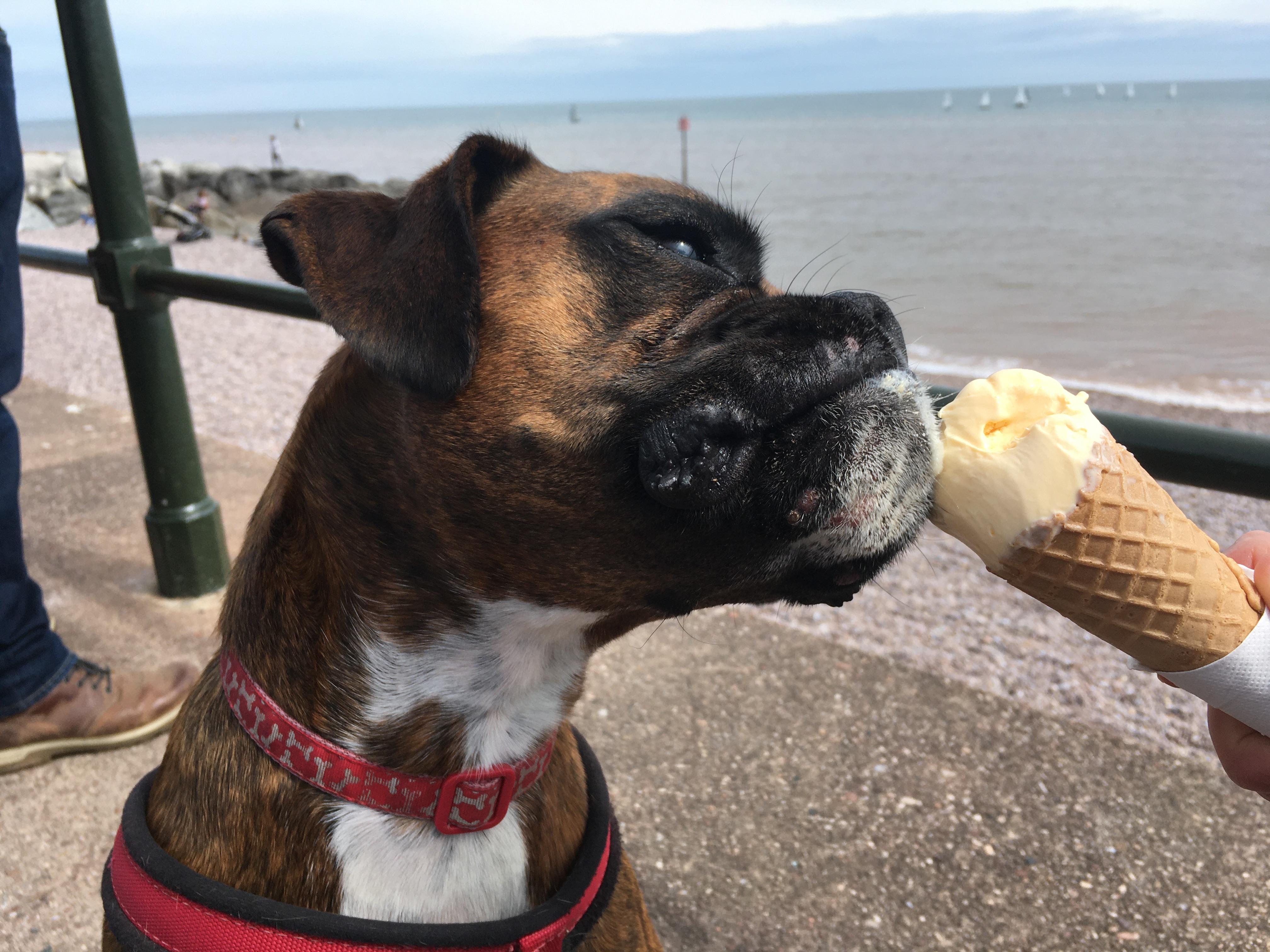 Sidmouth is one of the more beautiful coastal towns we’ve visited, full of old streets and historic shops and buildings with blue plaques – as well as lovely independent shops everywhere crammed with holiday gifts. A couple of the shops looked like they even had the original shopfront signs remaining. The seafront is lined with old resort hotels built in the Regency period, and there’s an ice-cream shop seemingly on every street – particularly welcome in the hot weather! There are several pubs and bars dotted around the town centre, although not all allow dogs in, so worth checking and booking a table if you’re taking a furry friend – we visited the Swan Inn and were glad we booked in advance!
