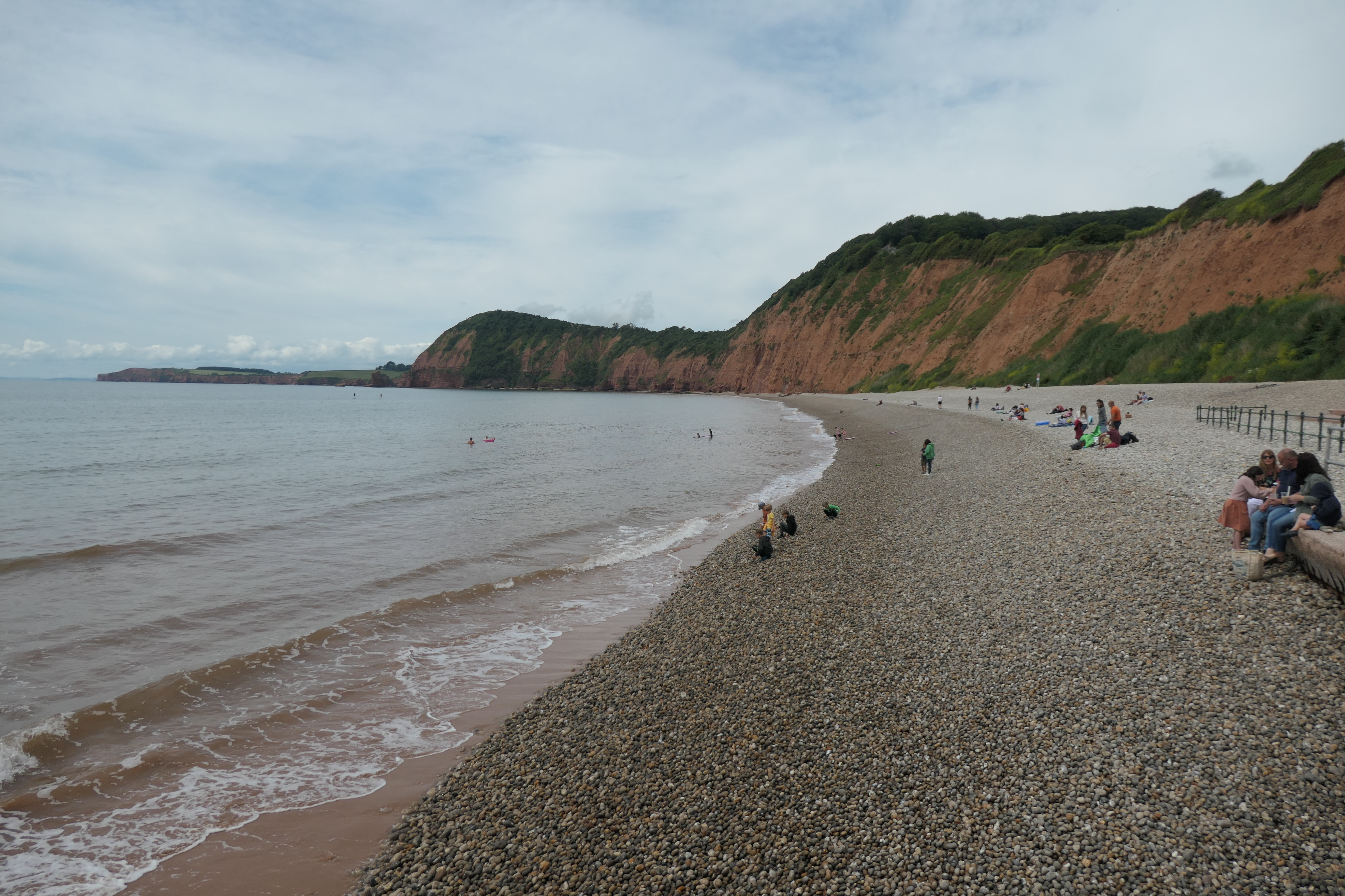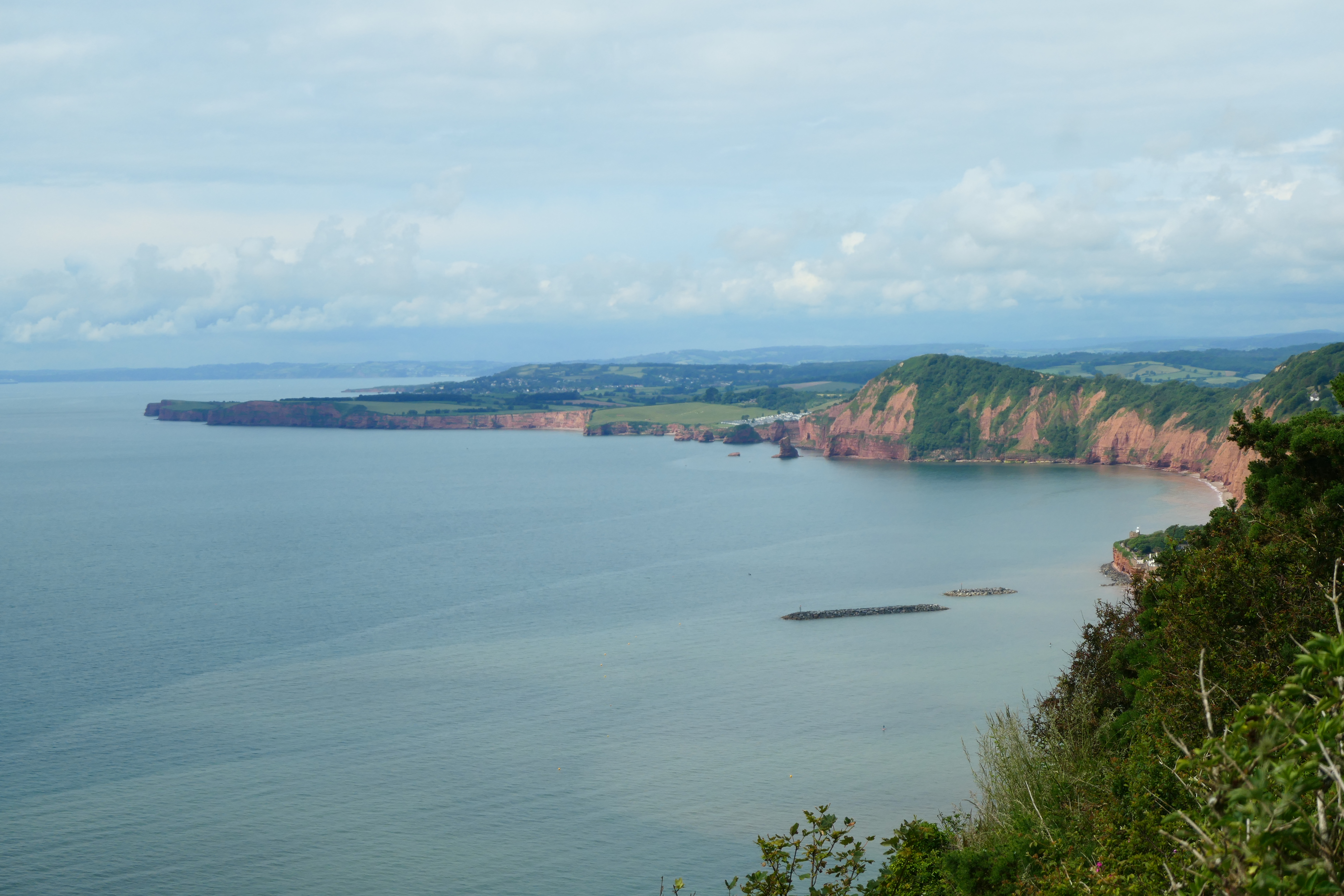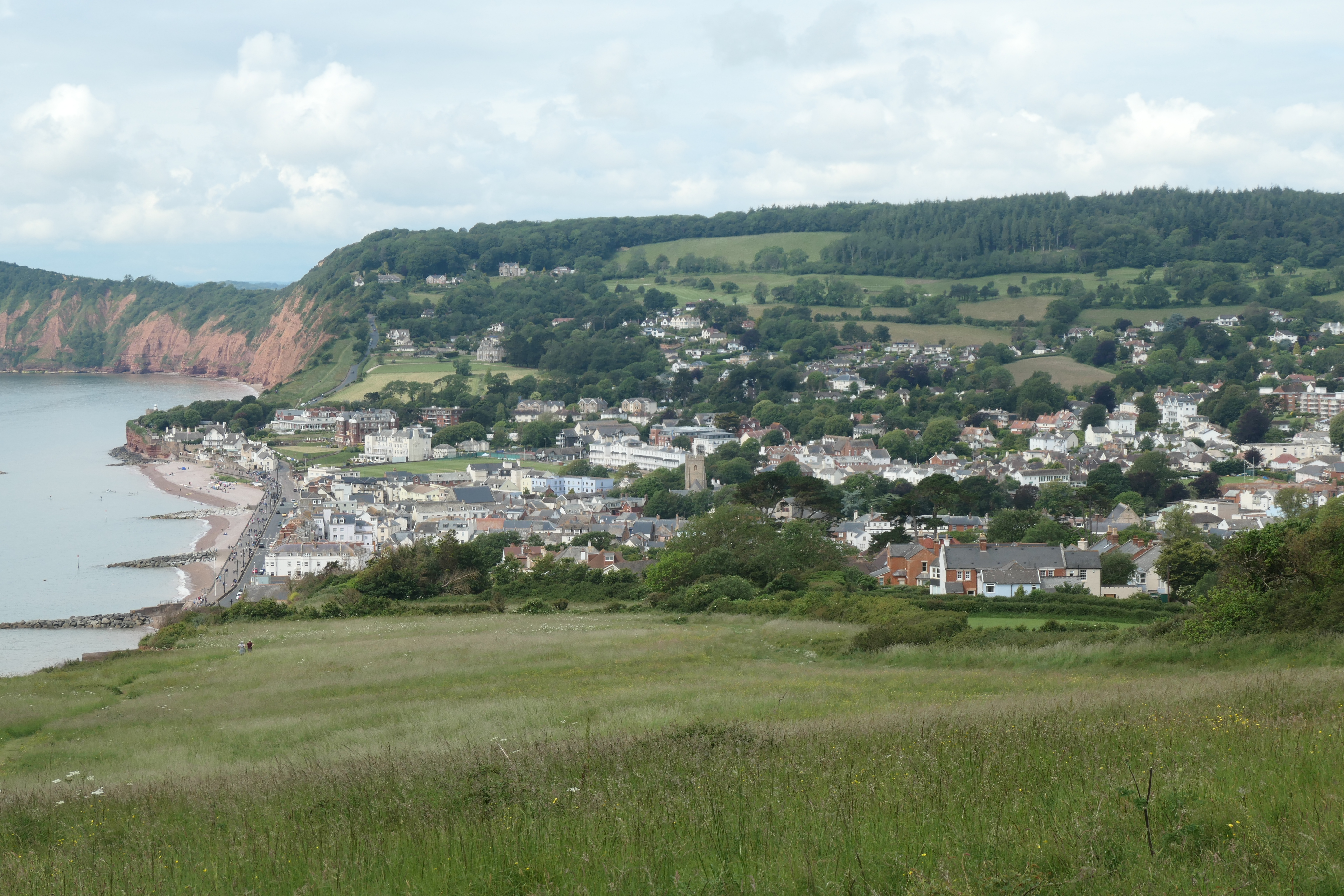 The main pebble beach (no dogs during the summer months) has a path leading around the red sandstone cliffs, and continuing up the hill takes you to Mutter’s Moor with beautiful views down to Exmouth and beyond. We then took a path around the edge of the golf course and back through the western part of the town, into the centre.