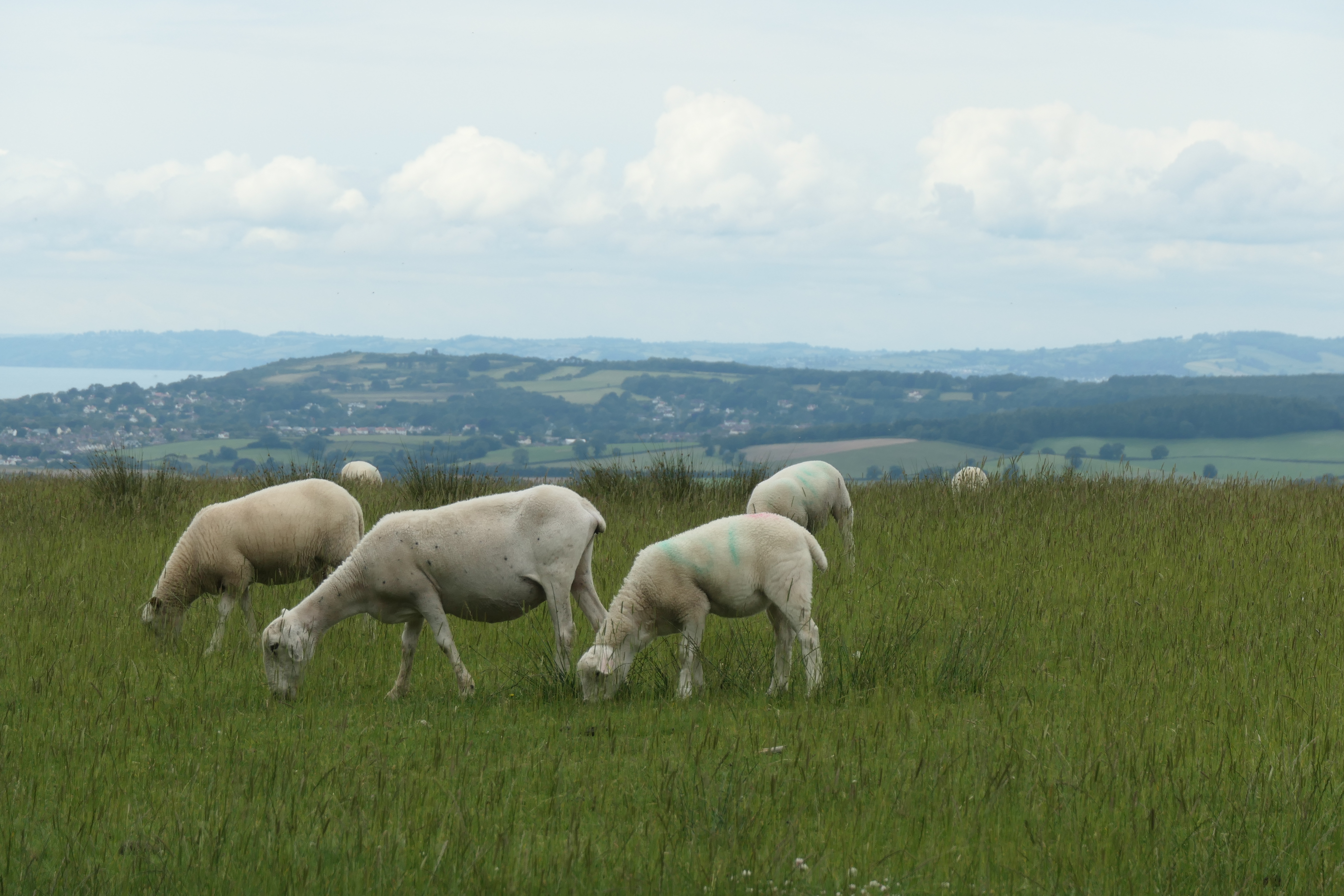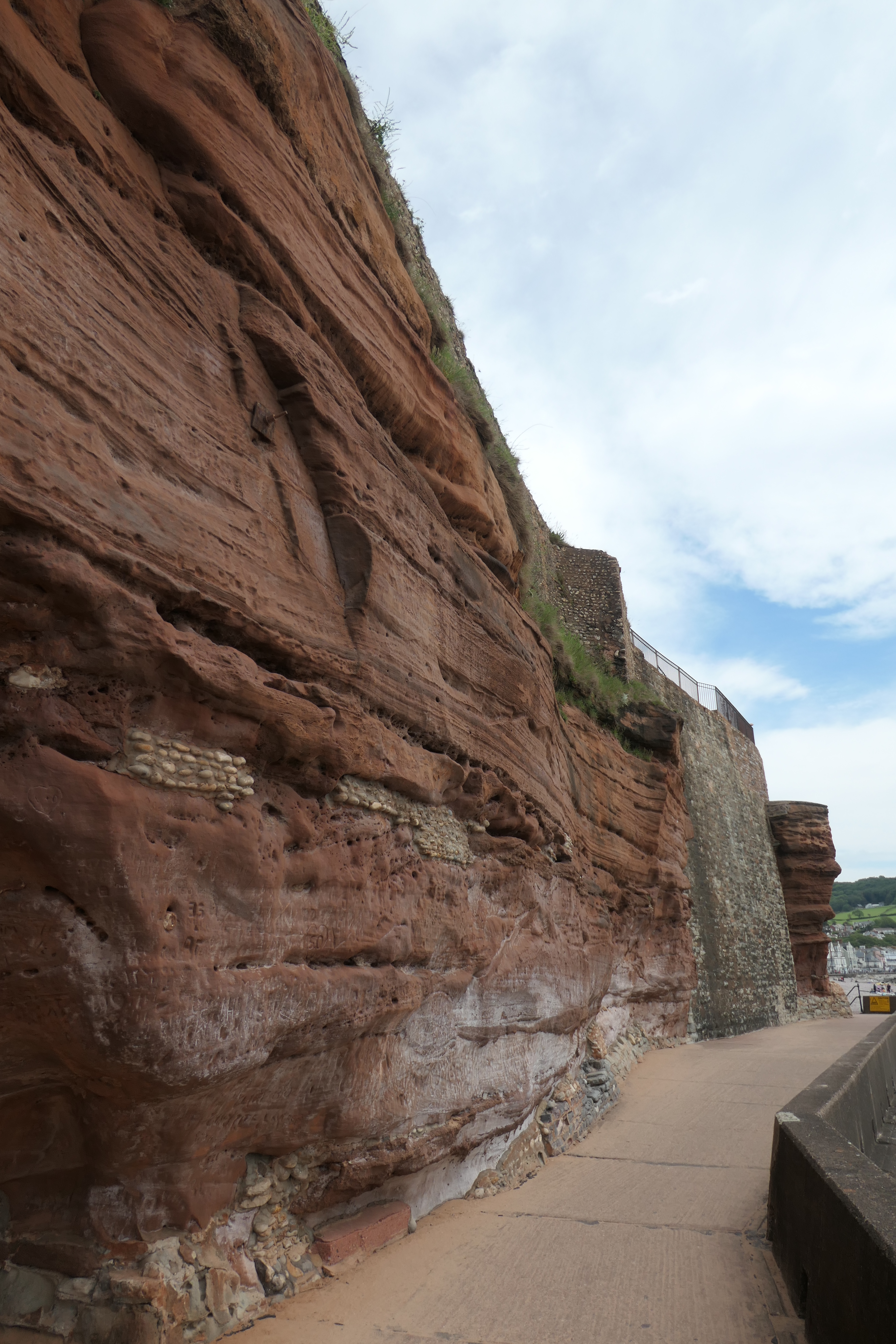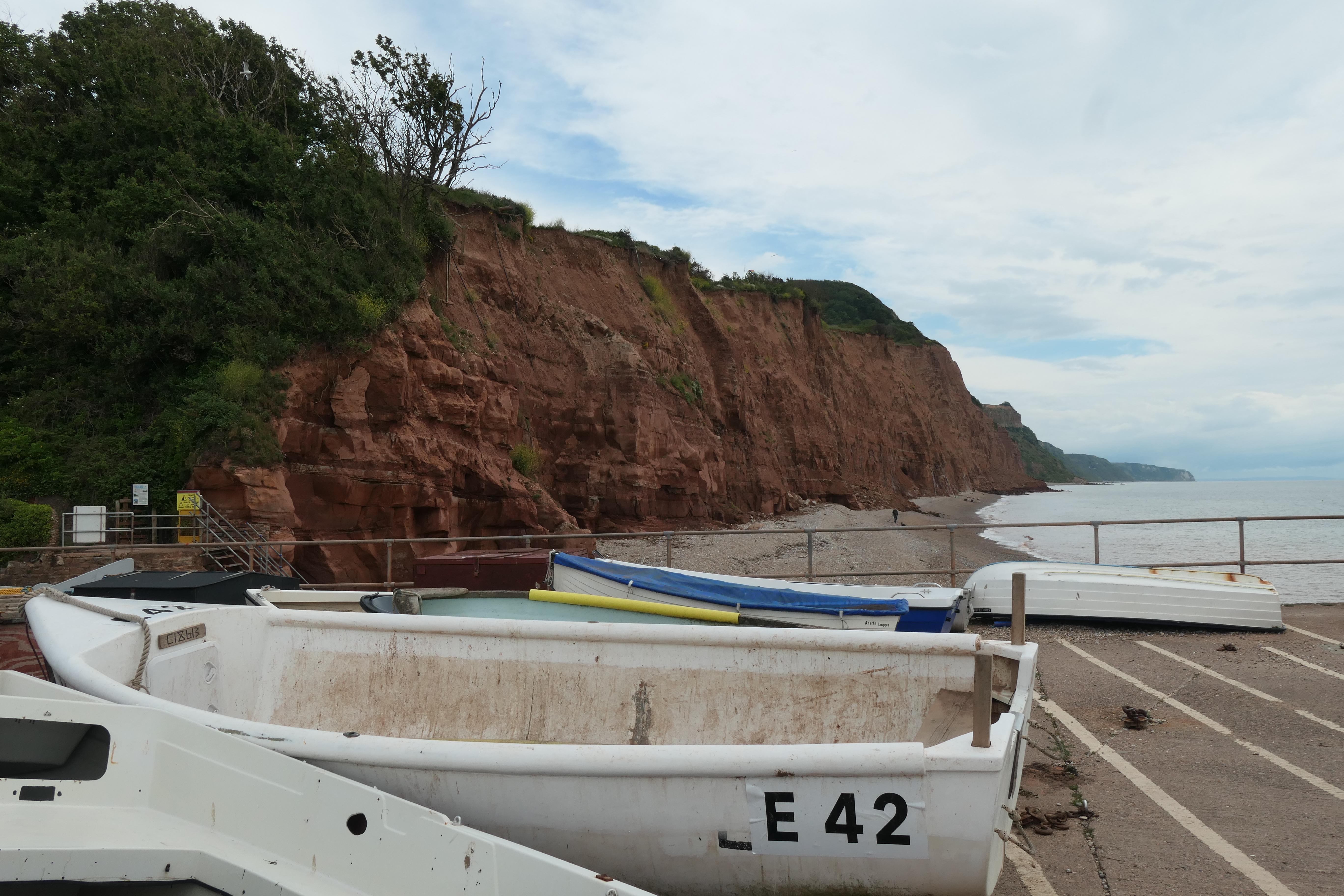 The main pebble beach (no dogs during the summer months) has a path leading around the red sandstone cliffs, and continuing up the hill takes you to Mutter’s Moor with beautiful views down to Exmouth and beyond. We then took a path around the edge of the golf course and back through the western part of the town, into the centre.