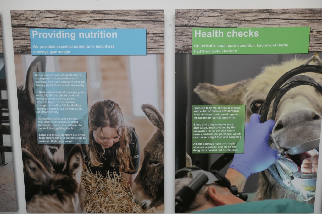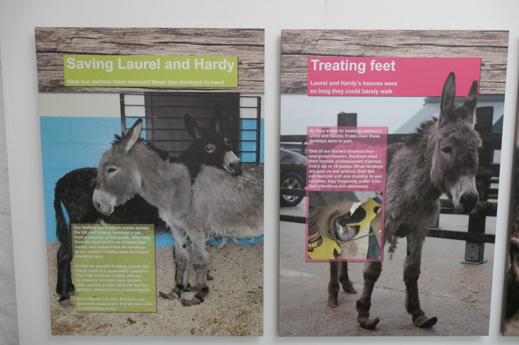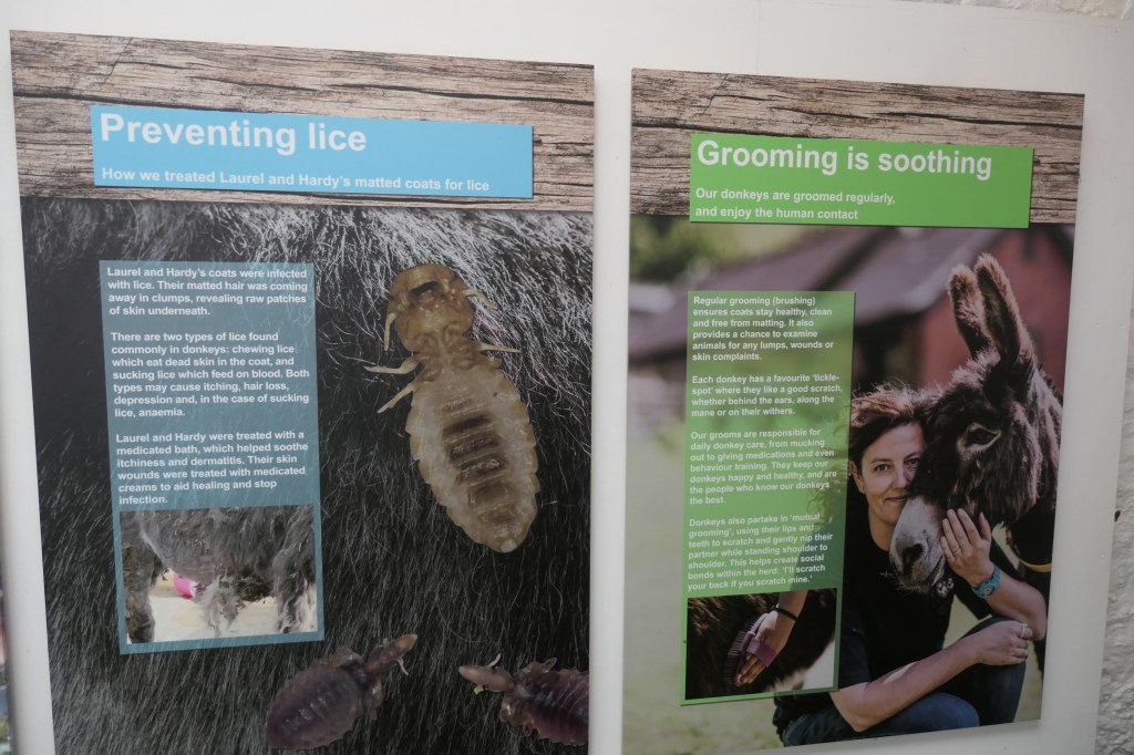 The indoor area (which isn’t dog friendly) contains a lot more information about the work that the Donkey Sanctuary does, and brings it to life with an example of two donkeys they rescued from severe neglect, and the treatment they required. Even more special as you can see and stroke the two donkeys in question, now recovered and safe.