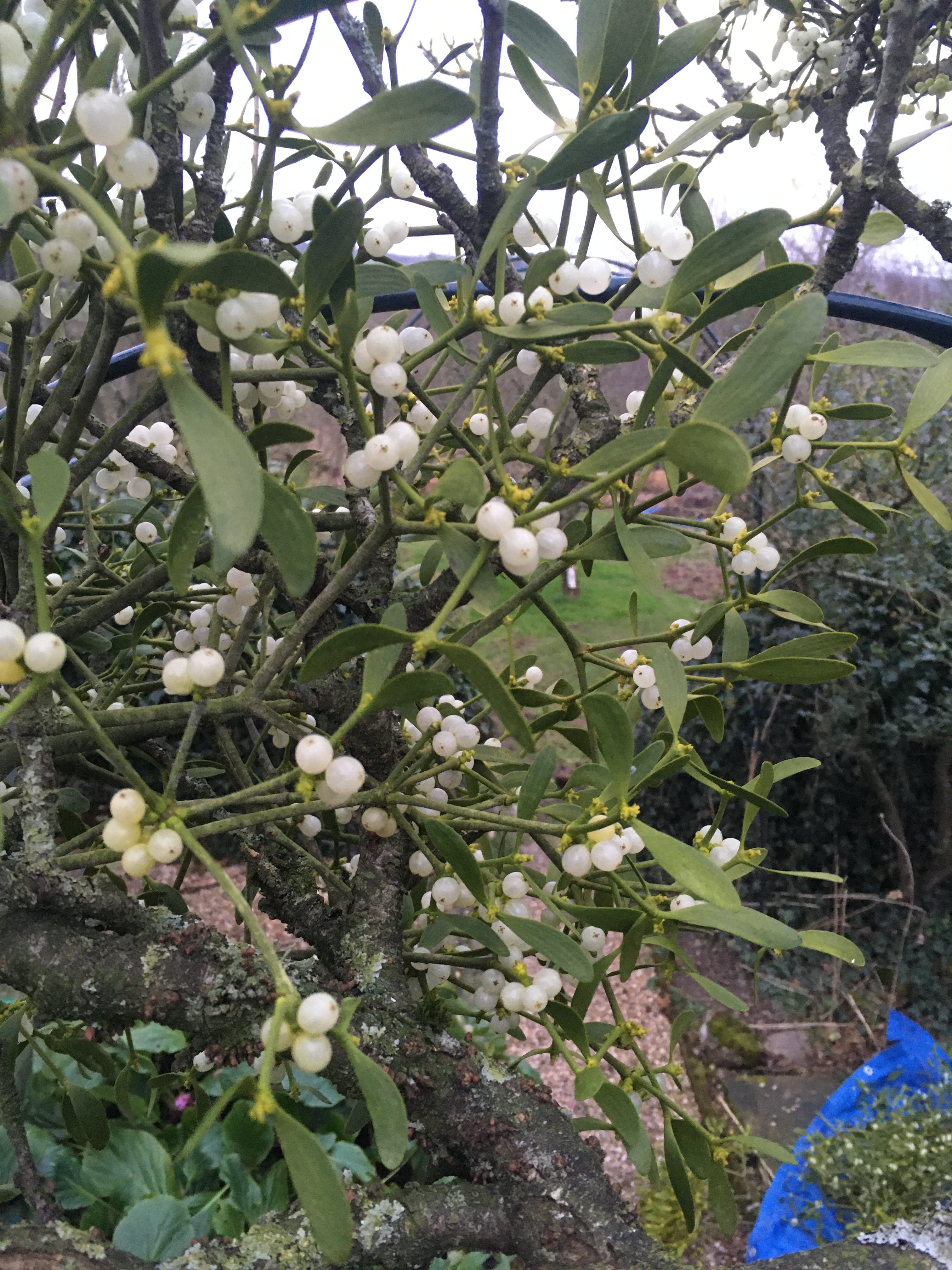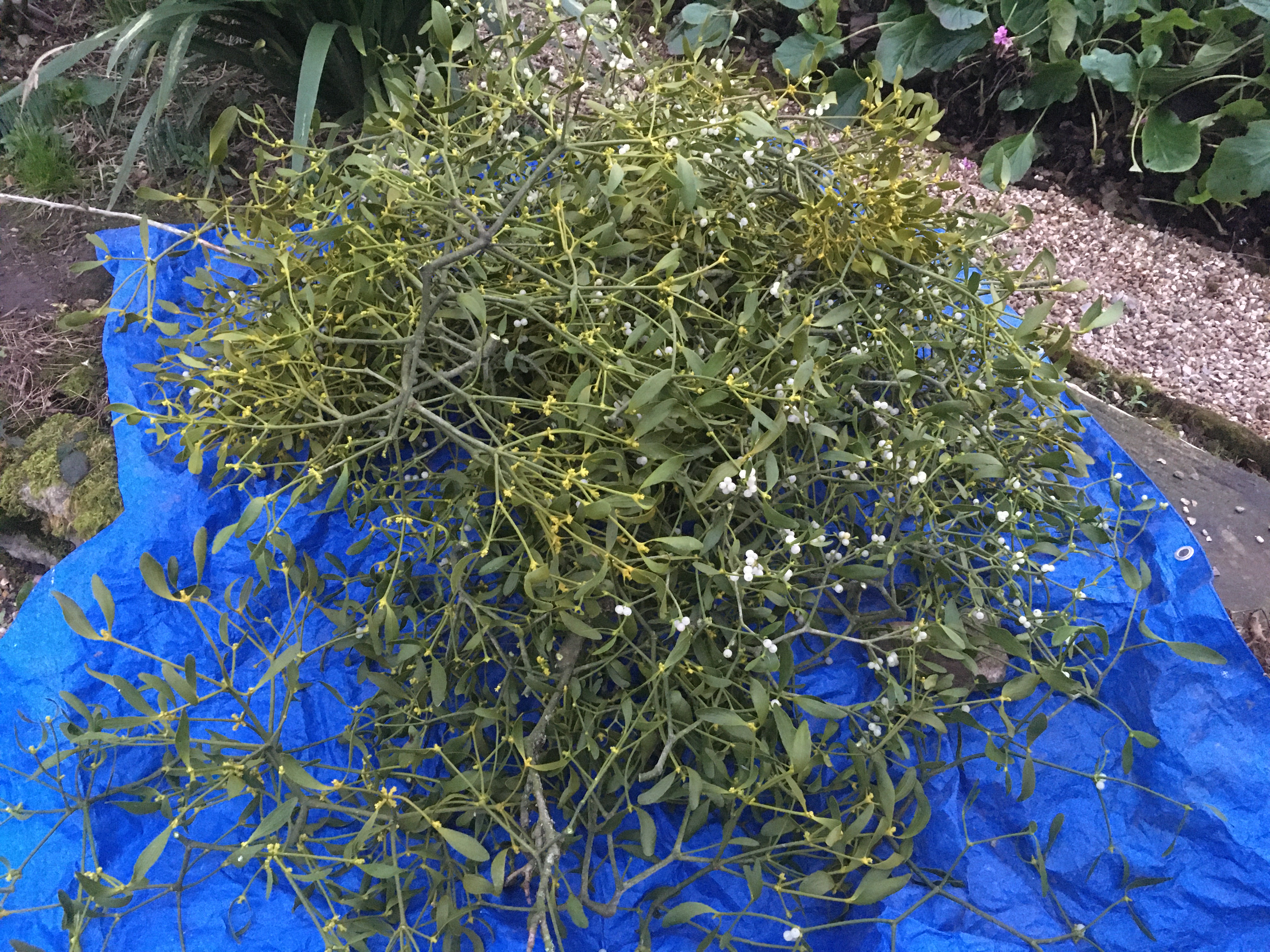 The fruit trees in our front garden seem to be canker-free (touch wood) – but instead they’re infested with mistletoe. Which would be great if it wasn’t poisonous and if we didn’t have a curious dog… We’d let it get quite bad so cut back as much as we could before it got too dark, and before the ladder wobbled too much on the gravel. Something to look forward to next weekend!