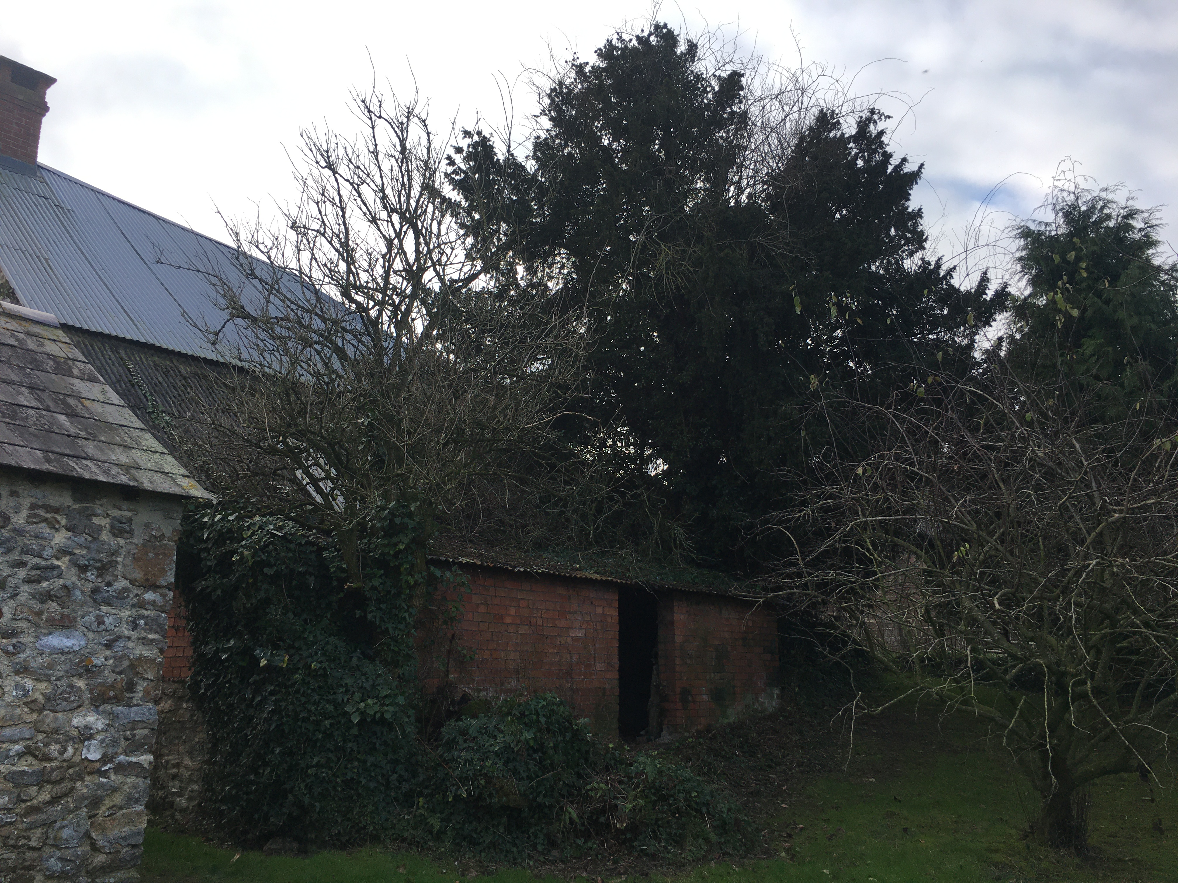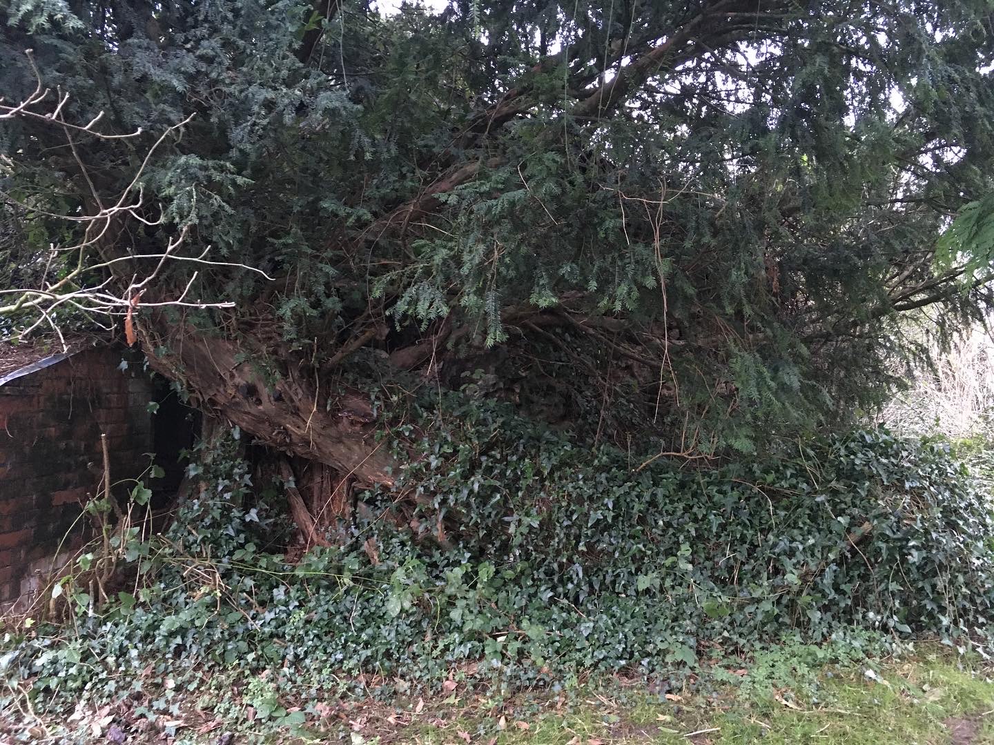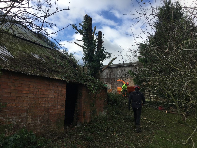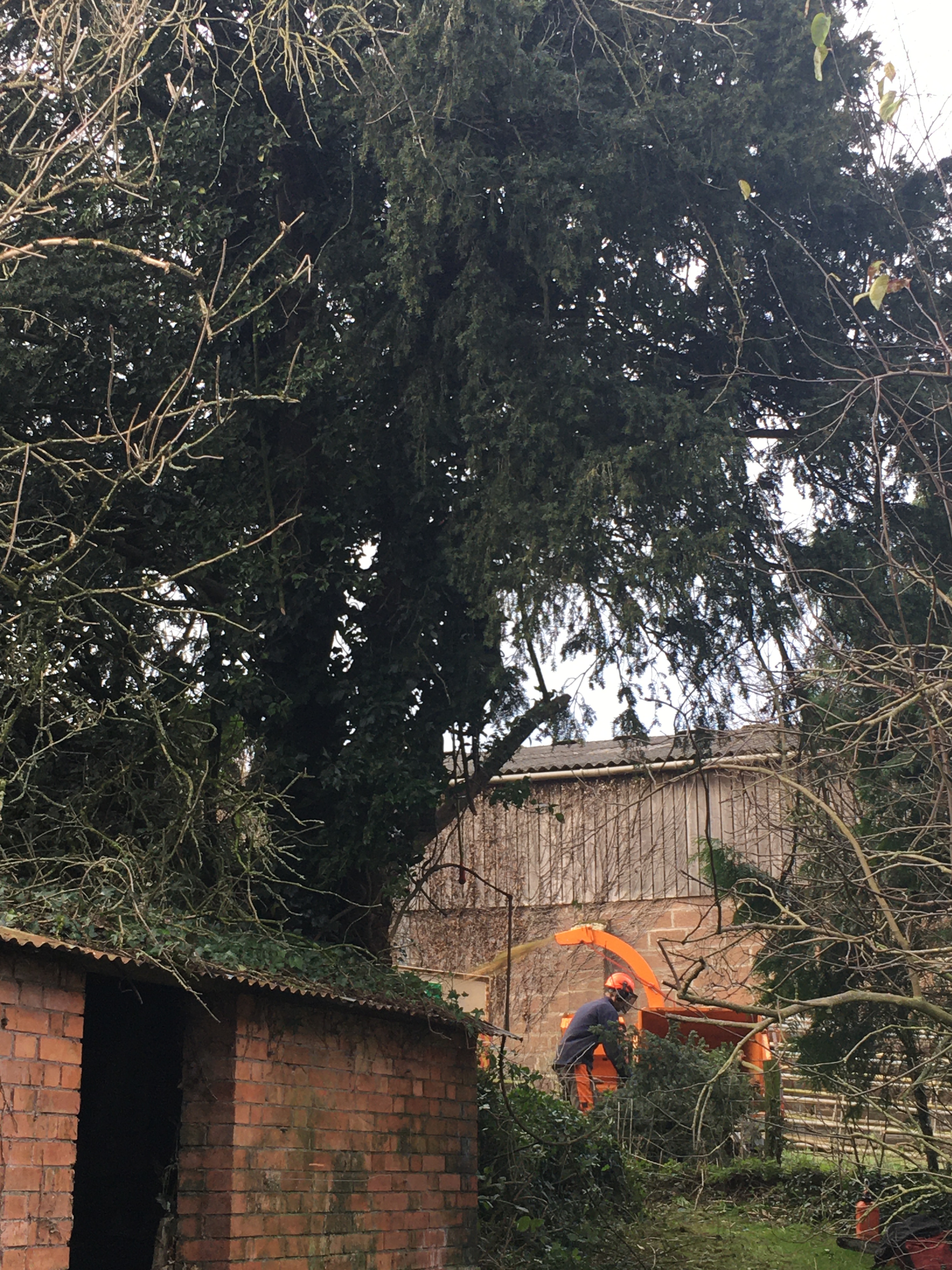 There was no way we could restore the old building with the yew tree still there, and so decided to take it out before submitting our planning application (which hopefully is nearly ready!). Our neighbour also informed us that yew is poisonous, and with the upper branches hanging over his cattle yard, he was very willing to give our tree surgeons access to his land to remove it.