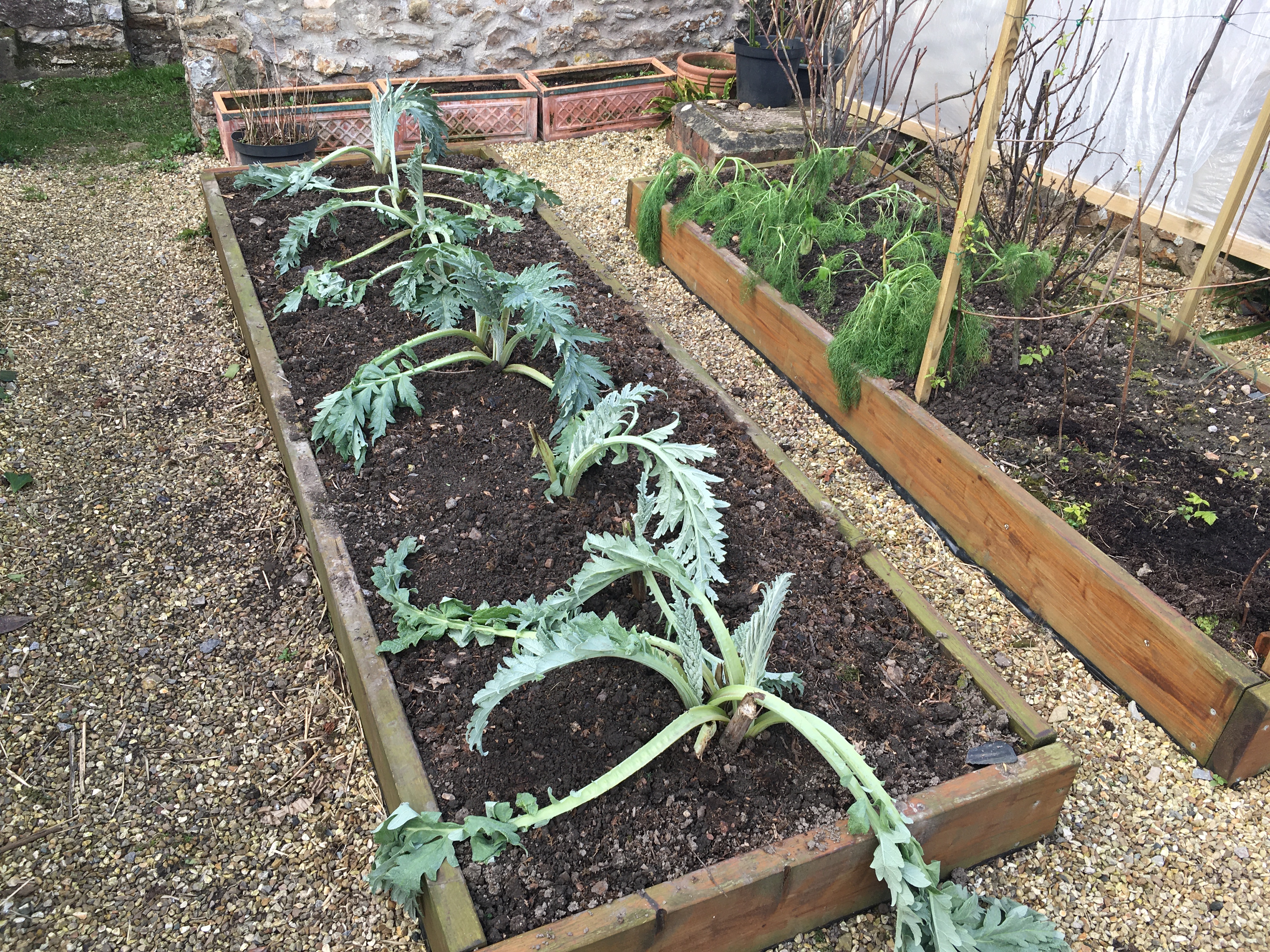 As spring is on its way, we’ve started to sow our first seeds of the year. This weekend we added another five trays – this time mostly flower seeds that we got in a sale. It turns out that some of them are edible flowers, so we’re excited to try and use them to decorate cocktails in the summer! We also moved our artichokes in our kitchen garden to a different bed – we didn’t think about how tall they grow, and originally planted them into one of the beds that we cover to protect it from birds, and so last summer the growth of the artichoke flowers was restricted too much. We’ve also split some of the roots up, and are keeping our fingers crossed that they survive.