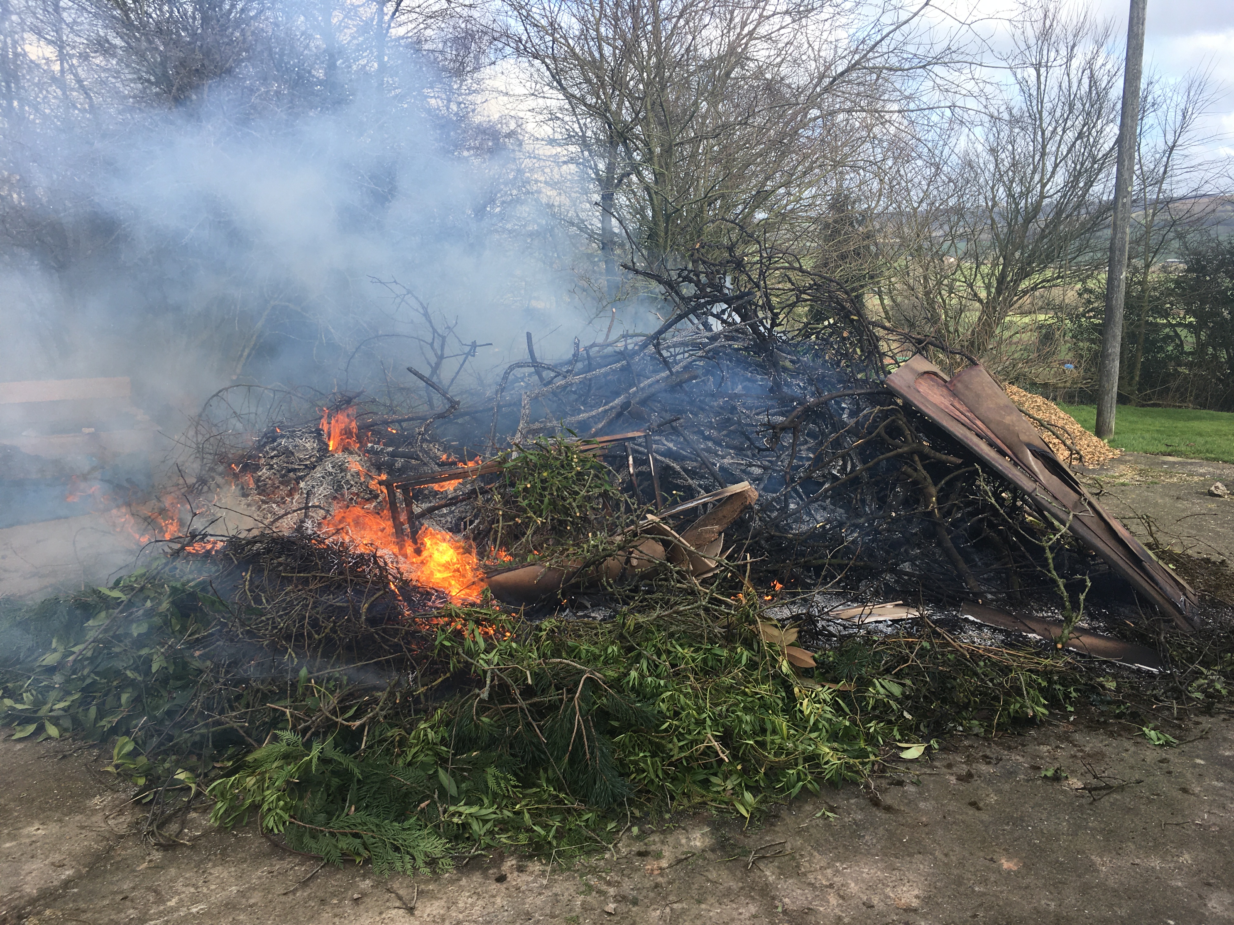 And finally – we made the most of a few recent dry days to have our first bonfire of the year! Our pile of branches, dead moss and general non-compostable garden waste had reached over 2m high and was really taking up a lot of space – so it was a real relief to be able to clear most of it. Although we probably should have started the weekend clearing the storm debris from our wooded area instead of leaving it till the end of Sunday, as our new bonfire pile has already started (however much the pup tried to help by taking branches off it to play with!)