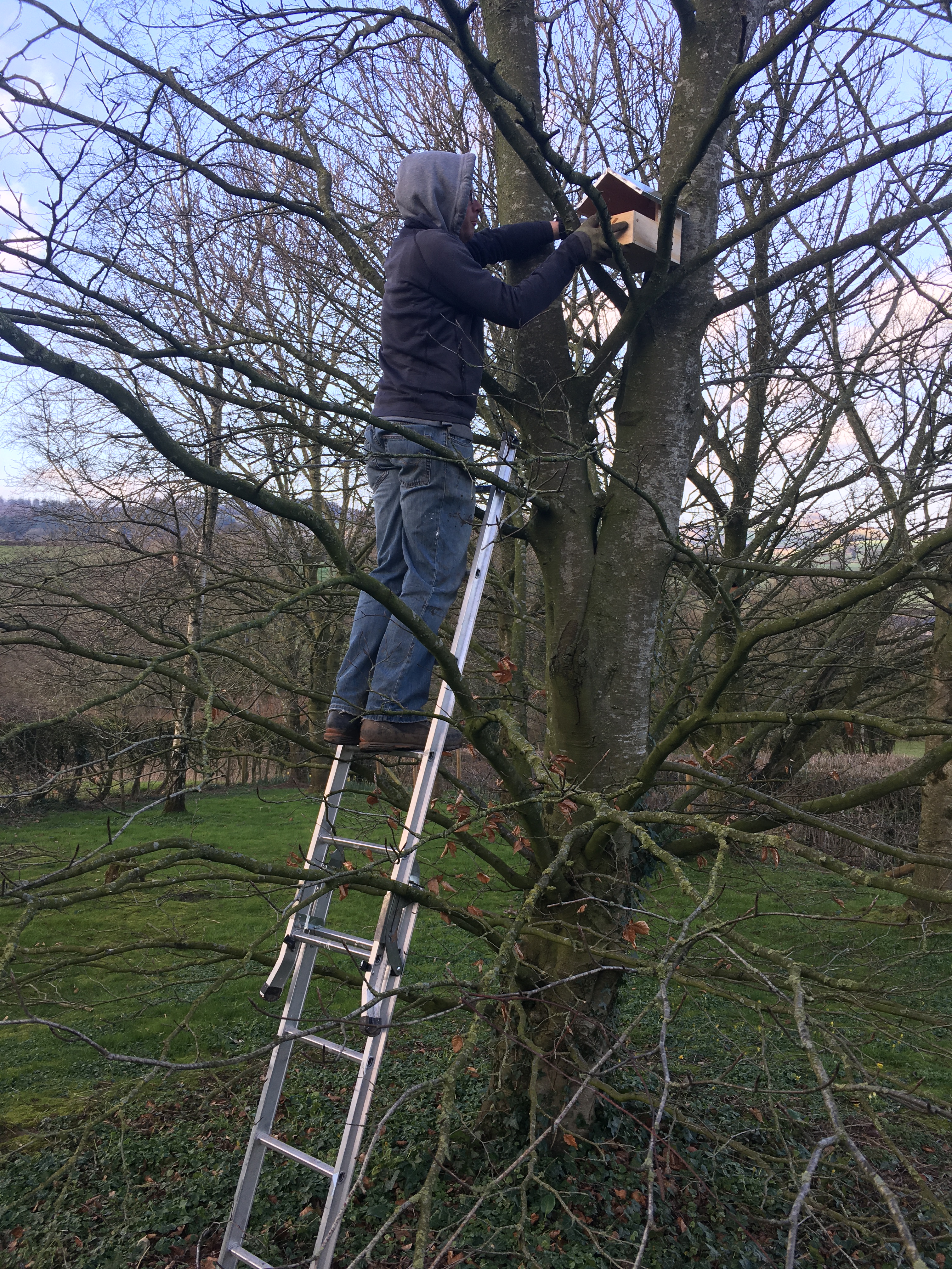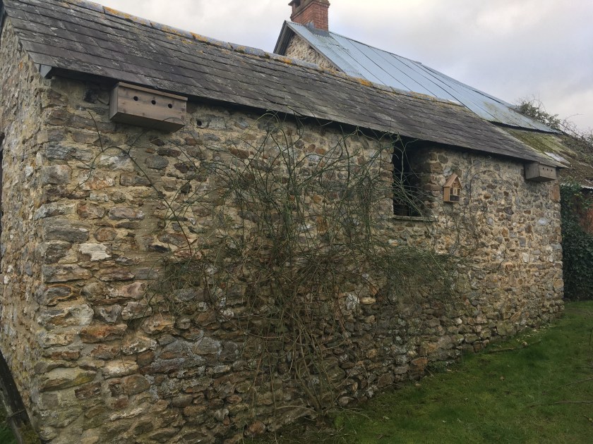 Our next job was a consequence of cutting down the undergrowth and the yew tree from around our listed cottage over winter, when we removed a large area suitable for birds to nest in. We also have sparrows that nest inside our shed and inside the eaves of our main farmhouse, and wanted to try and tempt them out. So Sunday afternoon we added three new bird boxes and two sparrow colony boxes to provide alternative homes for the birds. It was a bit nerve-wracking drilling into our stone shed wall as the mortar is so old it just disintegrates with any vibration, so we’re hoping the boxes stay in place until we can get the walls repointed towards the end of the year.