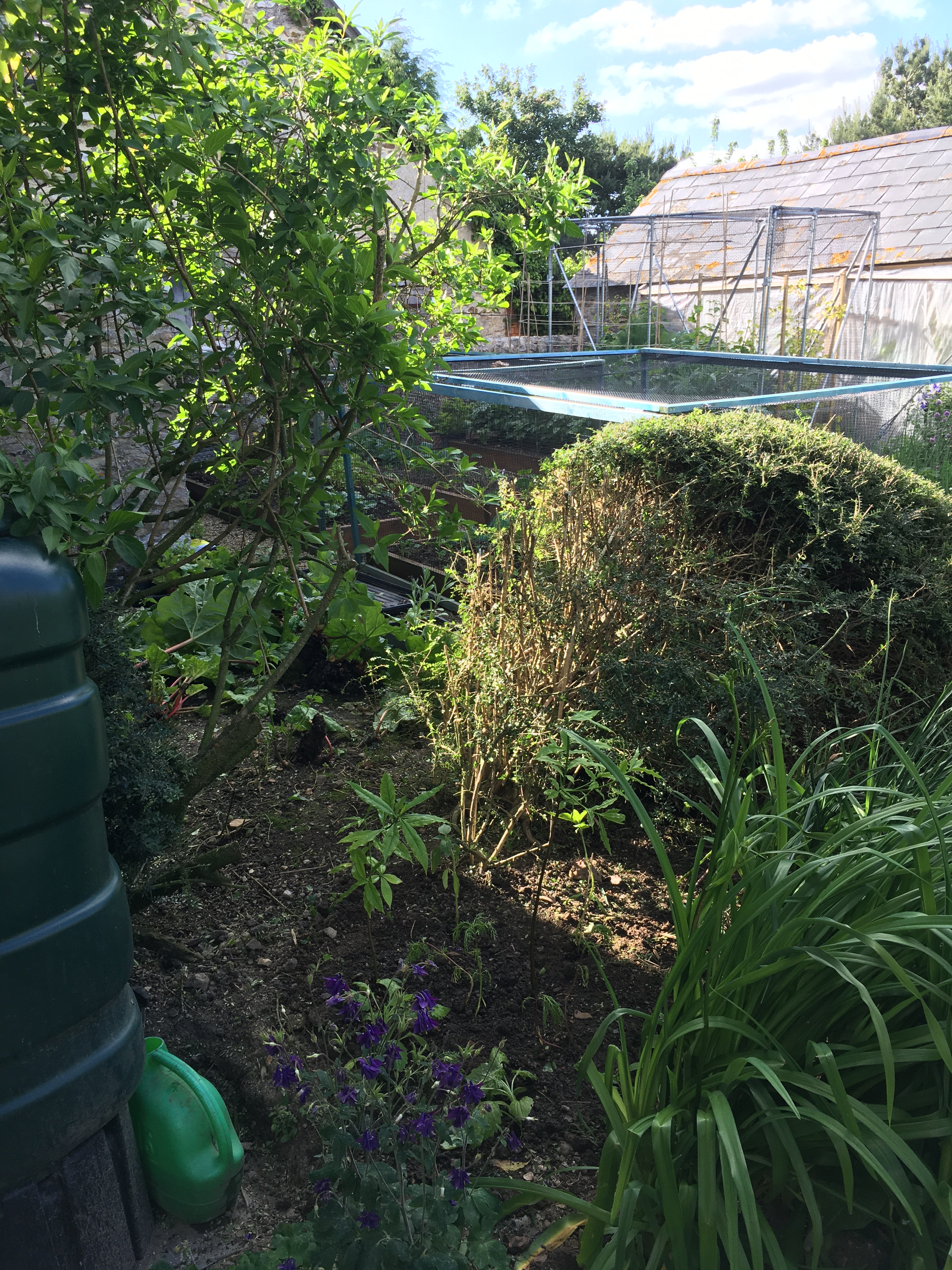 We also (finally) took the opportunity to tidy up the area around our water butt and kitchen garden. Two shrubs and a rose had been left to their own devices, which created a much-loved playground for the birds, but looked like an overgrown mess, with leggy, dead branches taking up lots of space and covering some of our rhubarb patch. We were a bit more brutal than we’d intended with our pruning, but we’ve filled the space temporarily with some of our flower seedlings, in the hope the shrubs start regrowing closer to the main stem and bush out a bit more. If nothing else, the flowers might encourage more bees and pollinating insects for this season….