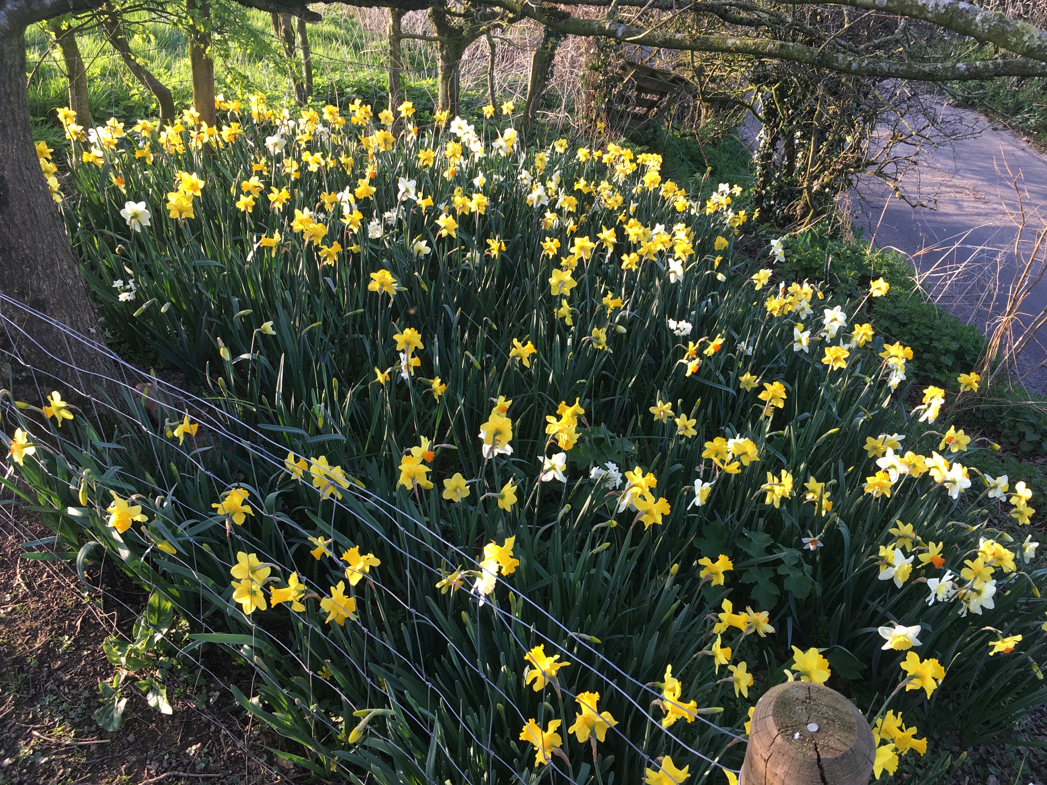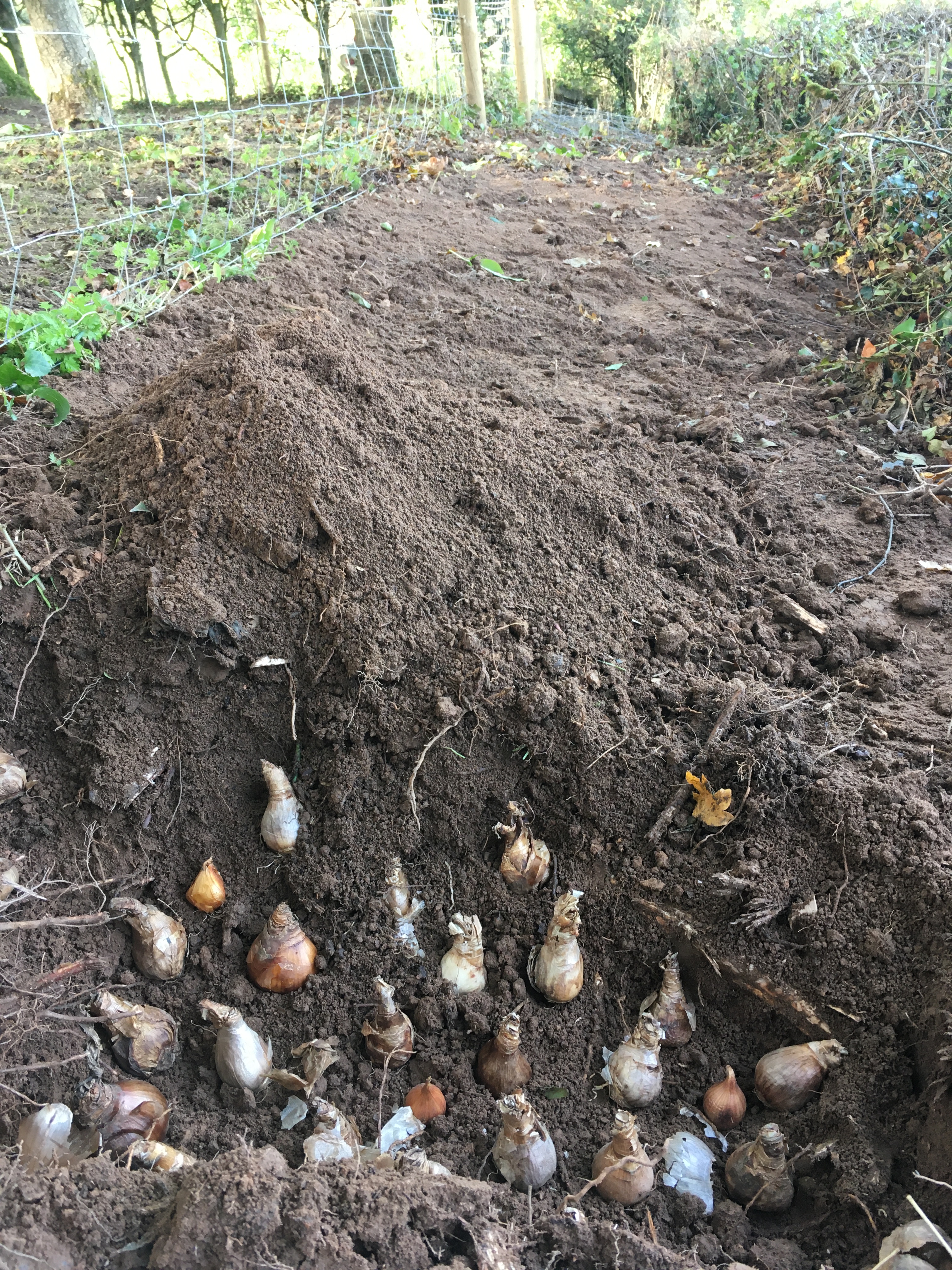 Whereas the work in our first year was fairly split between the garden and redecorating the farmhouse, this year it’s mostly been in the garden – and completing two huge jobs in particular. We spent four months clearing nettles and weeds out of the stretch along the fence in our wood, and then digging the whole area up to plant 125kg of daffodils, 250 irises, 250 tulips and 250 bulbs we forgot the name of (the allium we planted never appeared). That was a pretty horrendous autumn/winter job – with time against us and stony wet clay soil almost the entire stretch – but the view of daffodils in the spring more than made up for it