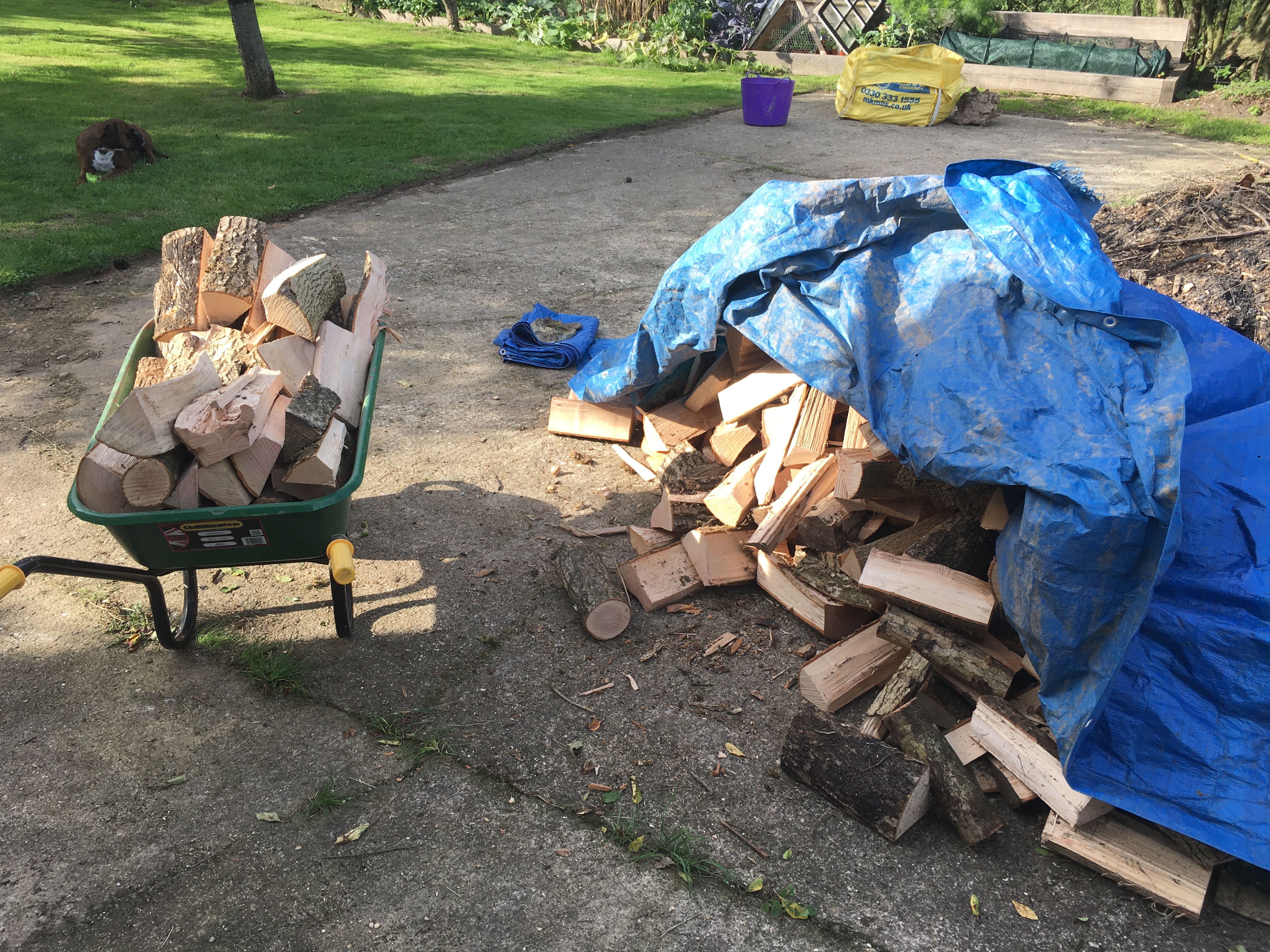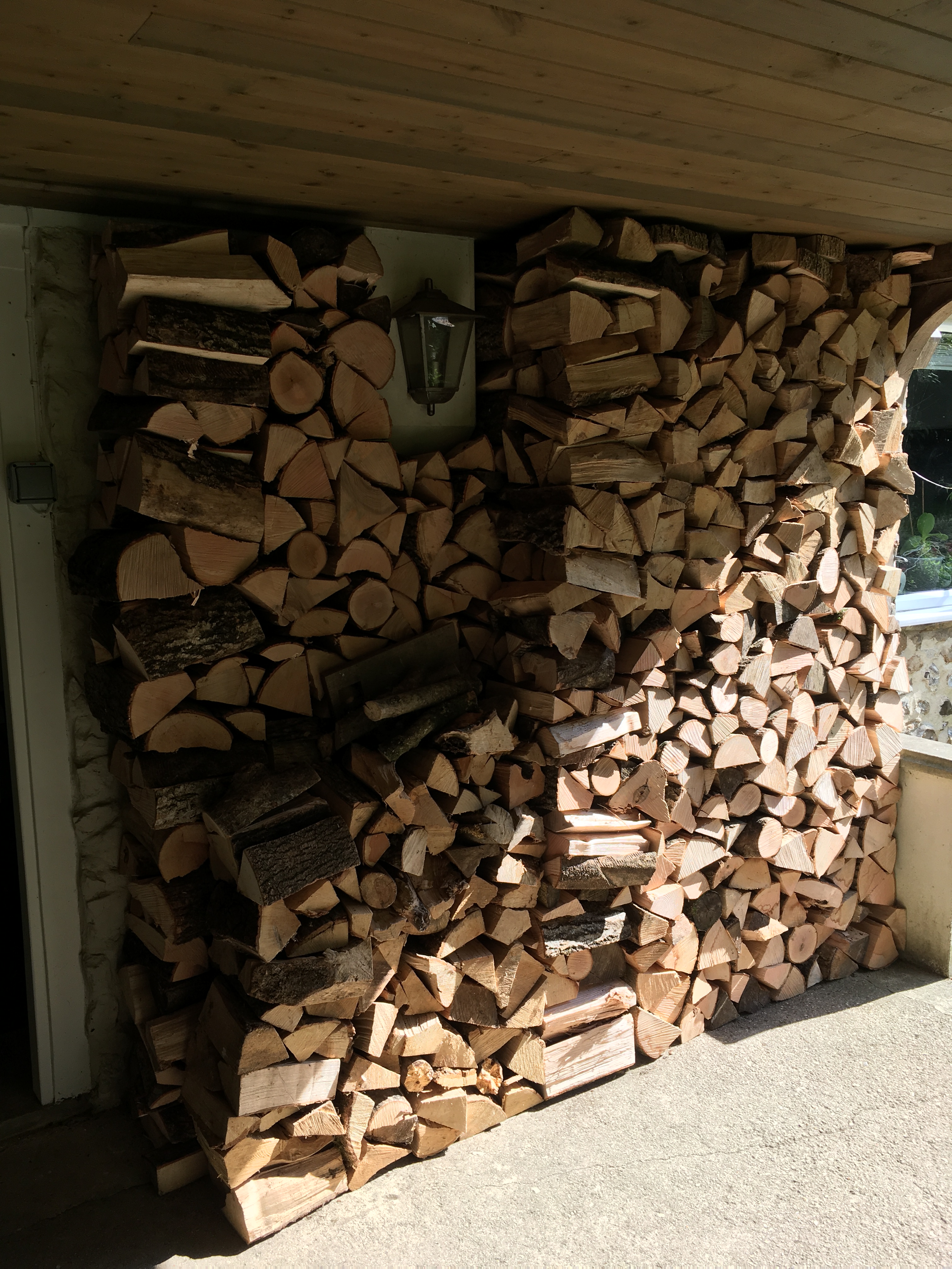 We also moved the firewood we’d had delivered earlier in the week, moving it from the courtyard to stack it against the back kitchen wall. The previous owners had been using the shippon to store their firewood and we’d done the same until now, but having it next to the house rather than across the courtyard already feels like it’s in a more convenient location. We added the firewood left over from last year, making a start in clearing the shippon and removing another pile.