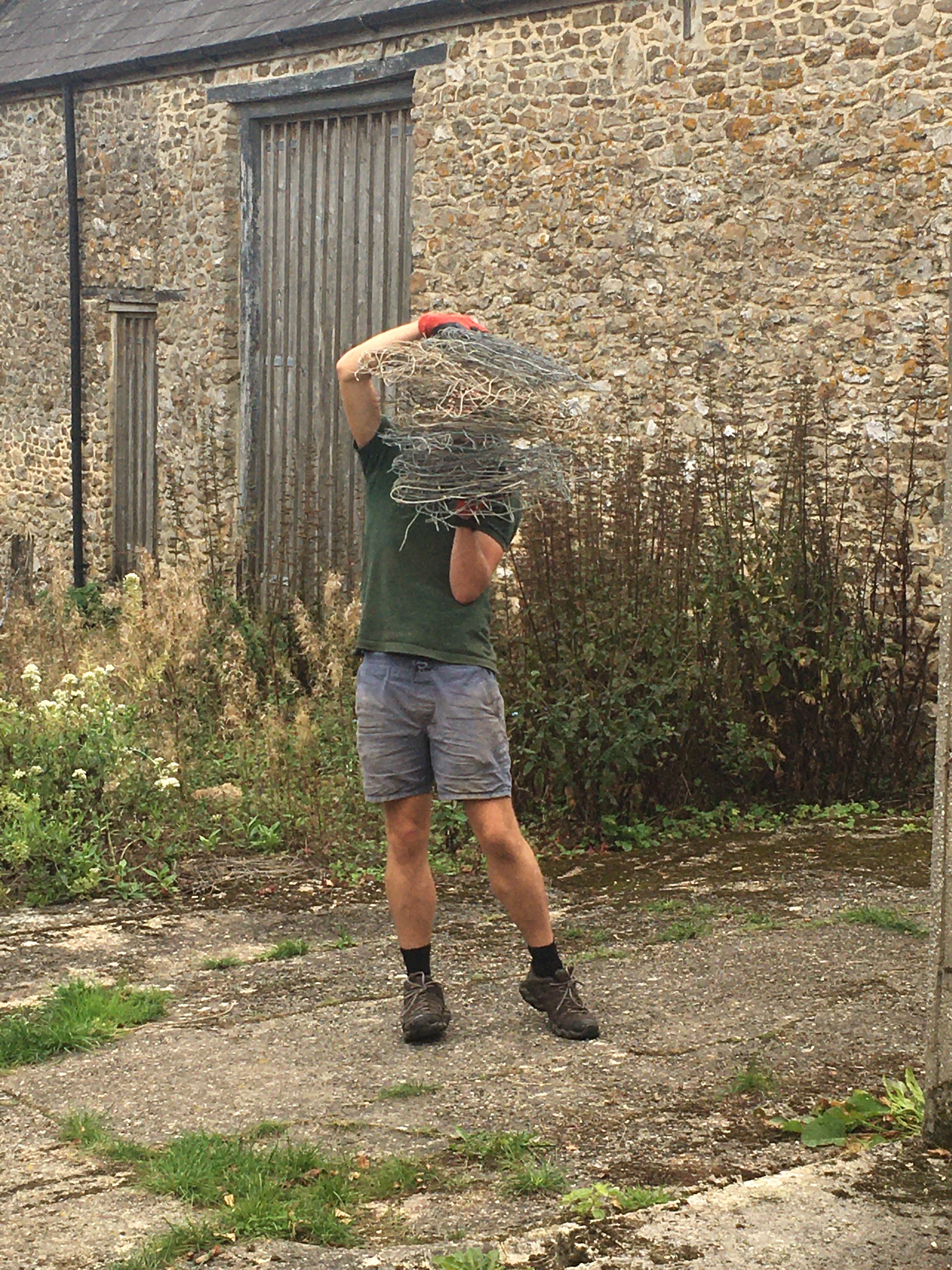 One of the other things we had to clear from the derelict barn was various bits of old stock fencing. As we dug out the side of the orchard last year, we kept coming across bits of old stock fencing – it looked like different fences had collapsed over time and been replaced, leaving the old metal in the ground. We’d just left it in the barn out of the way, so in an effort to tick one job off the list, we stamped each part down into small blocks ready to take to the tip. Always good to have at least one fairly easy job, just needed to avoid the rusty bits of metal sticking out…