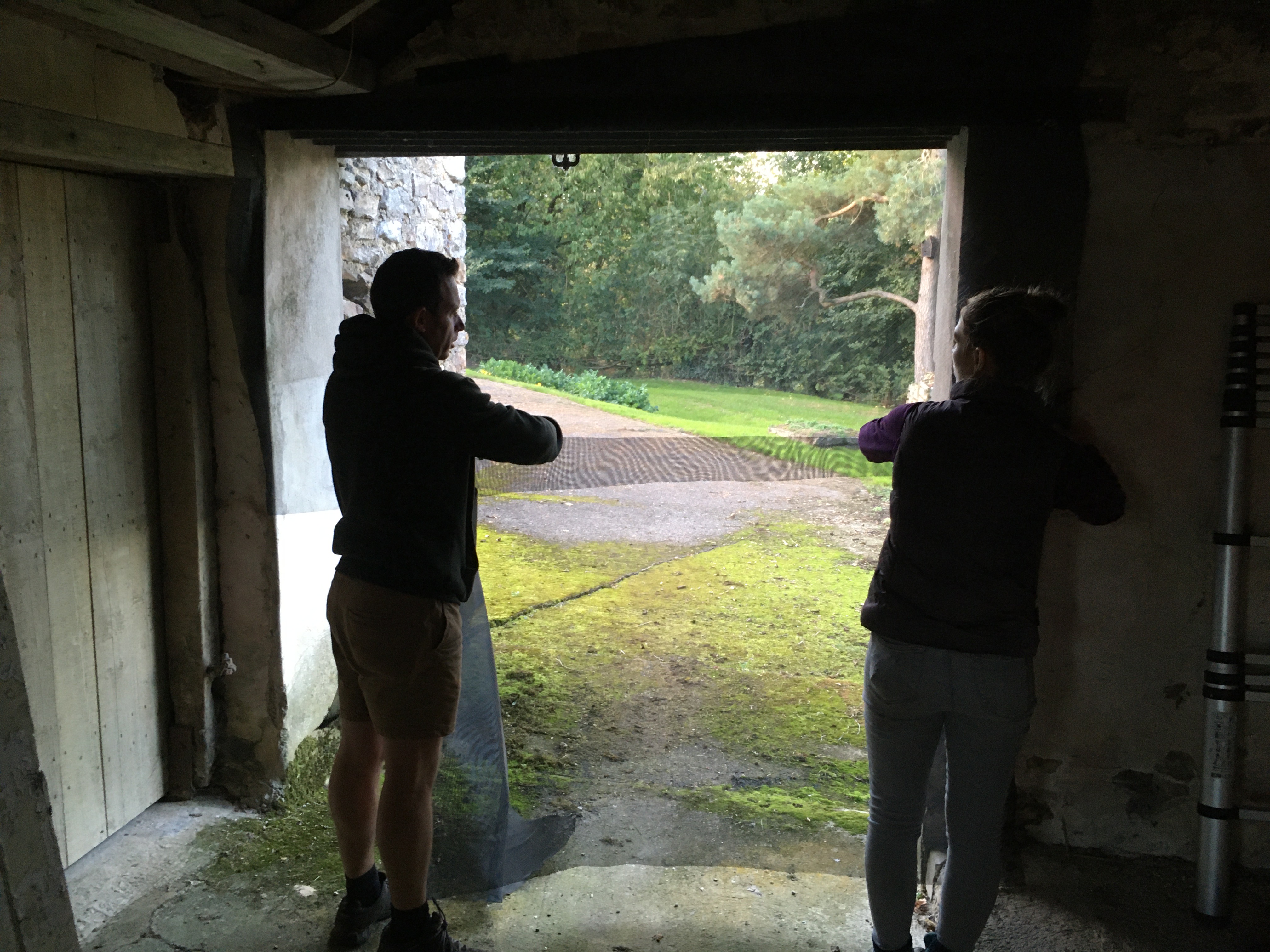 Our ecologist also came round on Tuesday to bat-proof the shippon. Apparently bats that hang upside-down are impossible to move during hibernation because of the way they grip to whatever they’re clinging to (which includes horseshoe bats which we have), so if any decide to hibernate in our barns, we have to stop building until they move again in May! Not ideal… and especially hard when we have a building that’s missing windows and is open at one end. Hopefully the nets our ecologist put up will keep them out – although we spent Saturday repeatedly weighing them down with increasingly-heavier stones and bricks after wind blew them down, so fingers crossed everything stays in place.