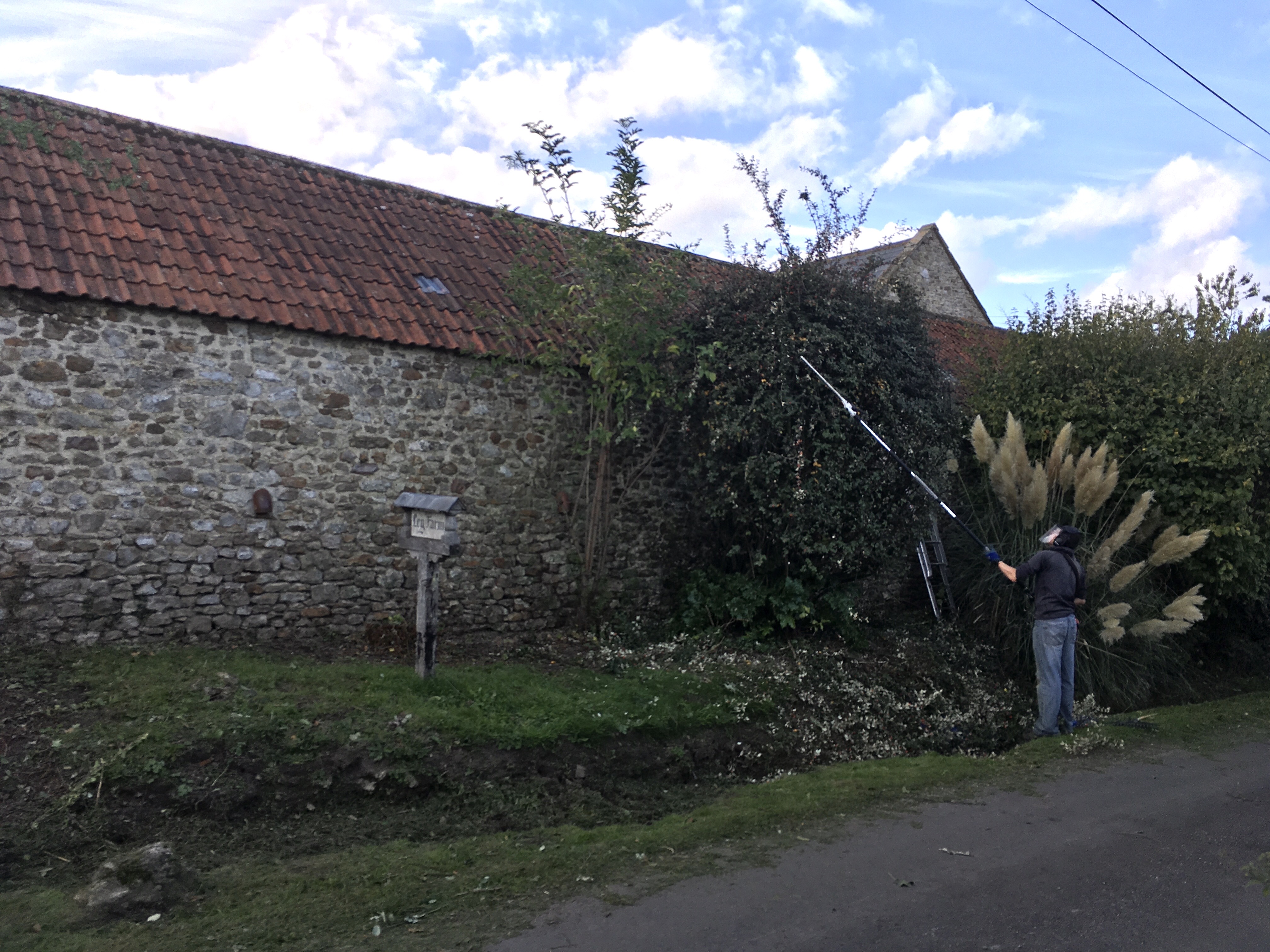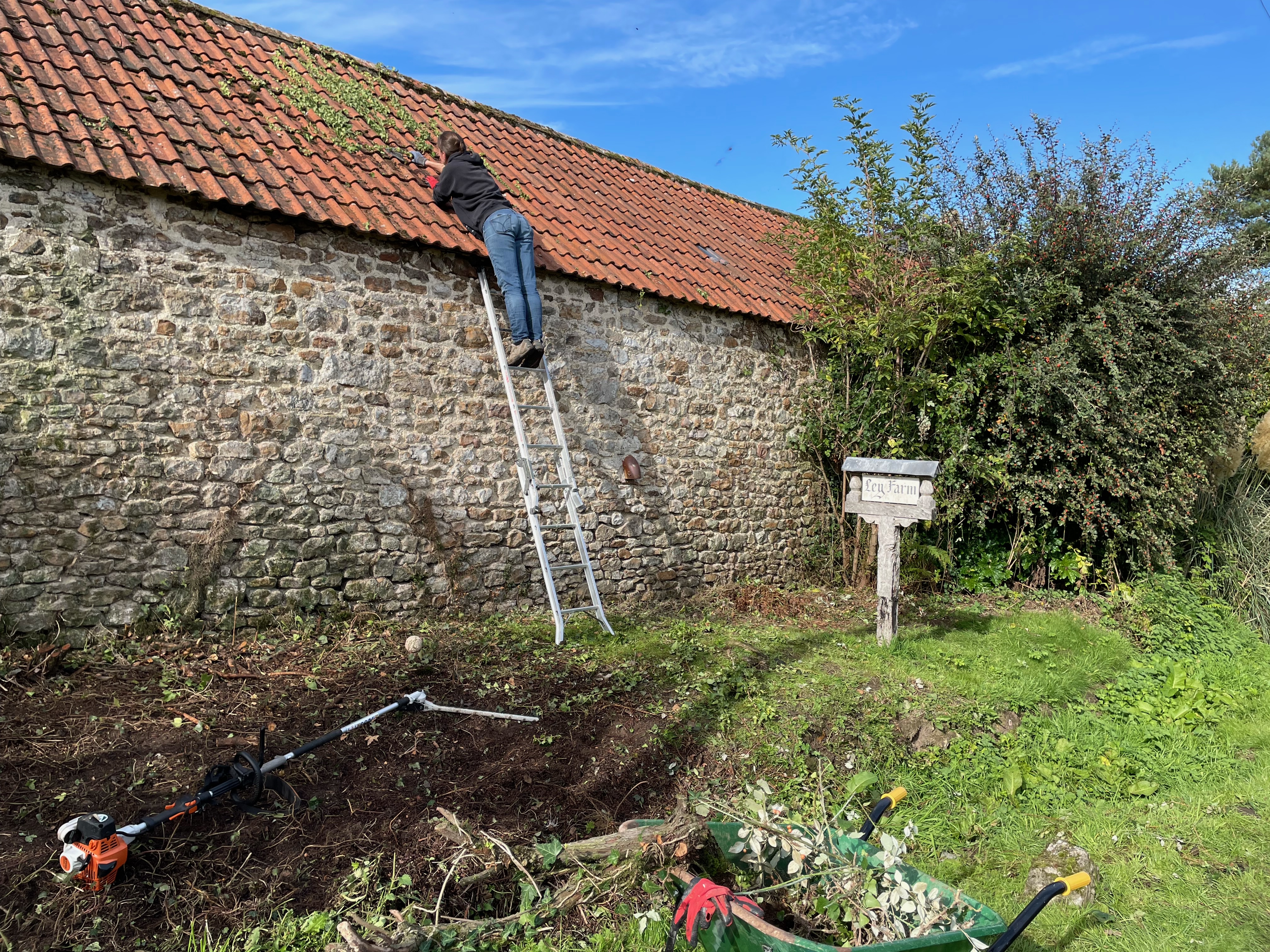 We made good progress on Saturday clearing the front of the shippon of ivy, brambles and bushes, managing probably another quarter of the building. It’s incredible just how overgrown it all is – and we haven’t even got to the rampant jasmine yet, which is covering the entire roof at the end. We’ll need to properly chop back the bushes at some point to make space for the scaffolding, but we’ll leave that as late as possible, to give the bushes the best chance of growing back.