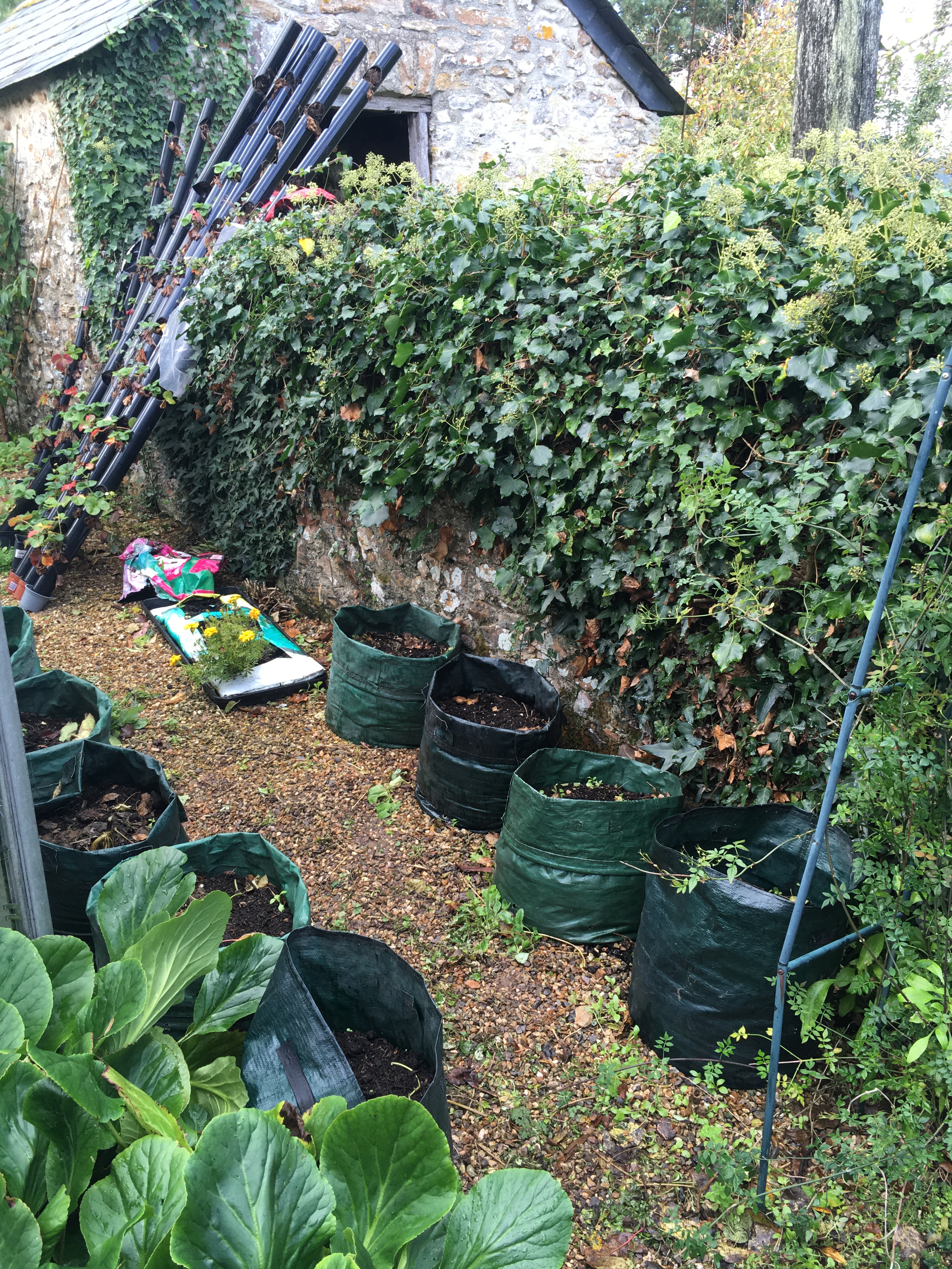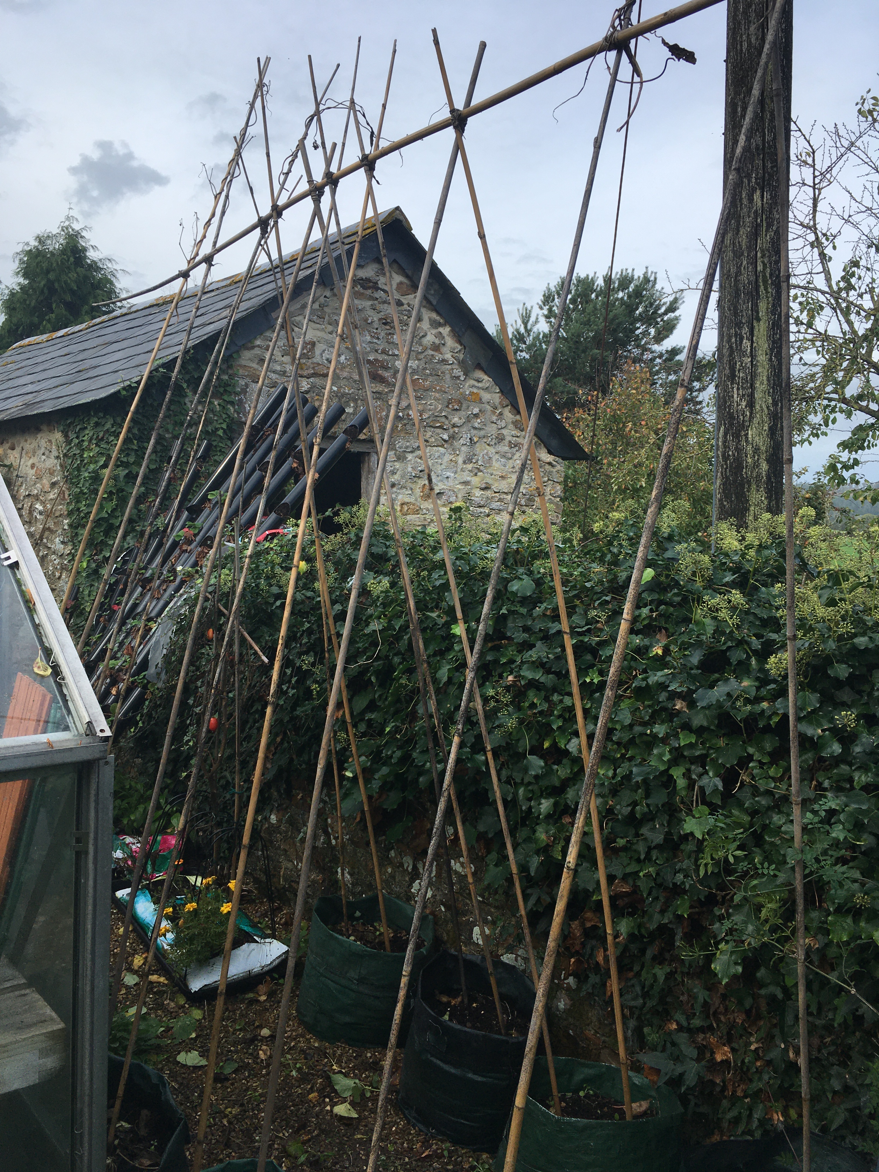 With most of our focus recently on getting the site ready for building, we’ve seriously neglected the rest of the garden. It’s been looking progressively scruffier, with dead leaves everywhere, plants dying back, grass still growing, and vegetables waiting to be picked and stored. As we don’t have a confirmed build date or schedule yet (so we know the order in which the barns need to be ready), we decided to take a weekend off clearing the shippon undergrowth to try and tidy everything else up.