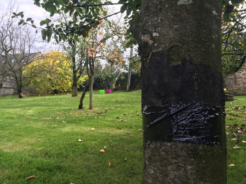 The big win this weekend was putting grease on all our fruit trees. We did it when we first moved in but never got round to it last year, leaving the trees open to whatever insects decided to wander up there. It’s a pretty sticky job but worth doing if it reduces the risk of cutting open fruit and finding earwigs in it! You’re supposed to do it twice a year so we’re going to try it again in March and see if that makes a difference to the quality of the fruit.