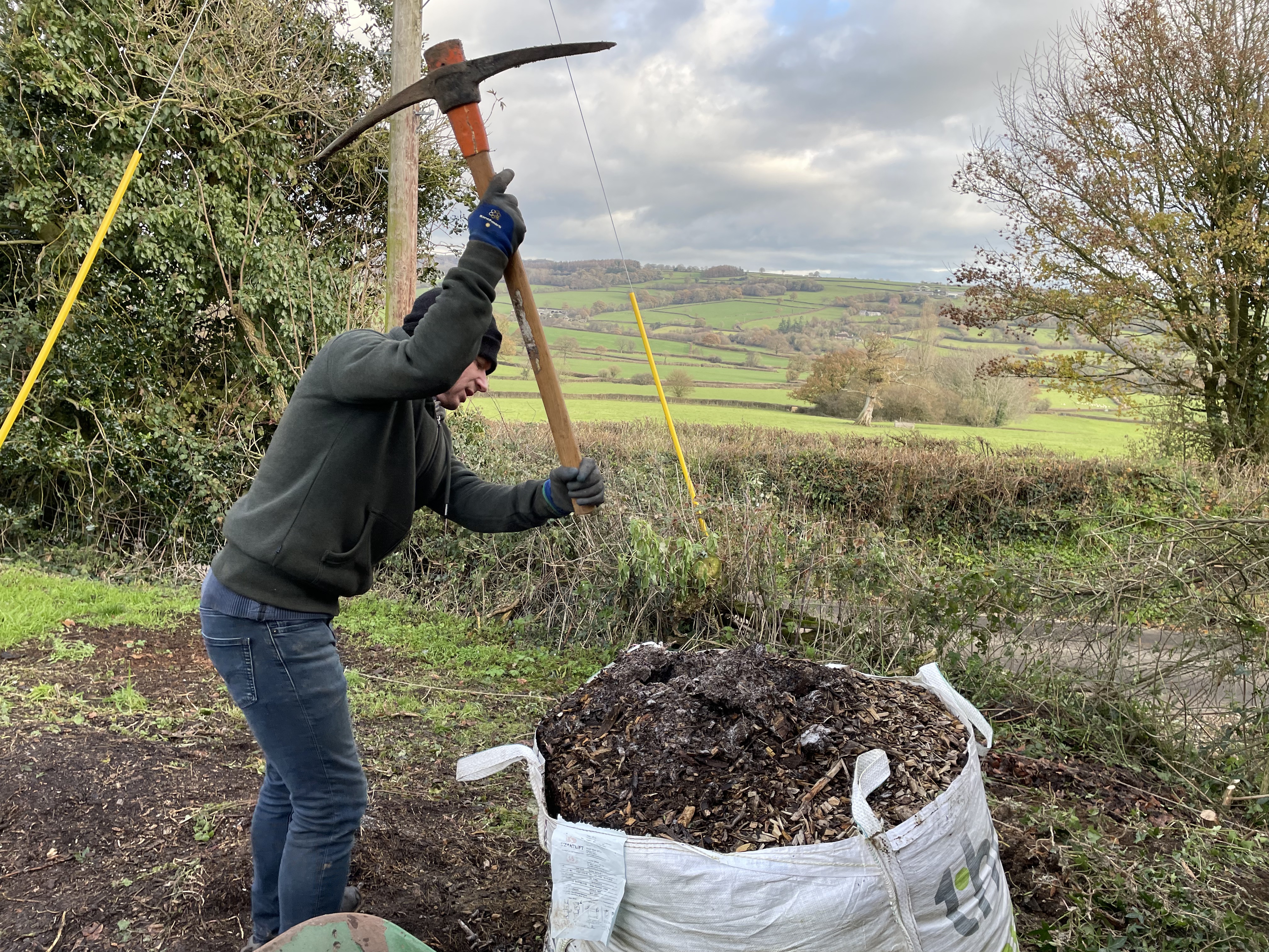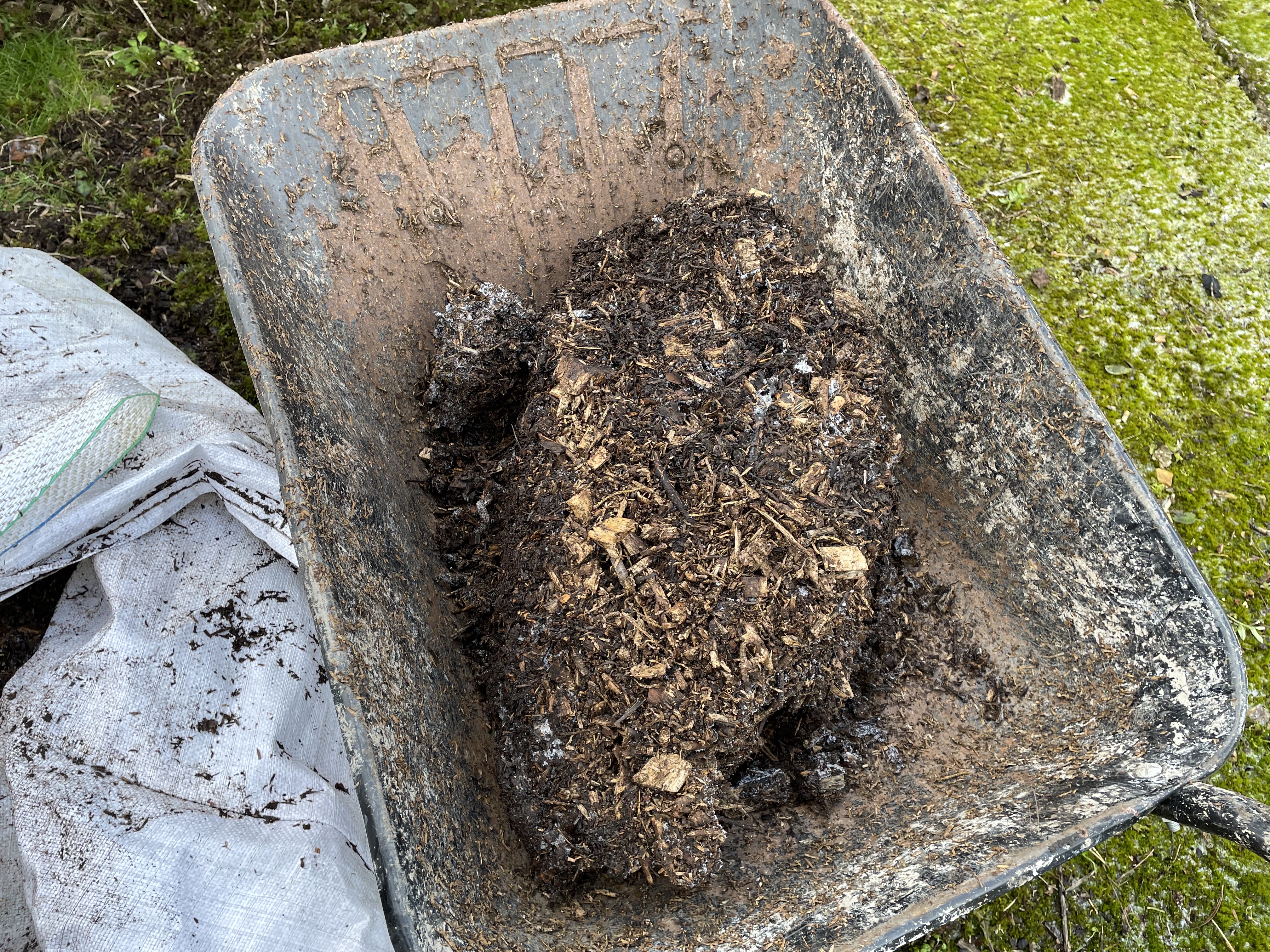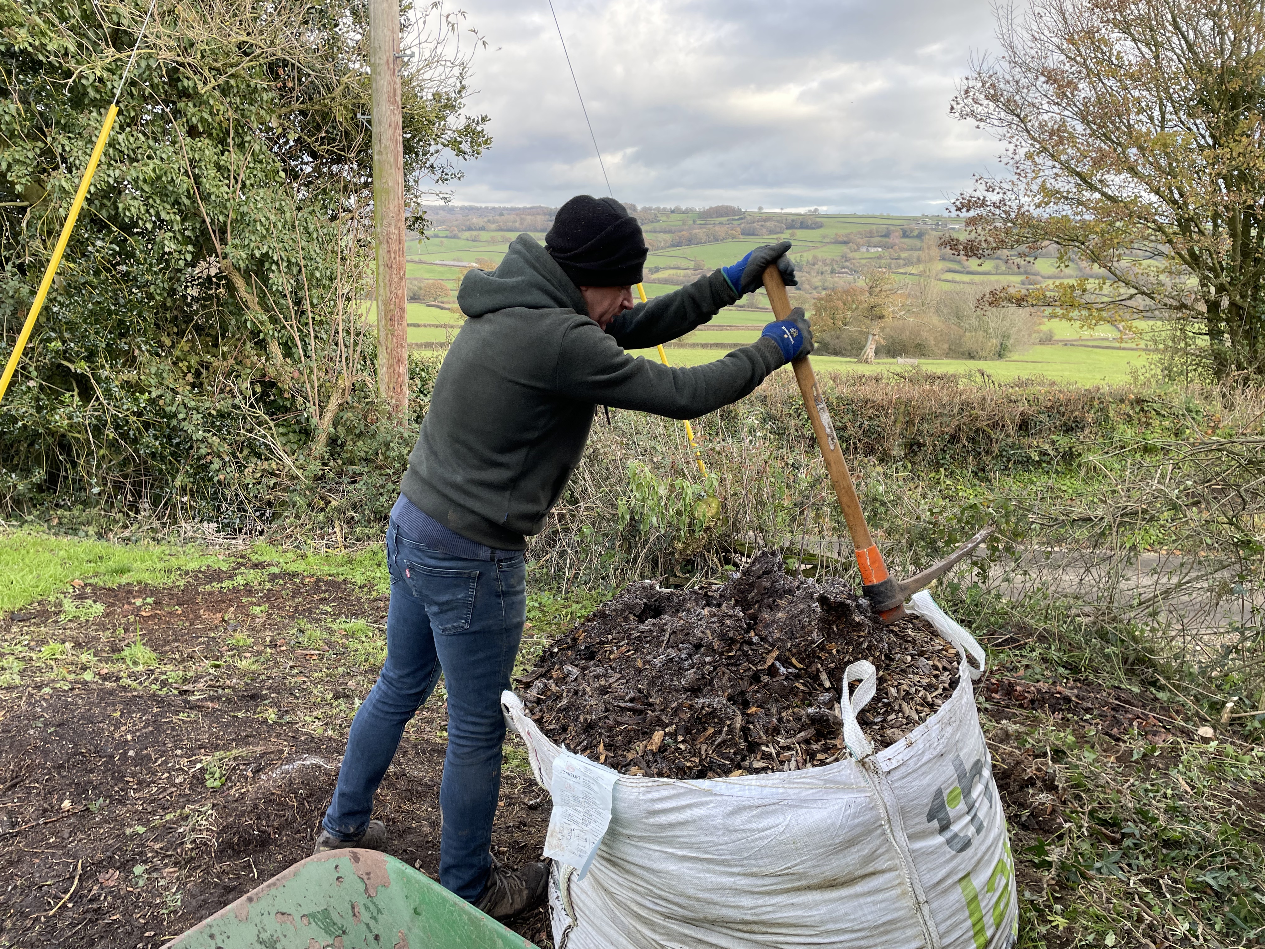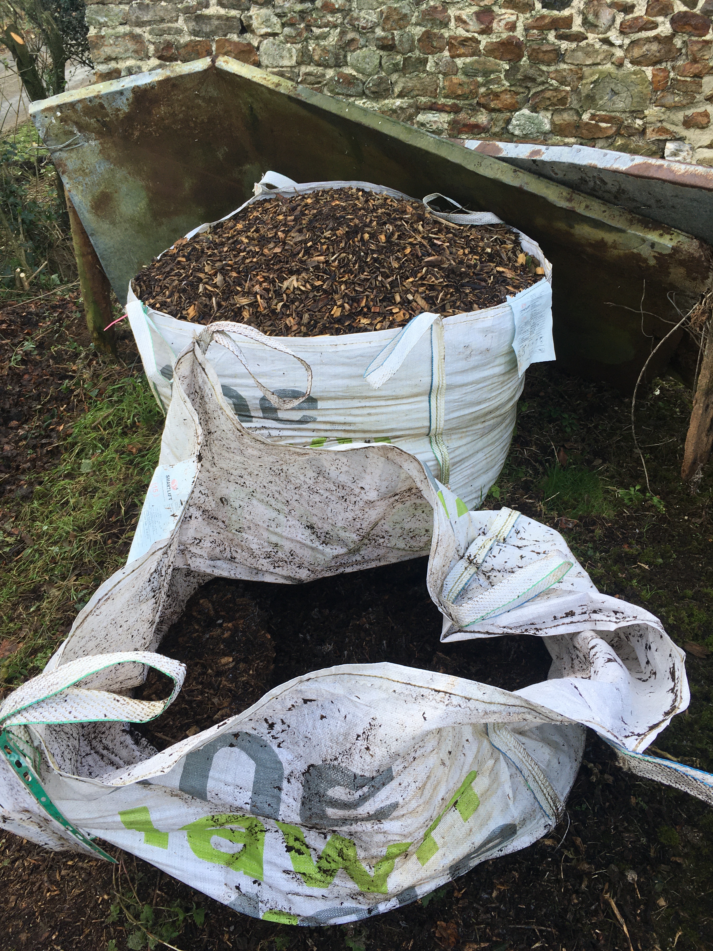 Another dry Saturday meant we could get on with clearing more of our site ready for building – after all, the more we can do, the less we need to pay someone else to do. We’ve had three huge dumpy bags of woodchip stacked next to the shippon for a few months now, but they’re exactly where our extension is going to be and so need to be moved. A target spring start date is spurring us on to get everything ready asap and so we’re trying not to waste decent days with indoor jobs, especially when we have limited daylight hours.