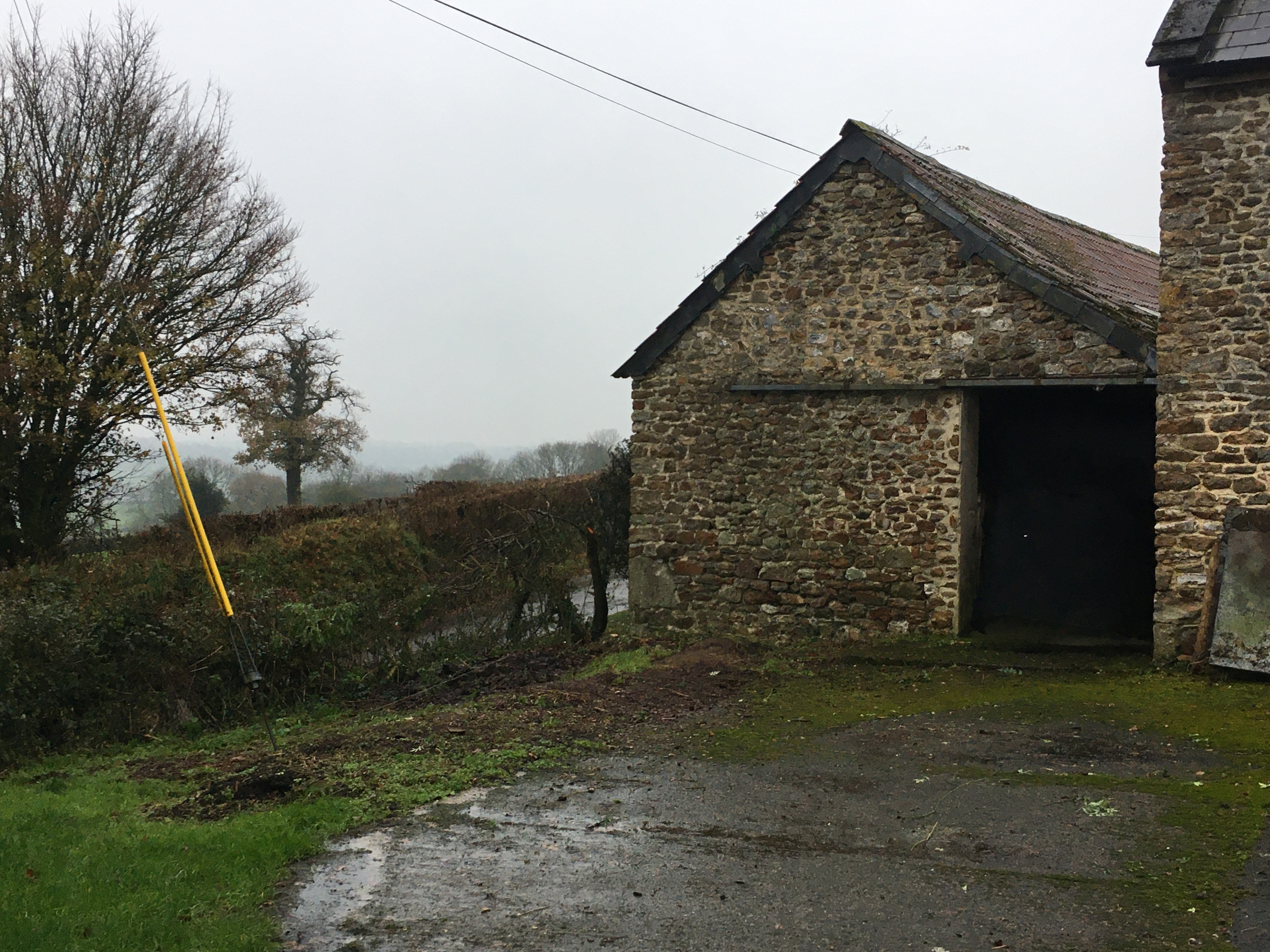 We then shifted the remnants of the old compost area also next to the shippon – large sheets of metal on a wooden frame that we think used to be the shippon barn door, and are now bent and rusted beyond use. That area is now completely clear for the first time since we moved in, and looks totally different with the jasmine also gone from the wall. John’s been able to mark out where the extension will go, mainly to check where our window will be in relation to the yellow cable stabilising the telephone pole. Typically it’ll cut straight across our view, so we’re going to explore options with BT – hopefully it won’t cost too much to move it.