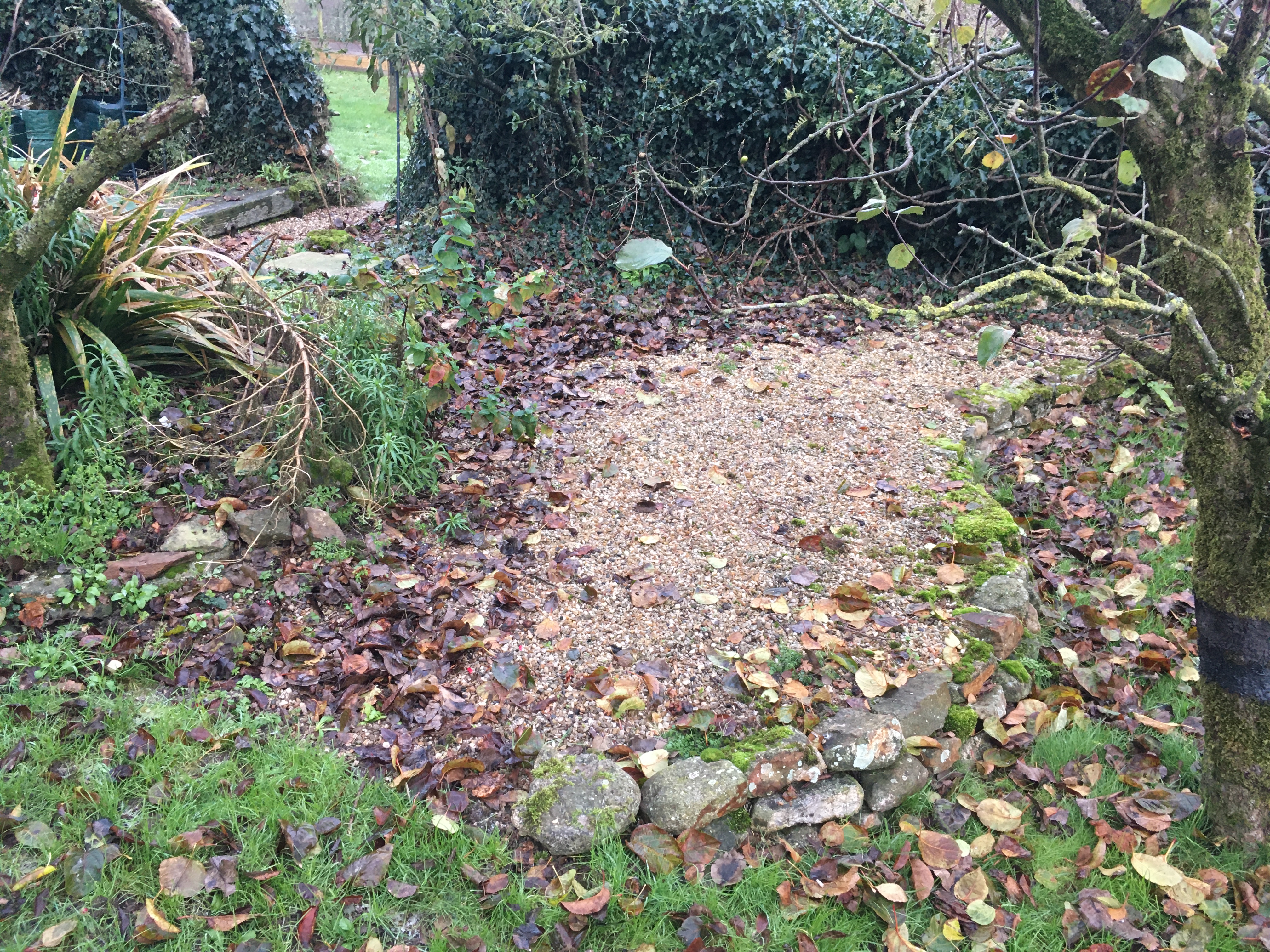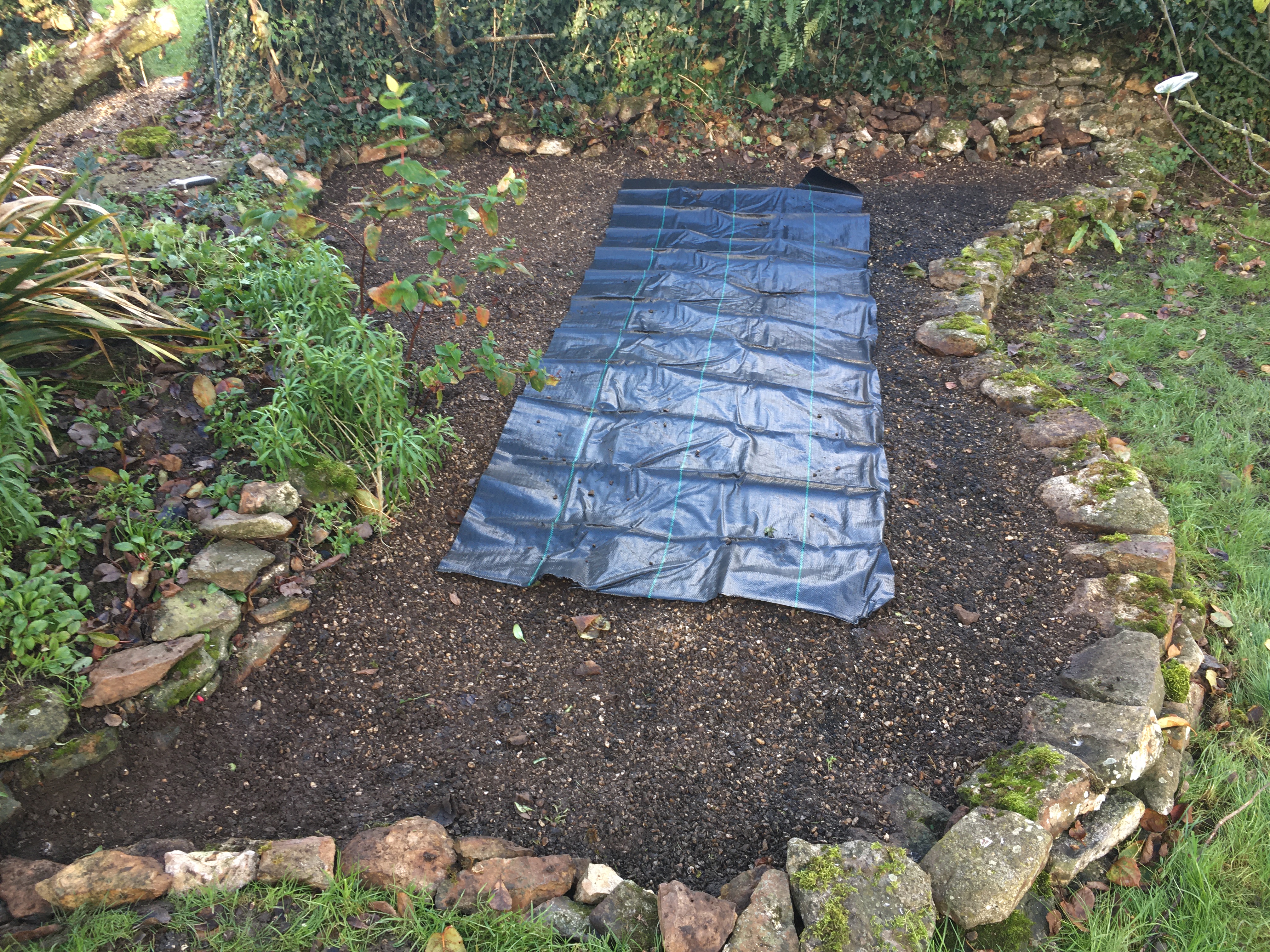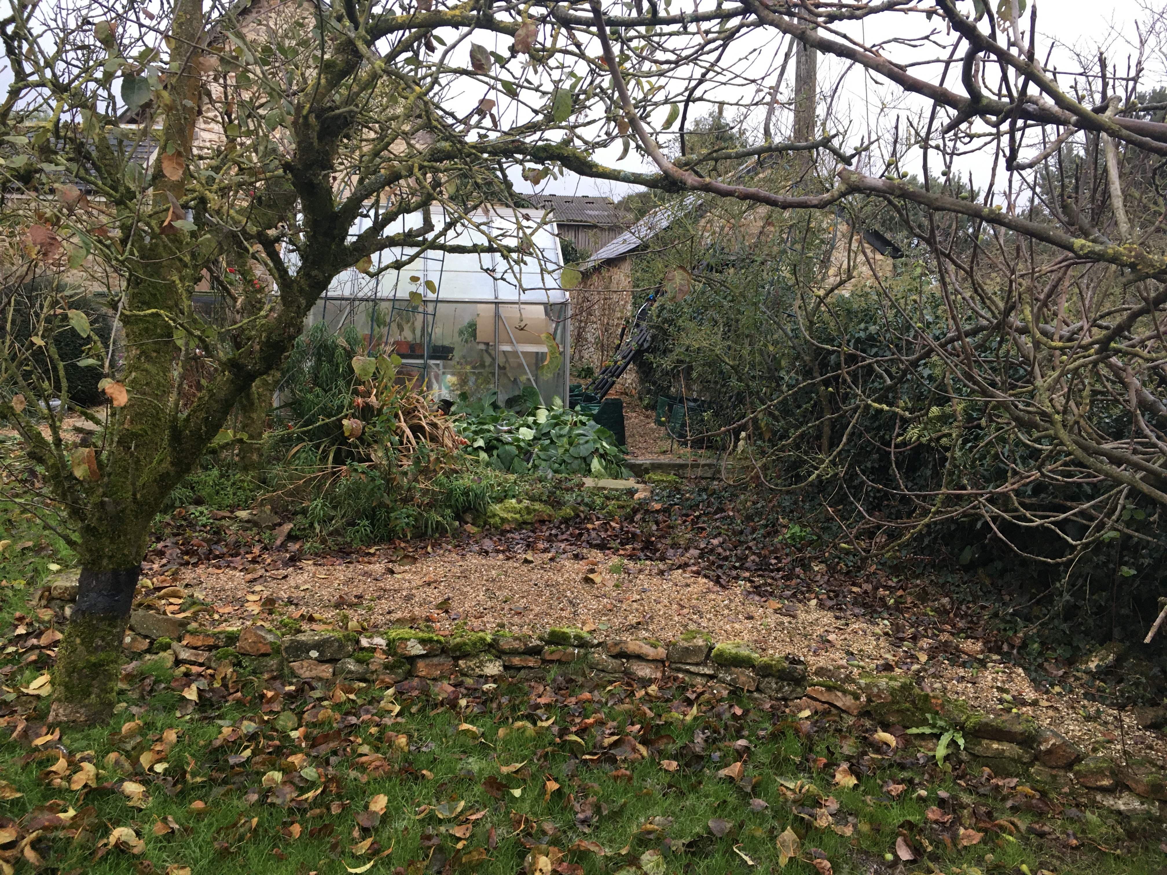 We’d already moved half of the woodchip a couple of weeks ago, putting it under the lilac tree in the back garden where the grass struggles to grow. This second patch we’d identified a while ago – someone had previously put gravel beneath the apple trees in the front garden (presumably for the same reason), but it means that the windfall apples get damaged by the small stones and ruin. We also wanted to top up the gravel paths in the kitchen garden as it’s getting low and the weeds are insane during the summer. It took us a few hours and what seemed like countless wheelbarrow trips to clear all the gravel out – it was hard to know when to stop as there was so much soil amongst the bottom layer of stones. We moved as much as we could, and then realised we’d forgotten to get weed membrane and so had to make do with the strip we had left – hopefully it won’t be too much of a problem. Moving the woodchip was a much quicker job, despite it being frozen solid in the bags and needing to be broken apart with a pickaxe! The area already looks much better and neater though. We also rebuilt the stone edge of the area, some of which had disappeared over time.