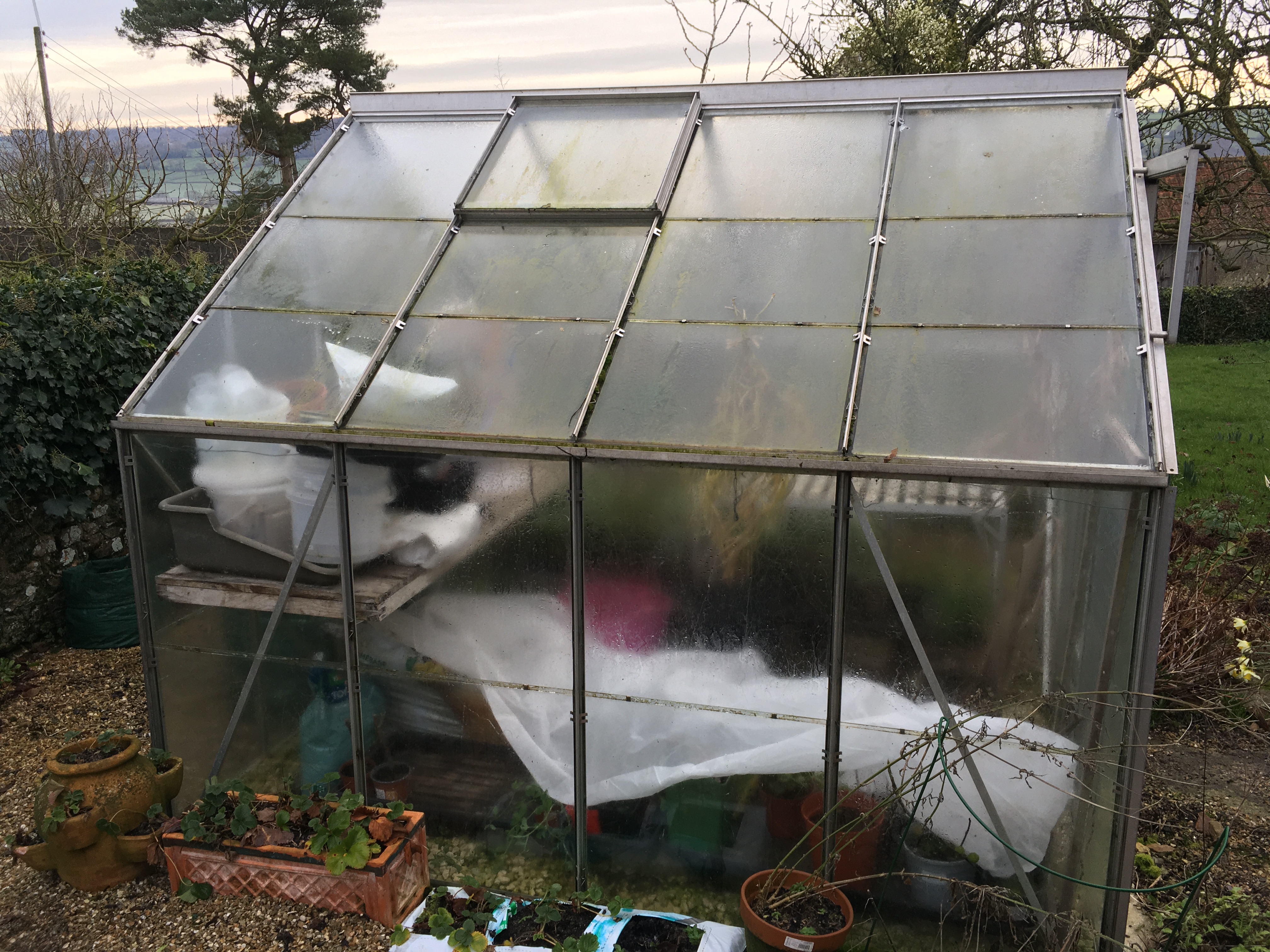 We’ve ended up leaving a lot of the normal garden jobs to prioritise clearing the site, so we’re now in a position to try and catch up on a few! Luckily Sunday turned out to be a bit warmer than expected, as we needed to clean the greenhouse before it starts filling up with seedlings. We hadn’t got round to cleaning it last year so it was well overdue – and looks much better now the algae and moss has been removed. We also found a pupa that had burrowed into the wood shelf to make its chrysalis… no idea what it was but I’m glad we found it before it hatched, as it could have done a lot more damage. I took the opportunity to tidy it up and reorganise everything – bring on planting season!