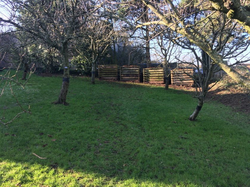 The weekend has been pretty successful too. We had a couple more things to do to get the site ready for building – mainly clearing everything in the vicinity and then clearing the contents of the main barn, which we’ve been using for storage since we moved in. On Saturday we successfully moved our final compost bin (and contents) up to the new location at the top of the orchard. It looks so much better up there, and is going to be so much easier now it’s closer to where we generate the waste and use the compost.