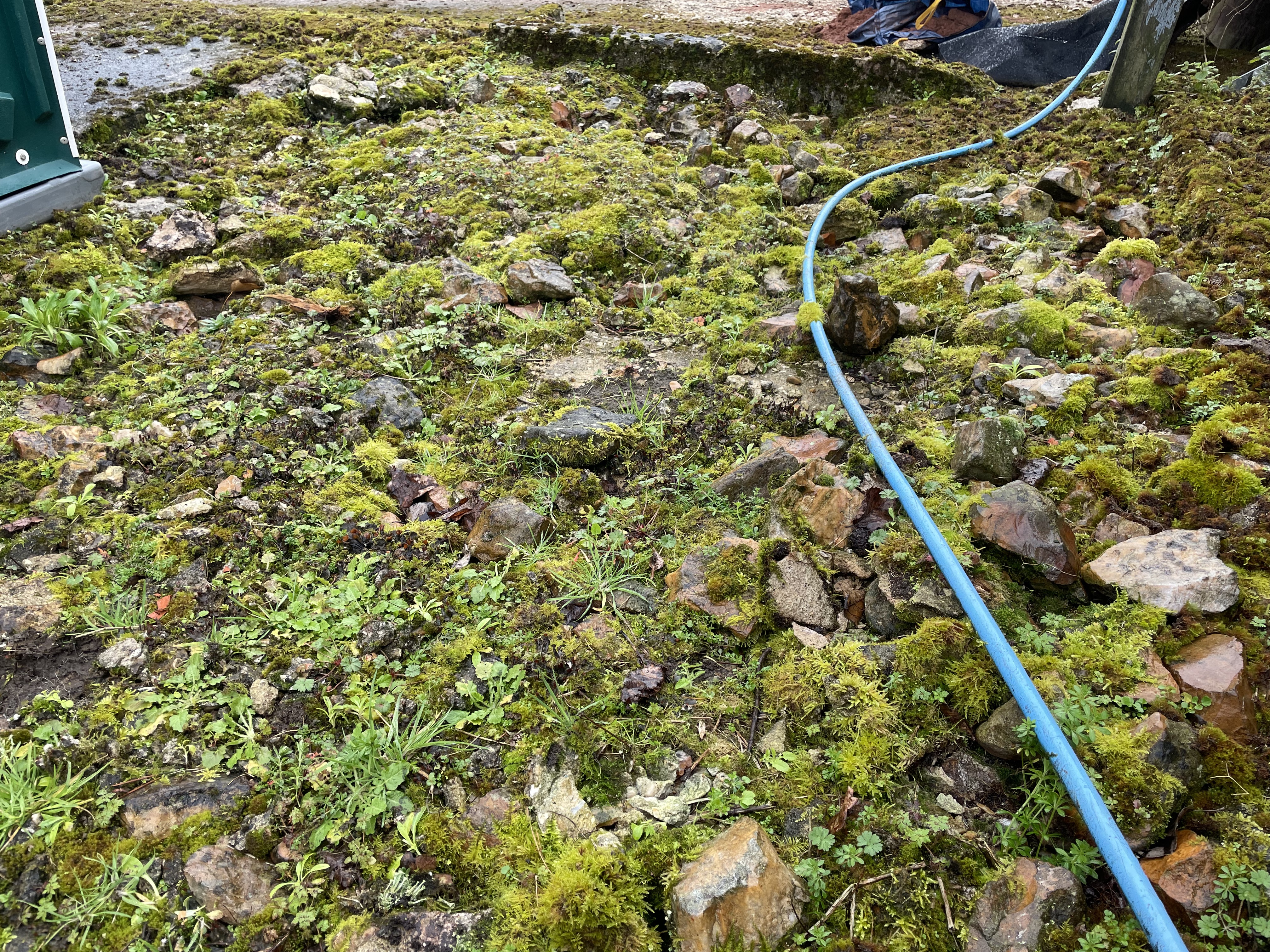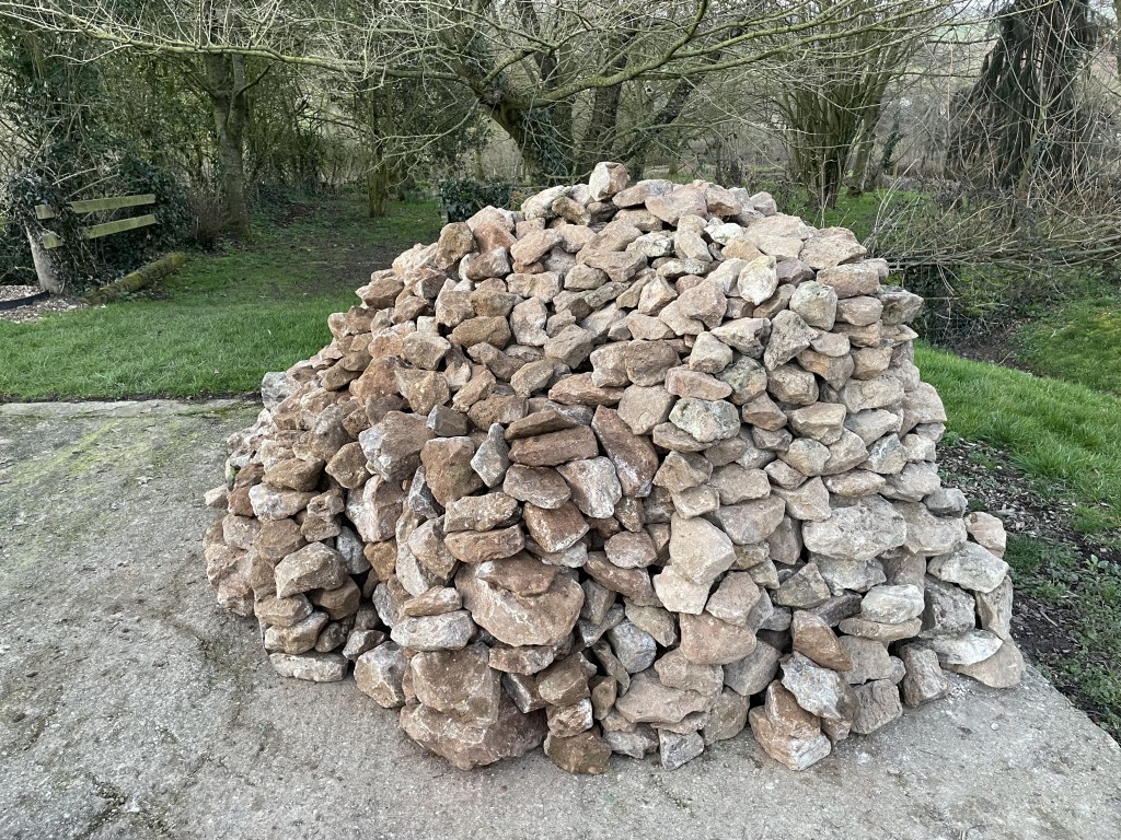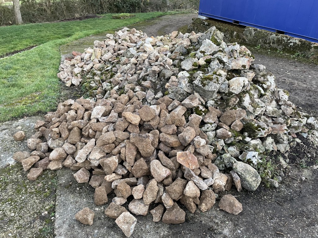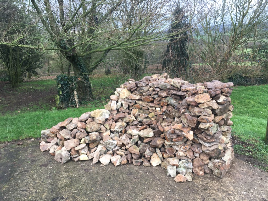 All the concrete and stones that are dug out are being stored in the derelict barn (the one we’re going to demolish and rebuild). Our builder is still investigating whether it’s cheaper to take away the old material and bring in new material that’s ready to use; or to hire a crusher and use what we can on site, while recycling the rest locally. We’re really keen to reuse whatever we can locally, because of the carbon impact of transporting materials all over the place, but it’ll be hard to justify it with our limited budget if the costs are significantly different. We need a lot of stone to face the new barn walls, so we’ve spent most of the weekend salvaging whatever stone we can – both from the pile dug out, and from the footprint of an old barn – to minimise costs and also to avoid bringing in new materials. It’s a pretty hard job moving stone for hours on end, especially when it’s covered in clay soil and needs to be cleaned. We’ve managed to double our stack of clean stones though, so it feels well worth the effort.