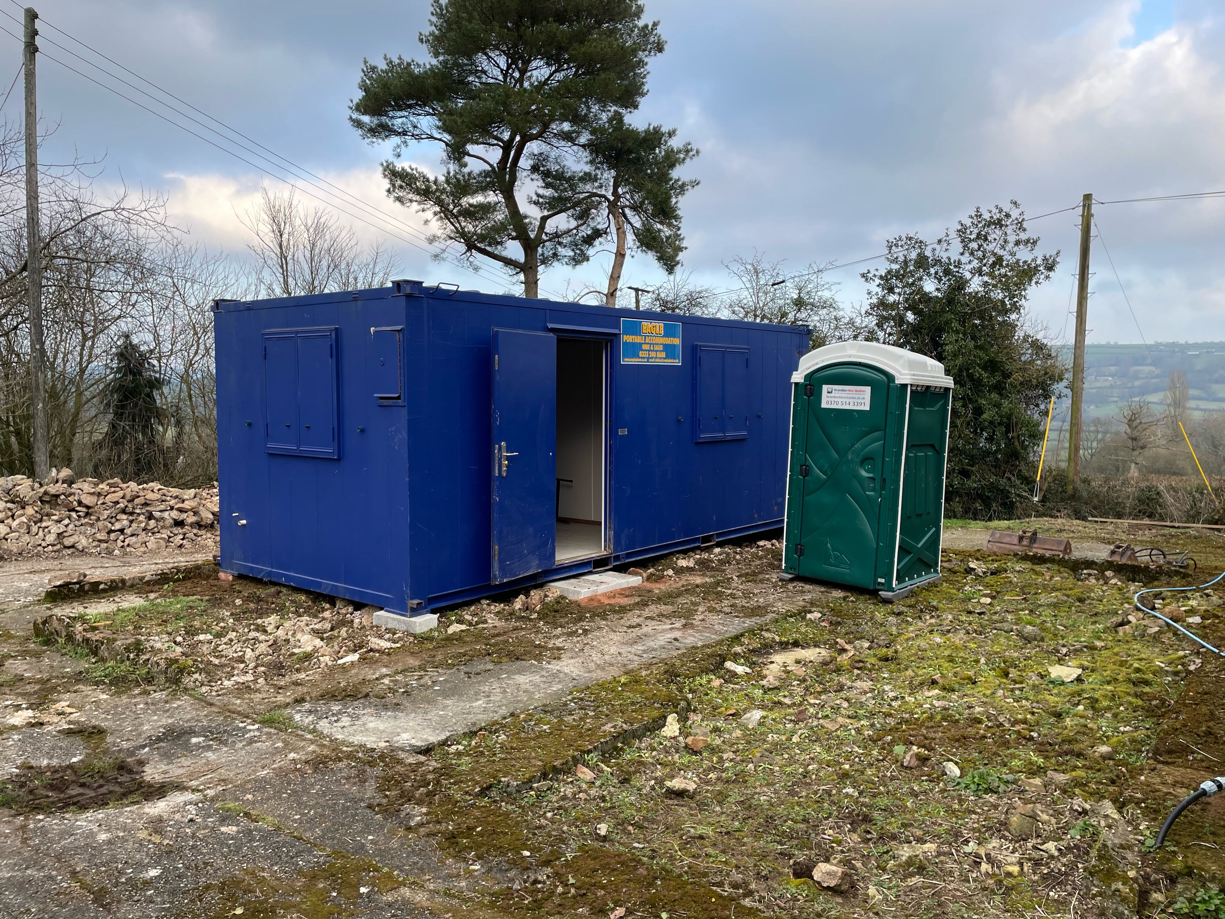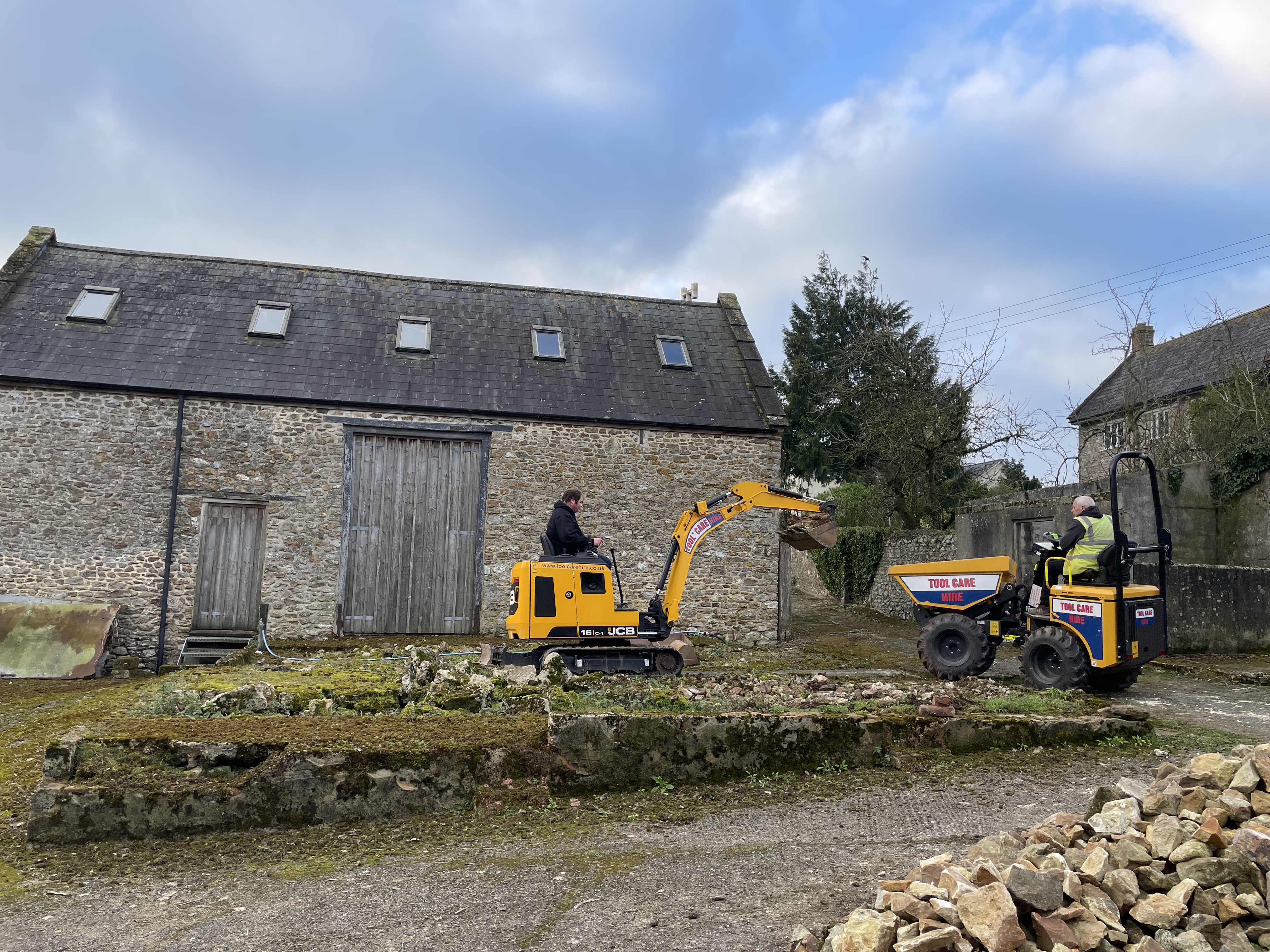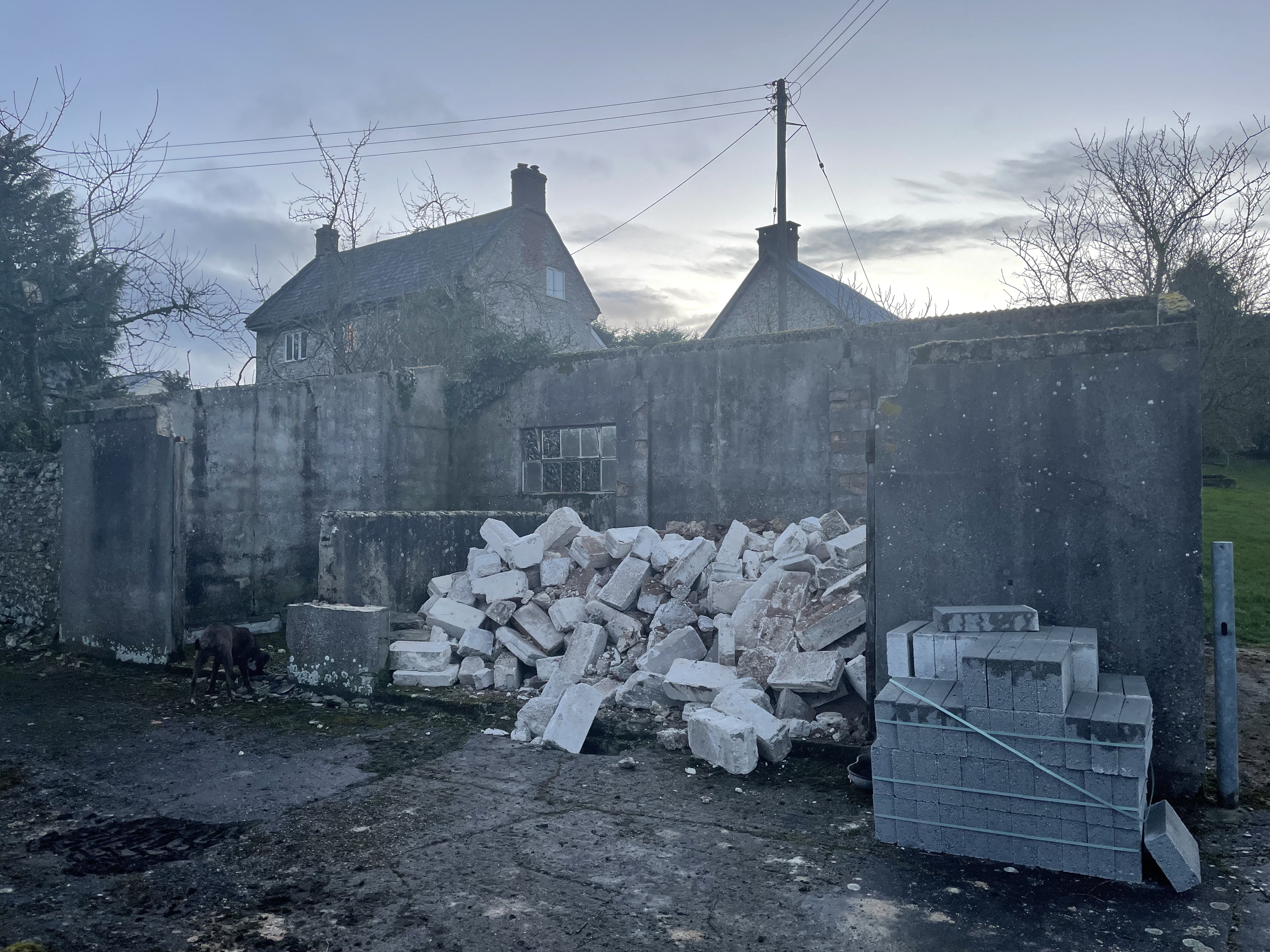 This week was the moment we’d been waiting for for so long – our builders finally started on site! We’re technically still in the final stages of site preparation, with the builders starting by clearing space for their cabin (doubling up as a site office and break room), and then breaking up the concrete floor in the shippon, but it’s exciting nonetheless. They’re making great progress too, especially considering there are only two of them, and it can’t be easy navigating the low beams in the shippon.