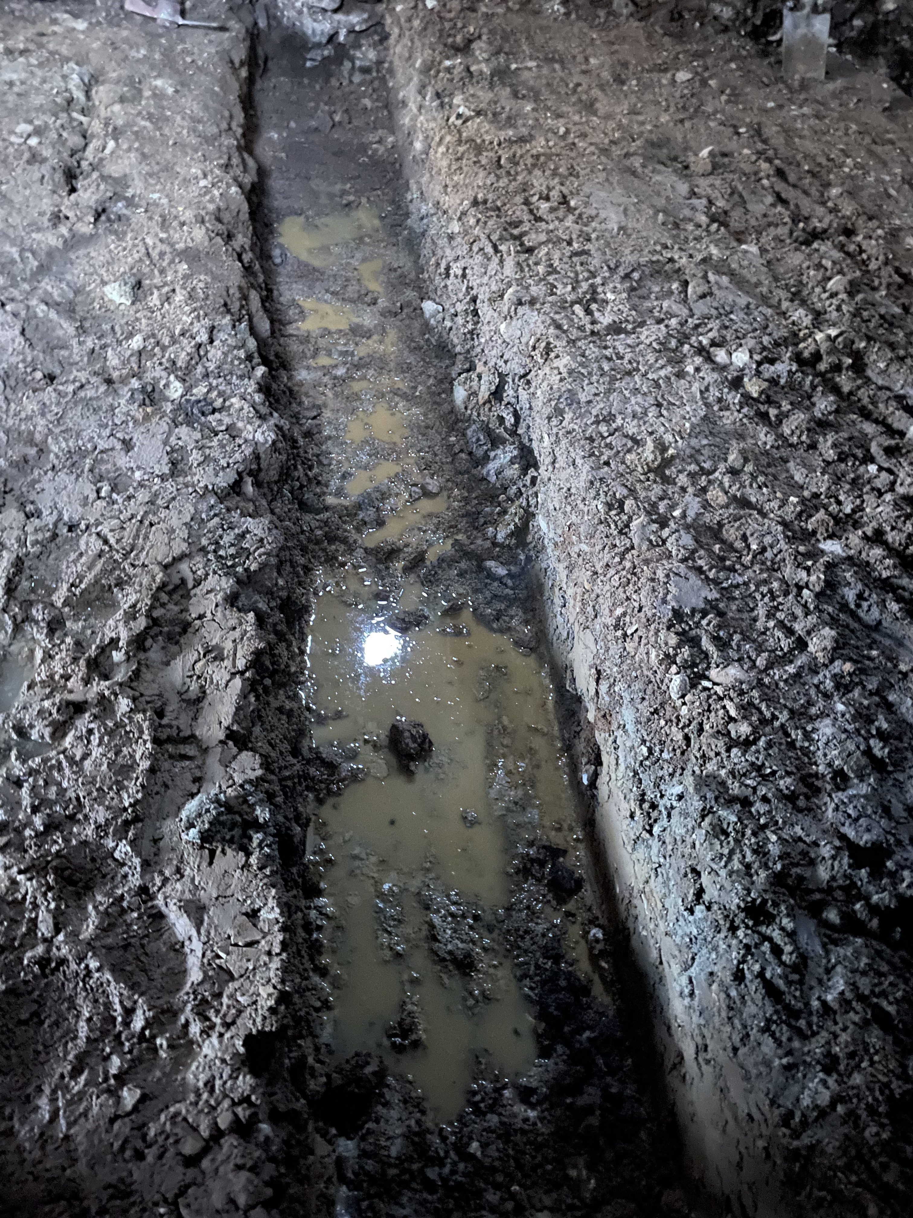 However, as they’ve been digging out the trenches for the load-bearing walls, groundwater has been coming up. This called for a visit from the damp-proofing expert, who confirmed that the whole building needs tanking (essentially covering the ground and lower walls with waterproof membrane to stop the water coming up into the building). This isn’t a cheap exercise, so it’s a bit of a headache.