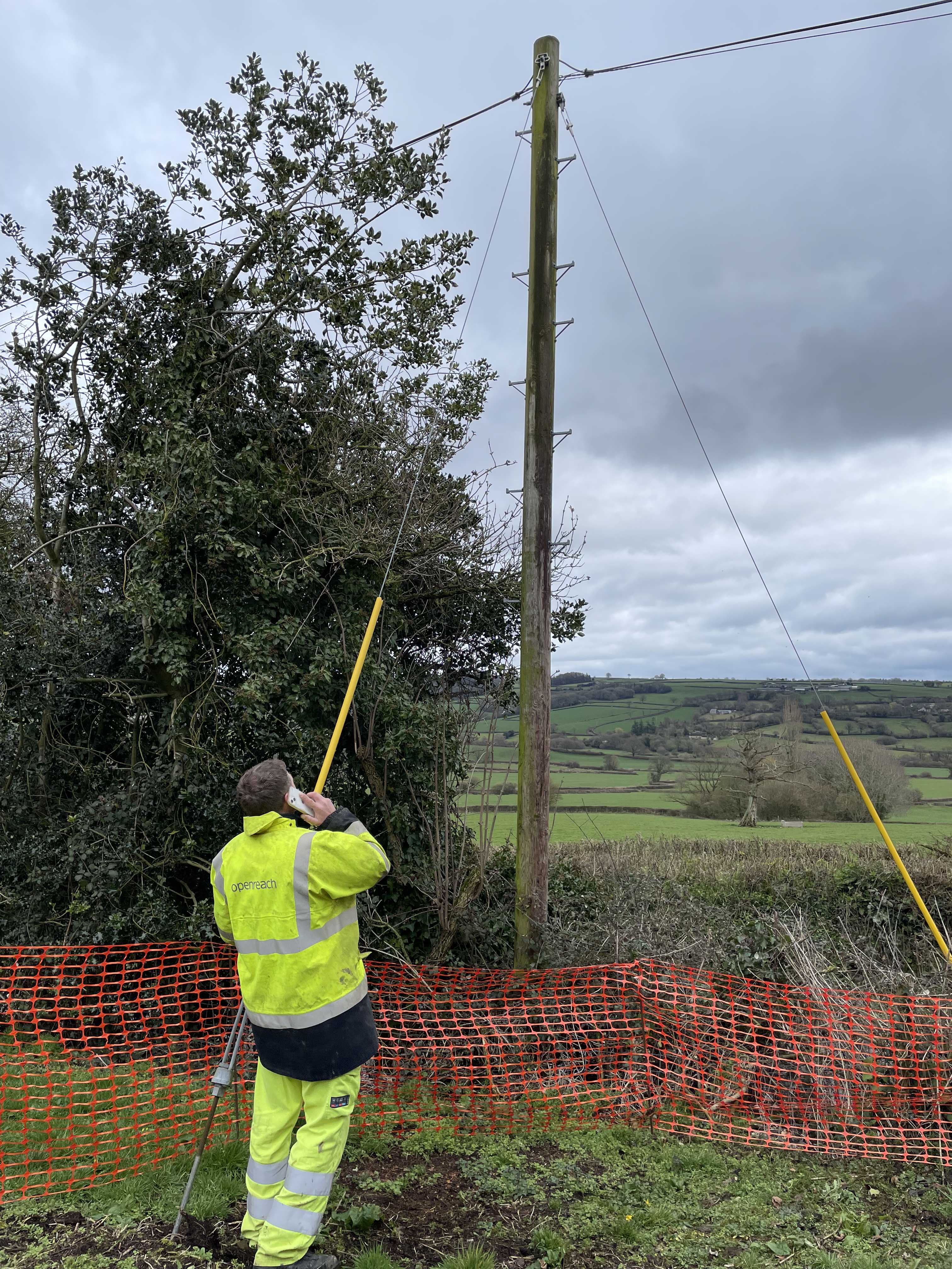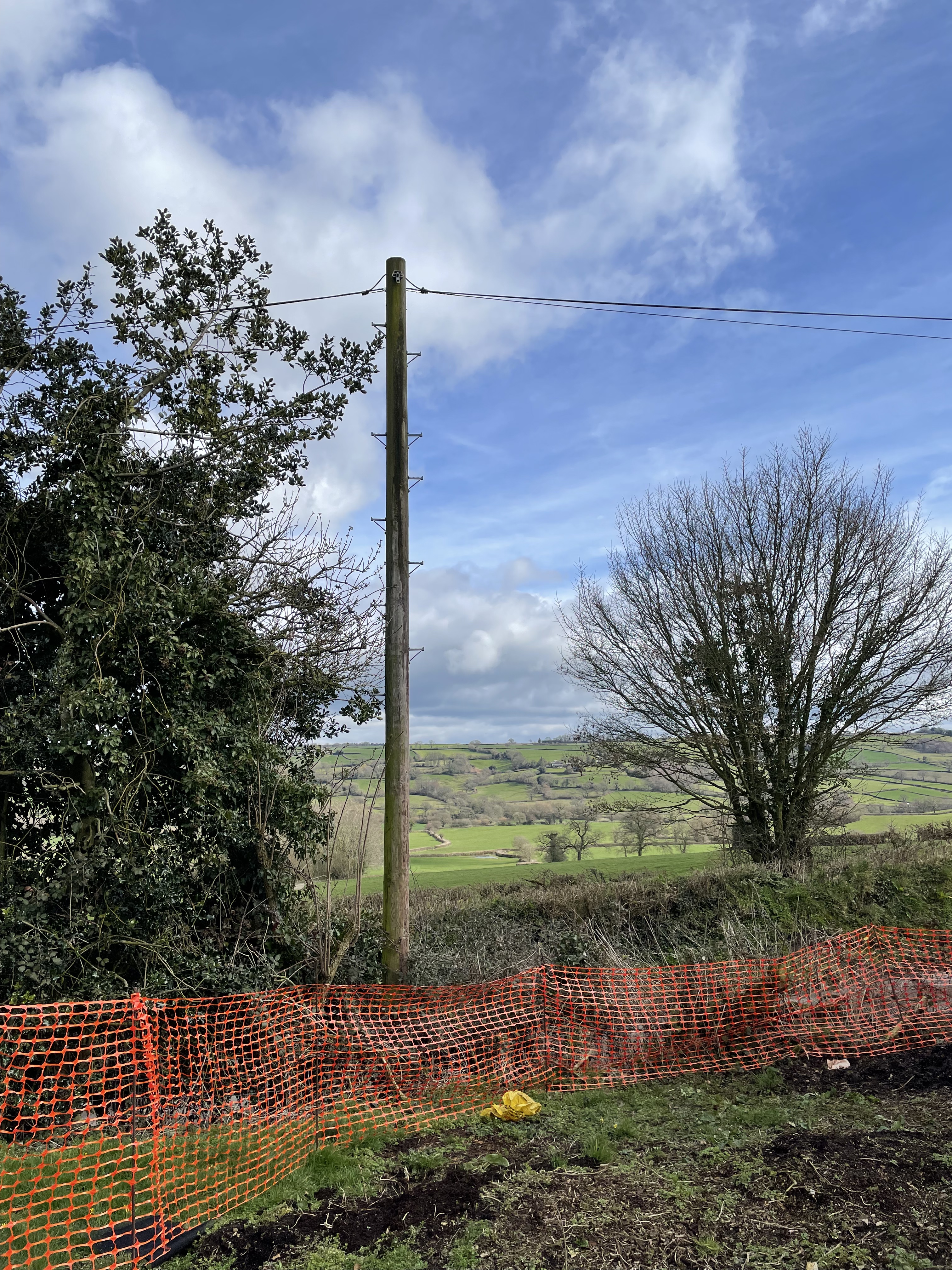 The other success we had this week was with Openreach, who came on Friday to remove the yellow-coated stays (steadying cables) from the telegraph pole outside our new lounge window and french doors. There was a bit of doubt at first about whether the stays could just be removed, but after much discussion and deliberation, the stays were off! And just in time too, as next week work is starting at the end of the shippon, and access to the pole would have been difficult – if Openreach hadn’t been able to reach the pole from our side, they’d have had to close the road to do the work – and charge us extra for it!