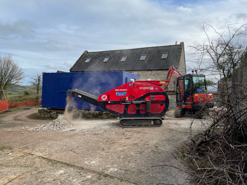 It feels like it’s been particularly busy this week. The building work seems to be progressing well despite the weather – our builders had ordered a crushing machine for a day this week to break down the concrete rubble and make it more usable. Typically, it turned out to be the coldest and most miserable day, with snow and rain almost the entire time – not a fun day to be outside crushing concrete! We’re amazed by how our builder carried on regardless and managed to get rid of at least two-thirds of the material – very impressive. He also started demolishing the old derelict barn at the same time – slowly but surely it’s coming down!