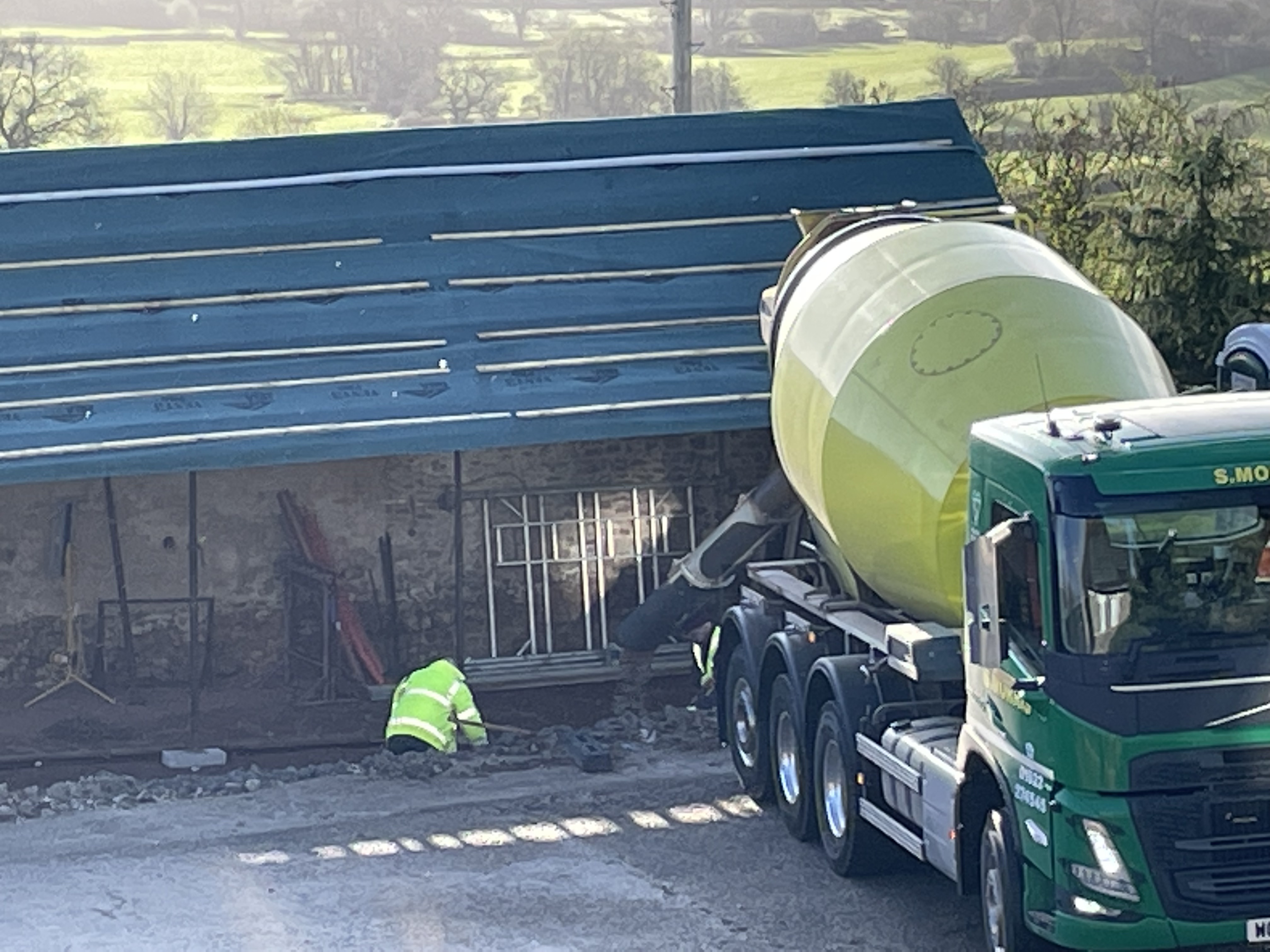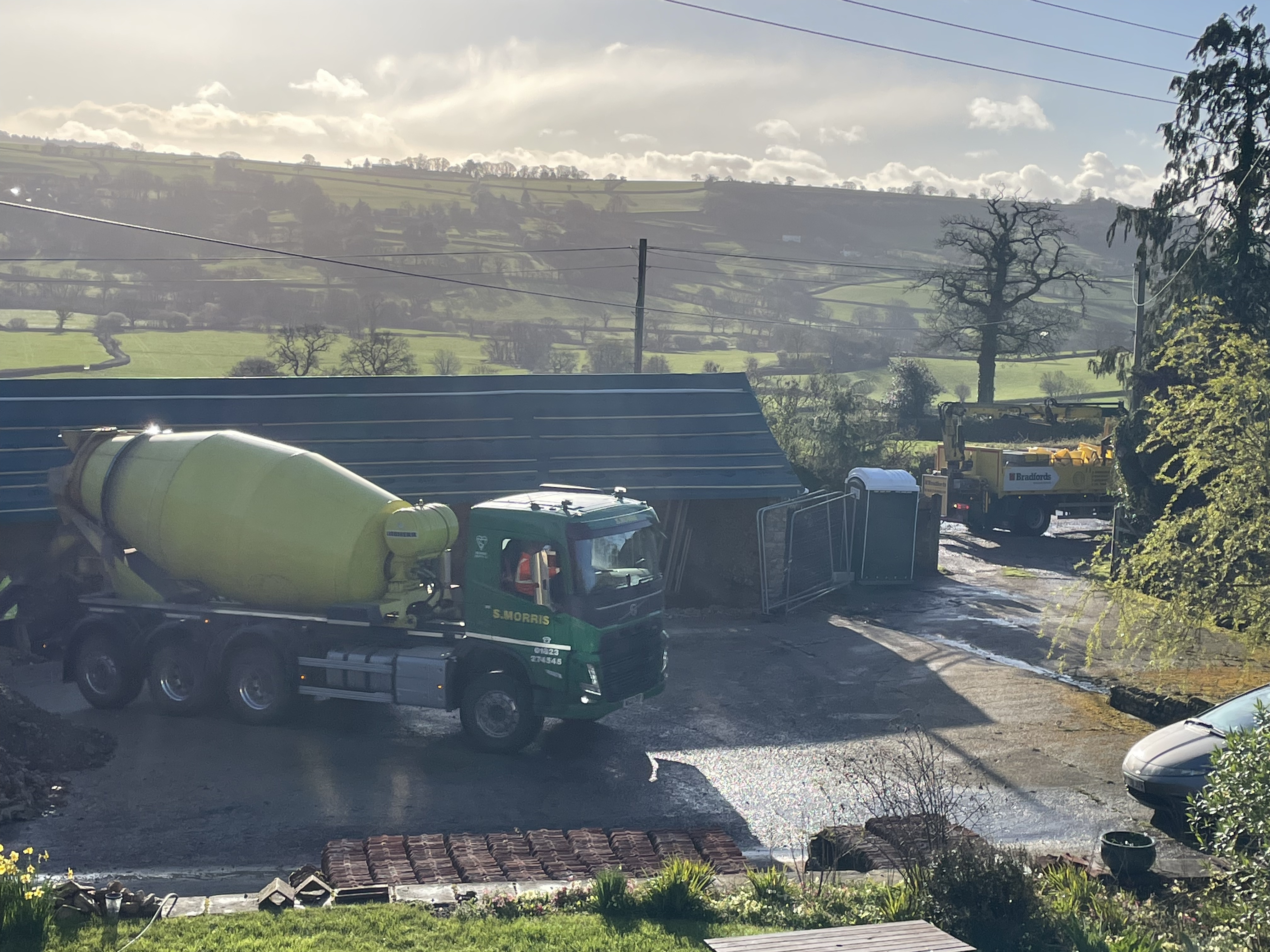 Progress continues on our shippon too. Making the most of good weather, the cement mixer arrived at 7:30am on Wednesday to pour the foundations along the front wall and extension – they’re stepped to accommodate the hill slope so the mixer had to keep moving down the wall to fill up each section. And we have a new drain in place too, replacing the old hole in the ground that kept getting blocked each time it rained. The foundations keep filling up with water (a combination of natural groundwater and rain) so we currently have a pump going to try and keep it as dry as possible, ready for the blockwork to start next week. We’re told it’s fast progress from that point onwards – we thought it’s been going pretty fast already so we’re excited to see what’s coming!