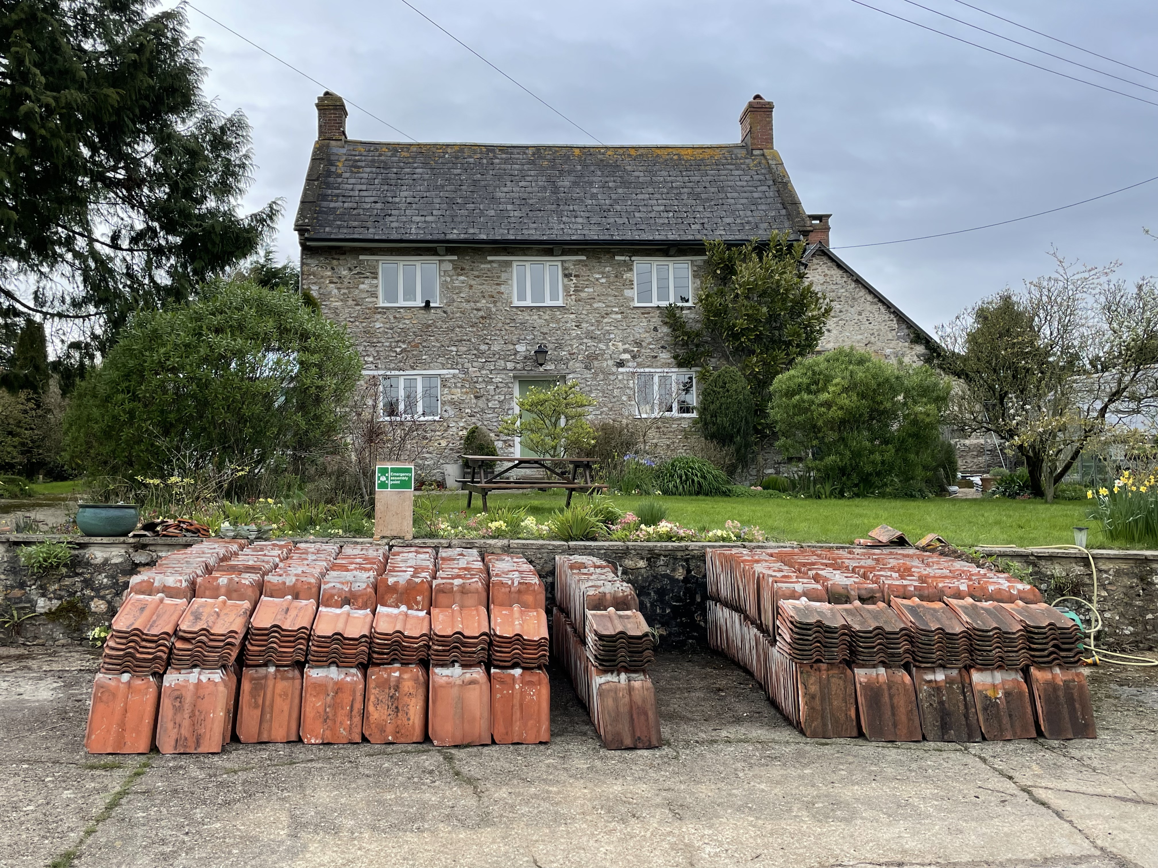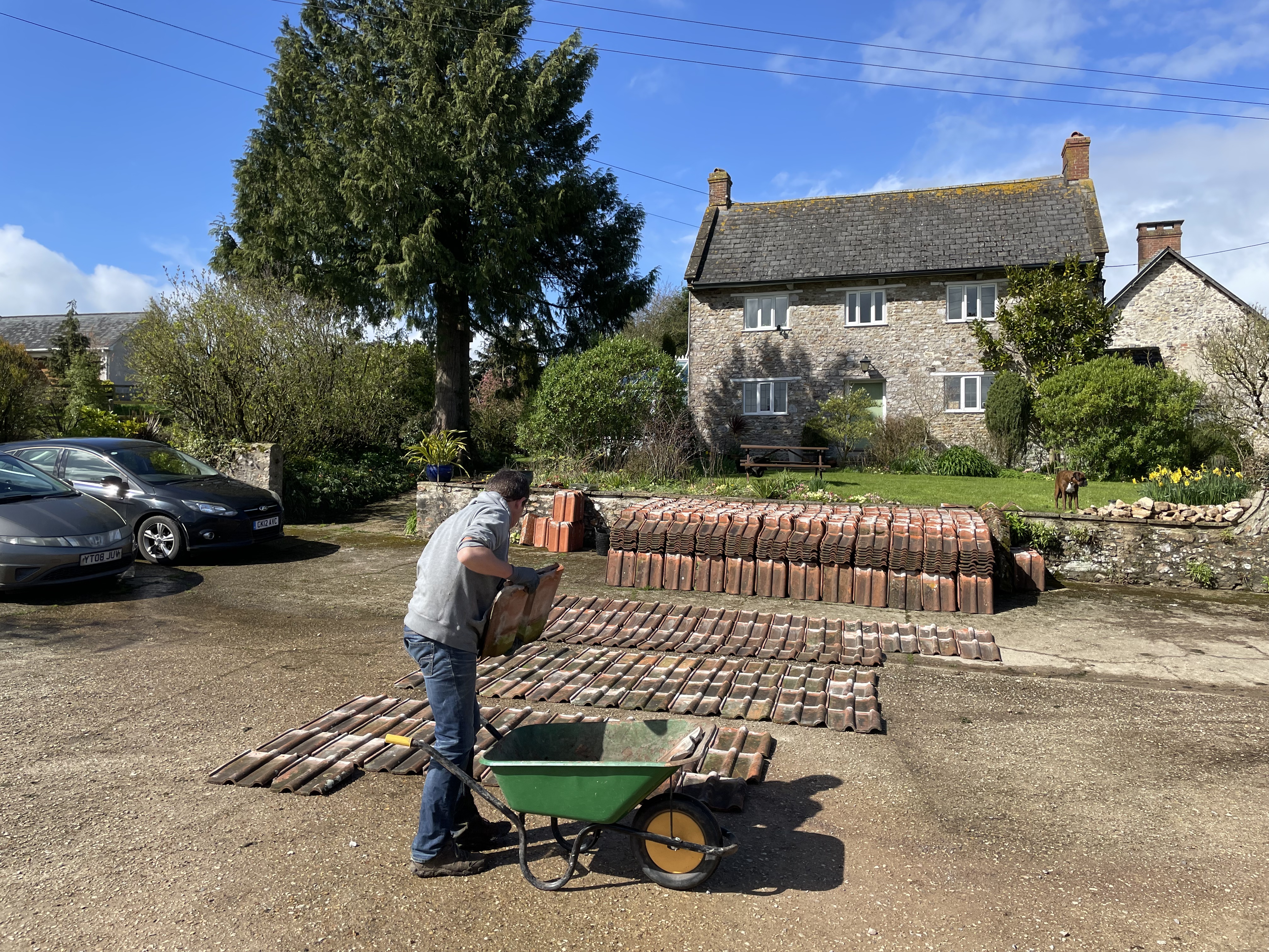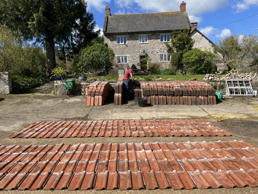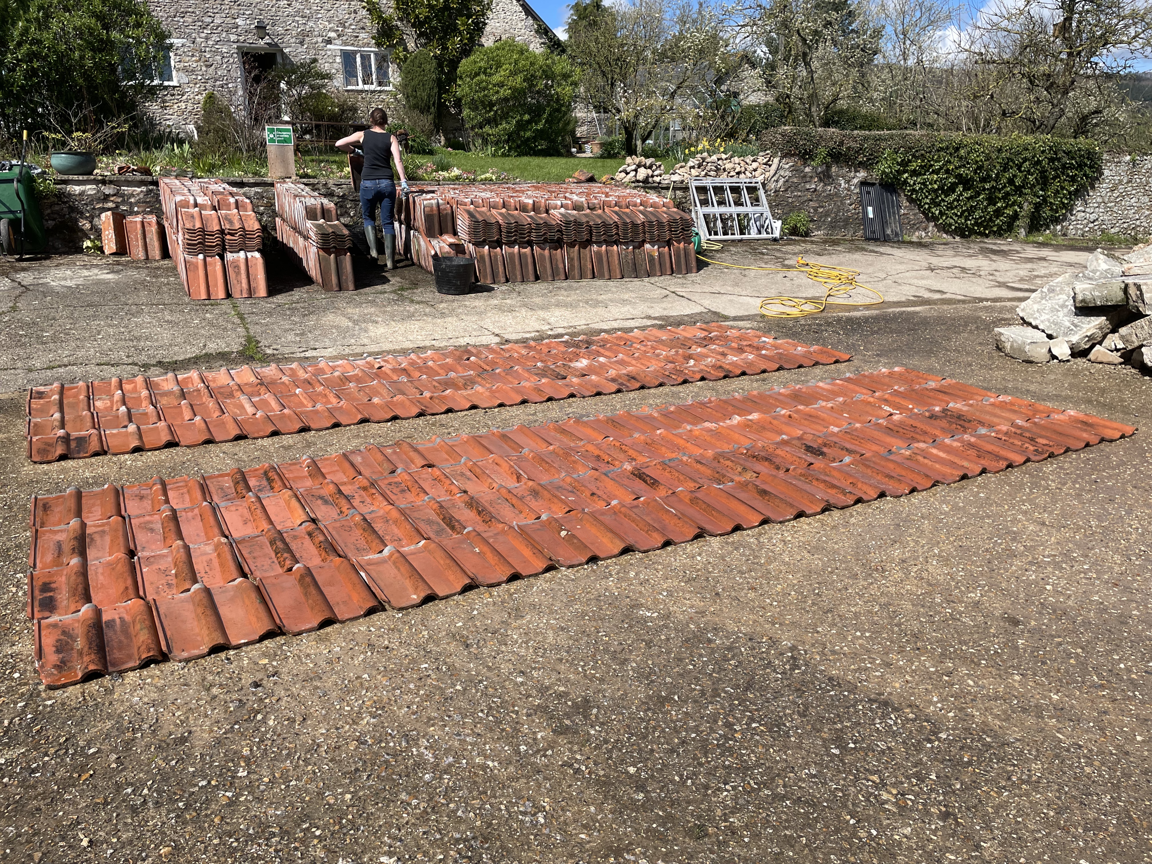 The other focus was cleaning the shippon roof tiles. It’s our once-only chance to clean the years of grime off them while they’re off the roof, and it’s a big job – we estimated that we have c.1,800 tiles of our own, not including the ones we’re buying off a neighbour that have sat in a field for who knows how long. We think we have about a month before the tiles are going back on the roof – we can’t delay this without incurring cost, and now we’ve started we can’t leave some tiles not cleaned – so most of our weekend daylight hours are spent brushing off the easy bits, and then hosing the rest of the dirt and algae off. It’s not the most glamorous job but the tiles look so different afterwards, it’ll be worth the effort when it’s finished.