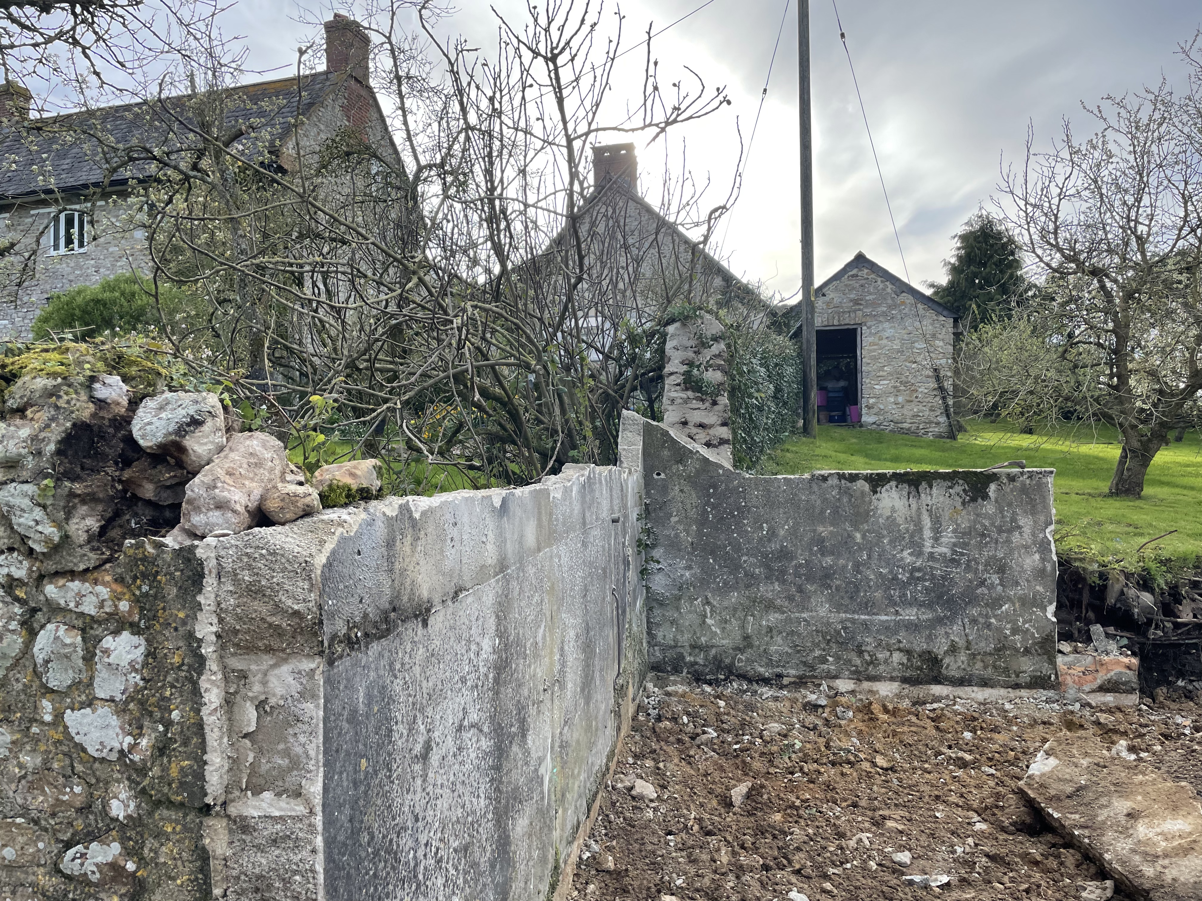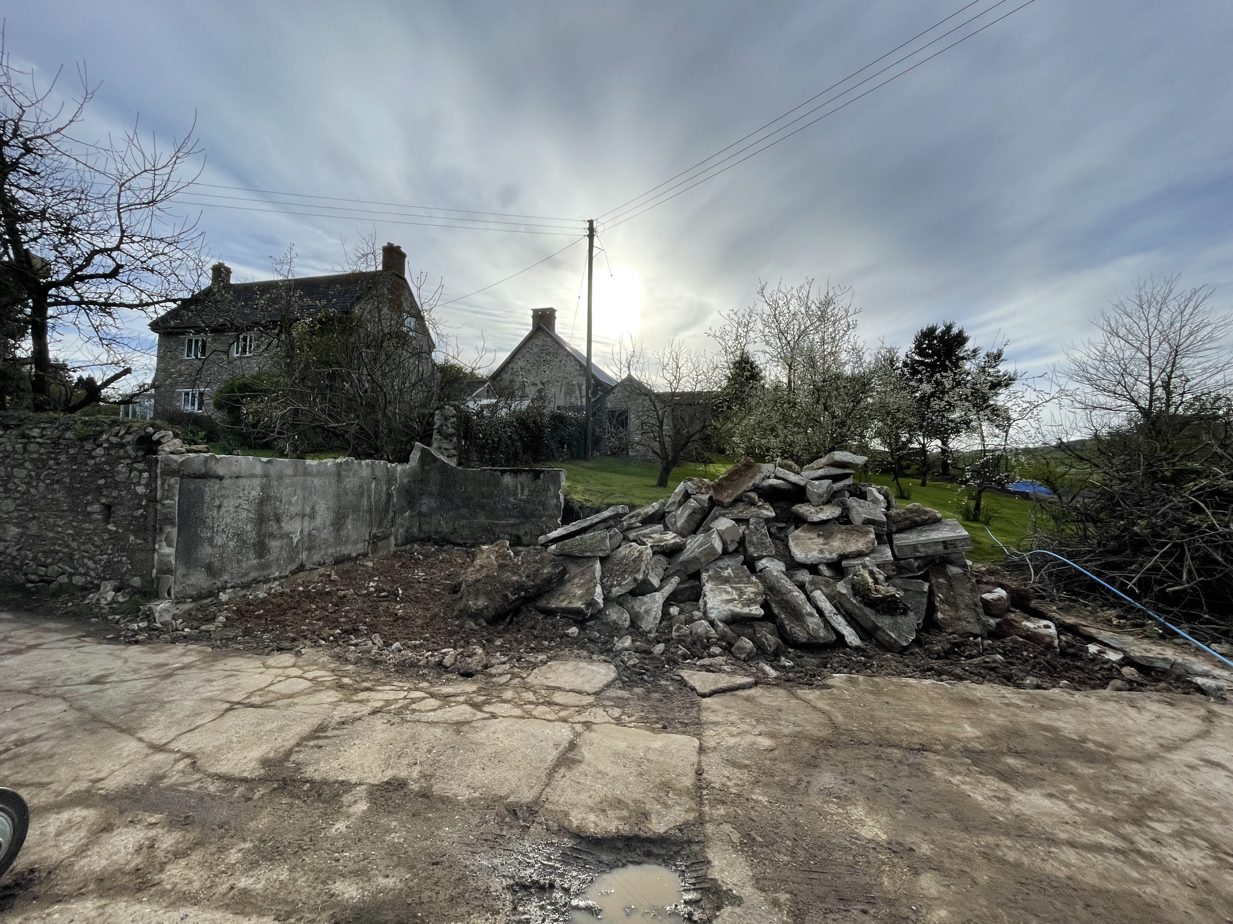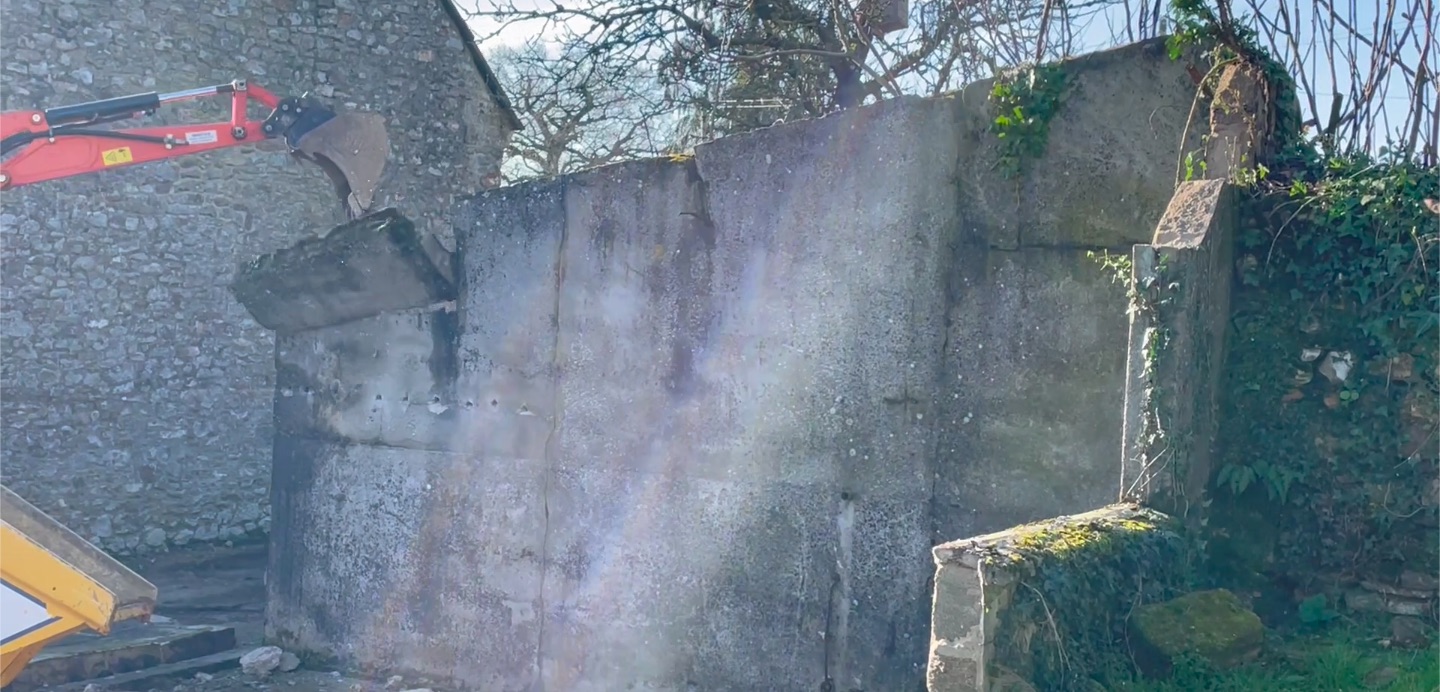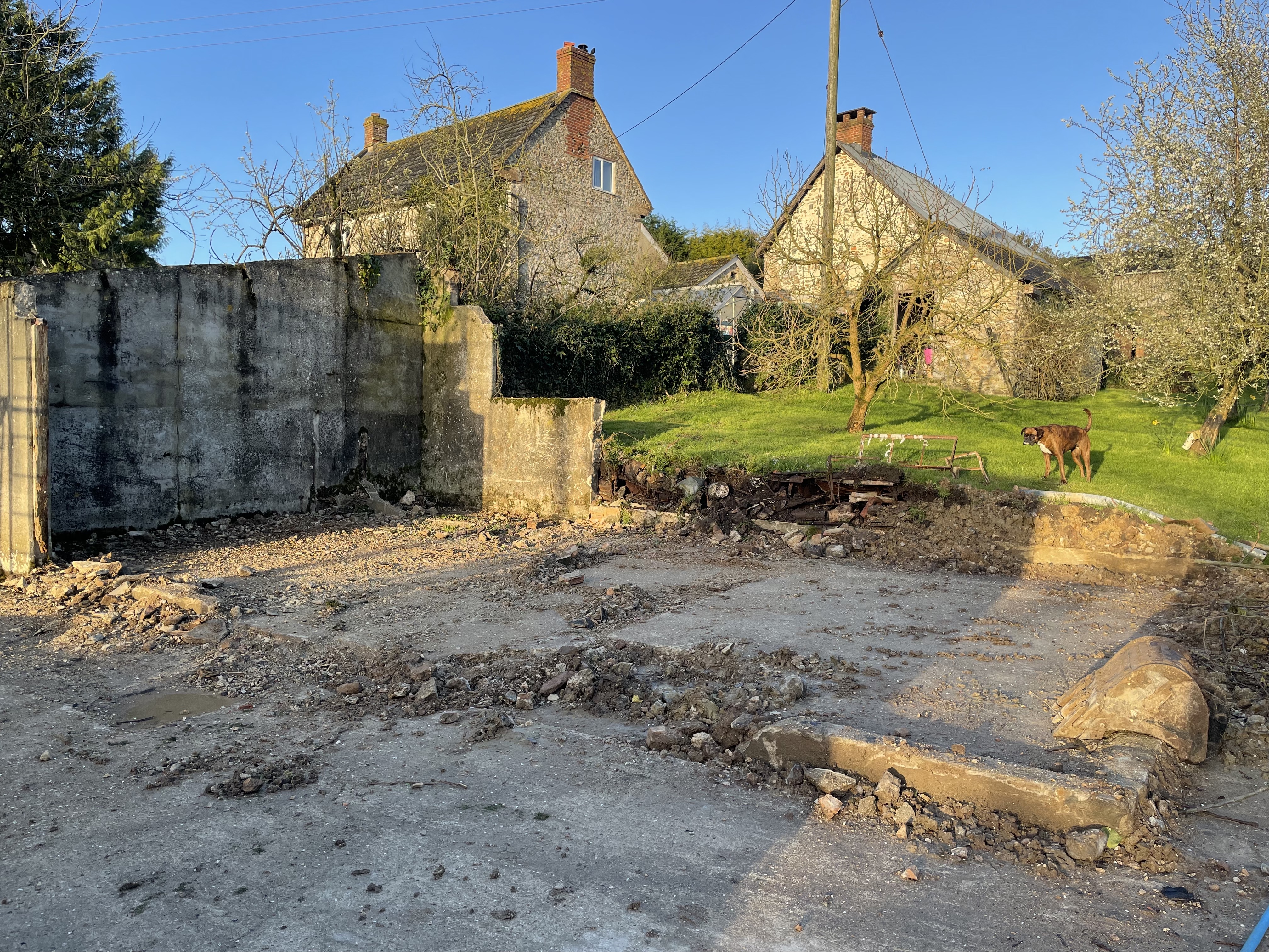 More demolition! Our builders had to prepare our derelict barn for digging foundations (planned for next week). It’s been used for storing rubble throughout the build – the final pile was taken away on Thursday so the concrete floor could be broken up. We’re keeping parts of the old walls in place as the building is cut into the hill, and the walls are holding back the soil for the front garden and orchard – it seems pointless to remove them and then put a new wall in its place. We did however need to take down the top part of the wall so it was more aligned to the height of the front garden, and keep the lower part in place, which our builders carefully did by drilling holes along the wall and then essentially snapping the top part off. They’ve done a very smart job too!