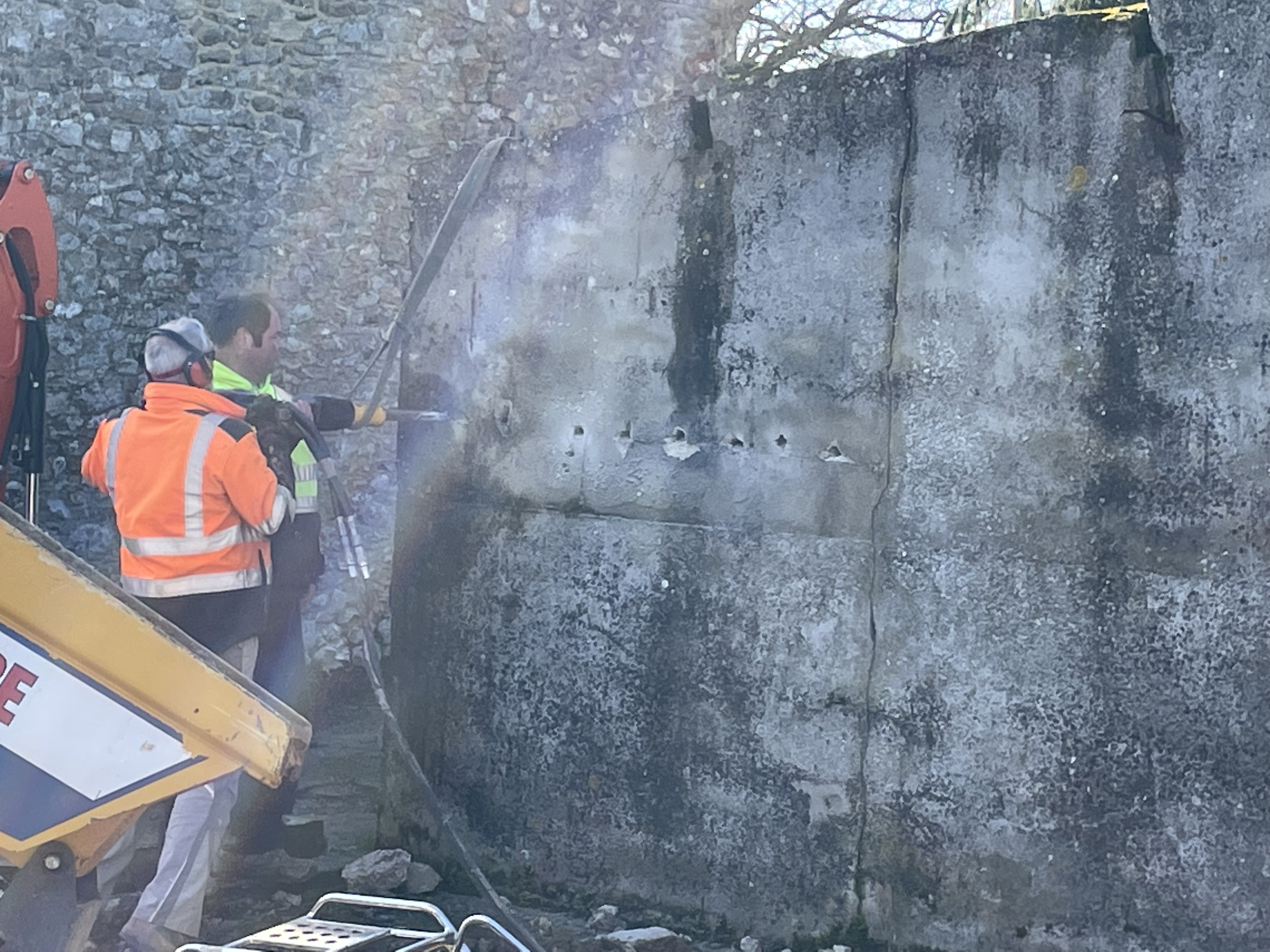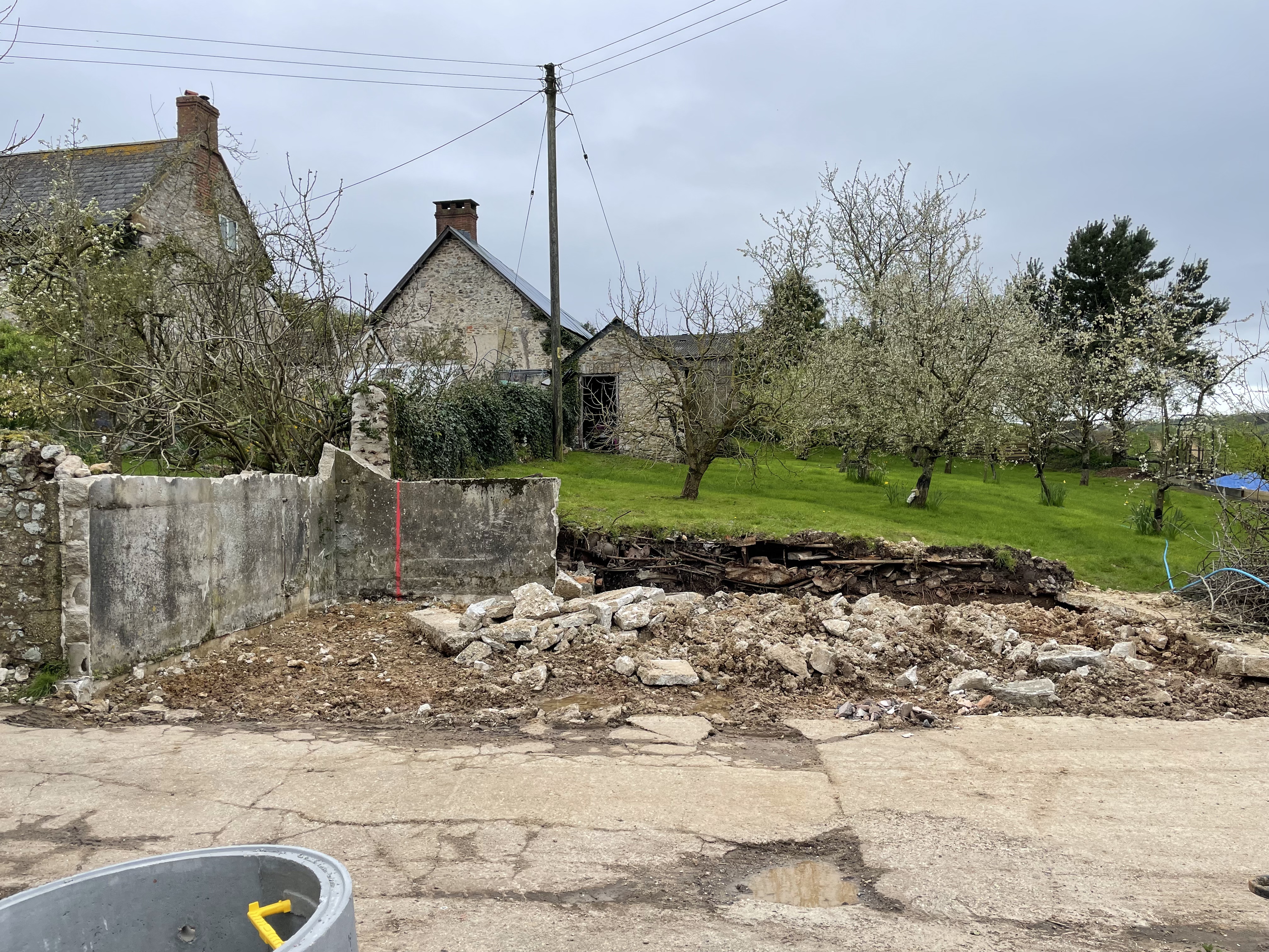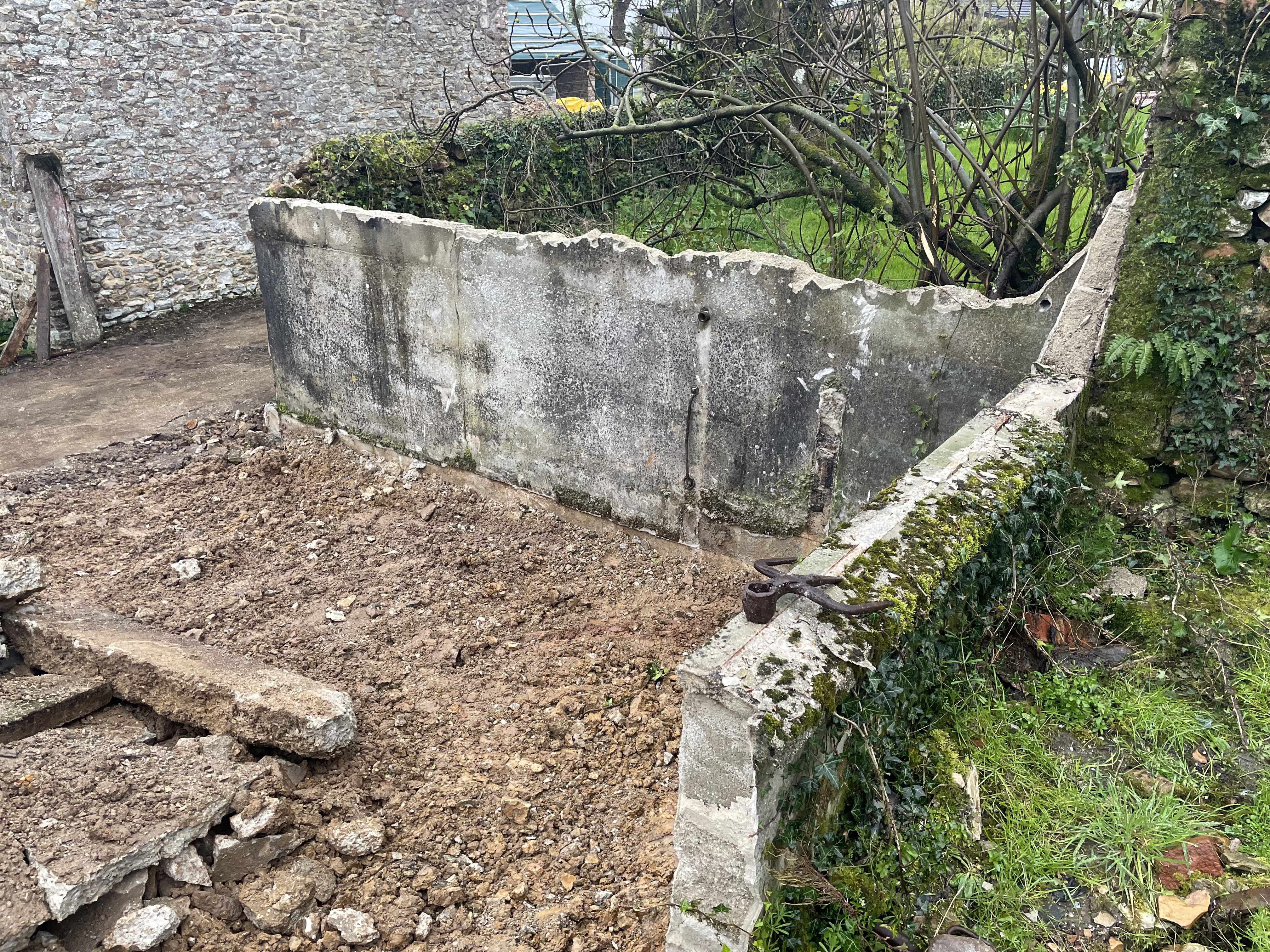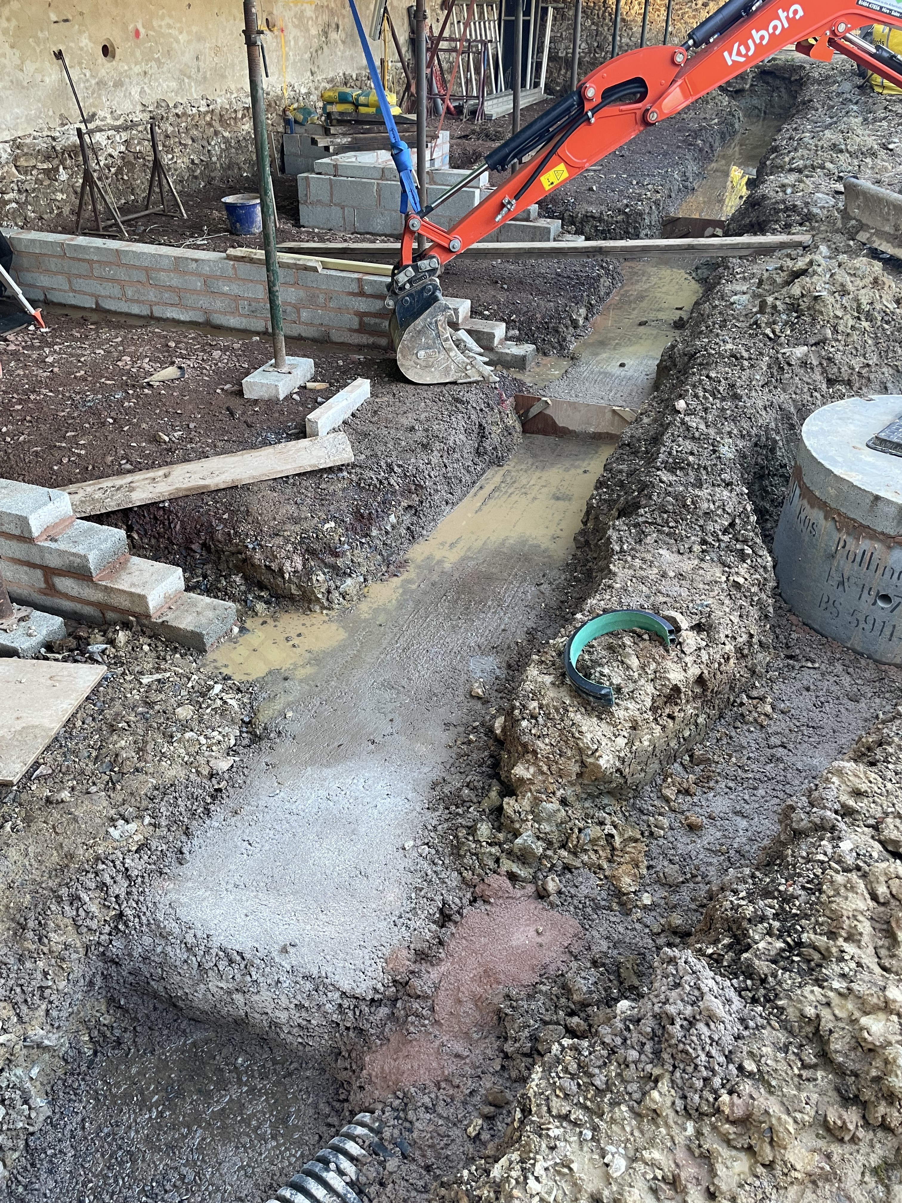 More demolition! Our builders had to prepare our derelict barn for digging foundations (planned for next week). It’s been used for storing rubble throughout the build – the final pile was taken away on Thursday so the concrete floor could be broken up. We’re keeping parts of the old walls in place as the building is cut into the hill, and the walls are holding back the soil for the front garden and orchard – it seems pointless to remove them and then put a new wall in its place. We did however need to take down the top part of the wall so it was more aligned to the height of the front garden, and keep the lower part in place, which our builders carefully did by drilling holes along the wall and then essentially snapping the top part off. They’ve done a very smart job too!