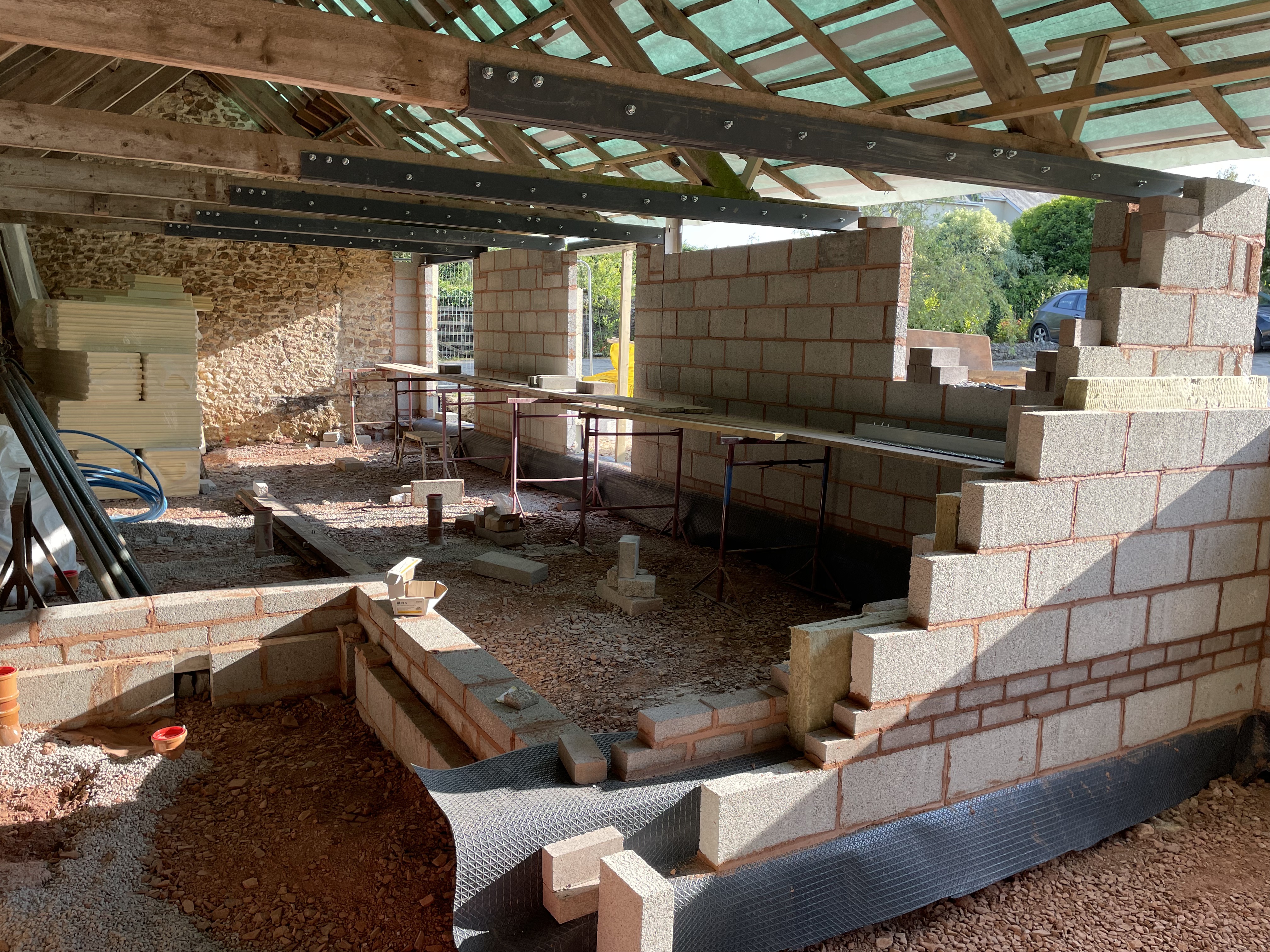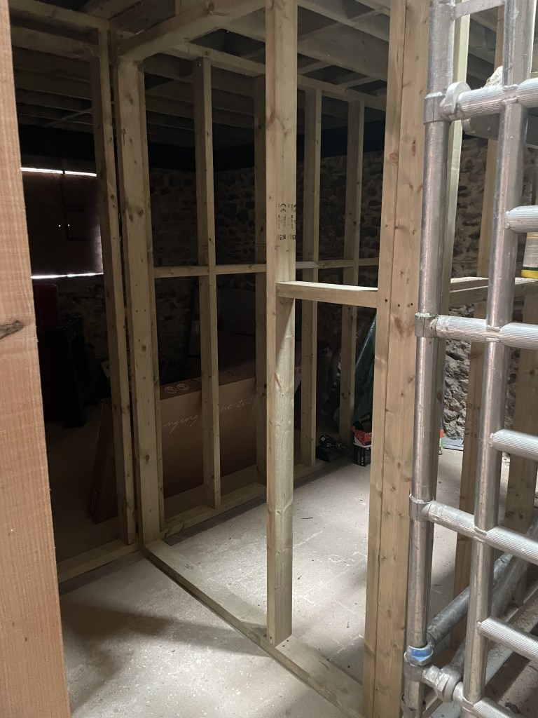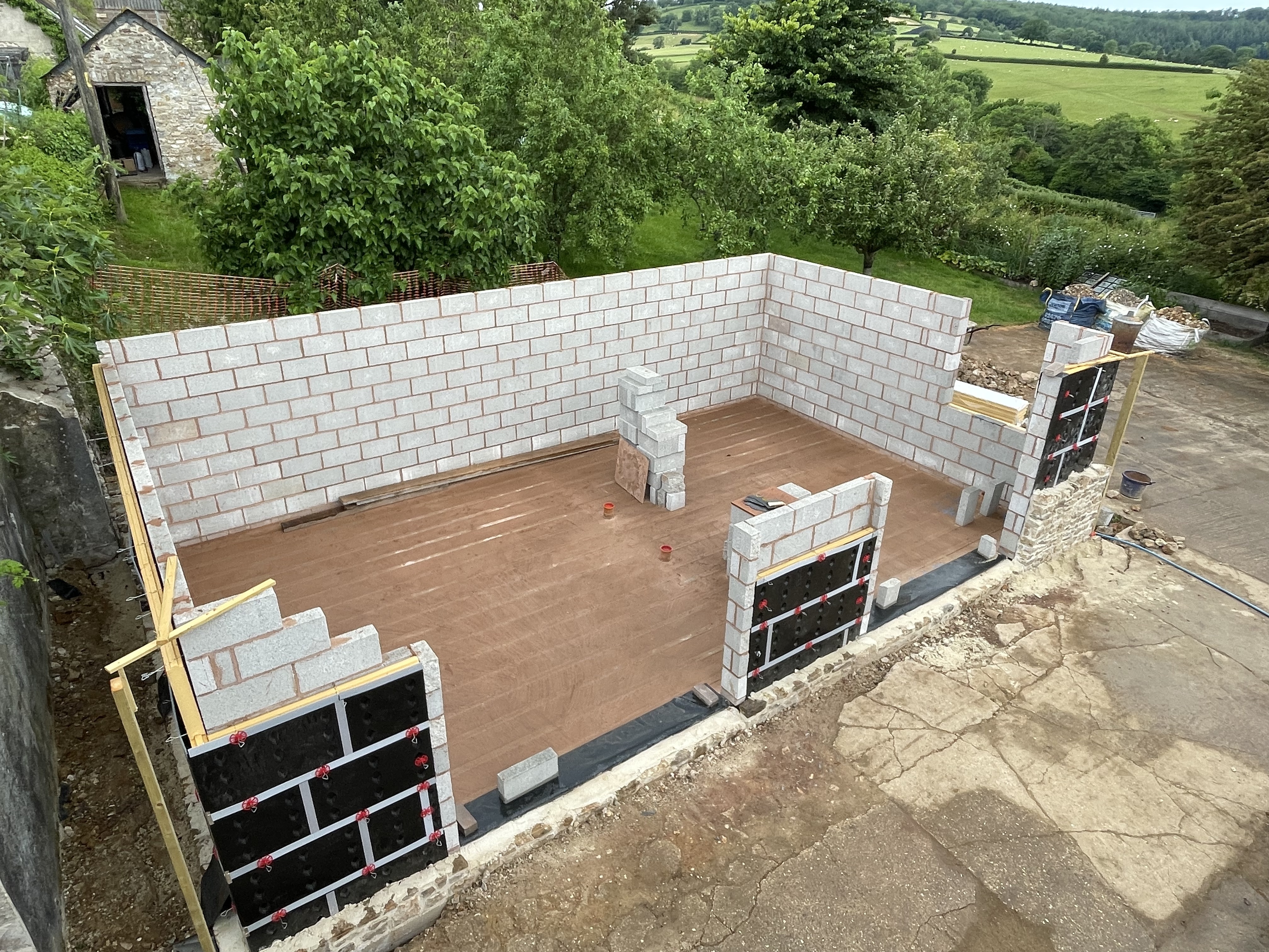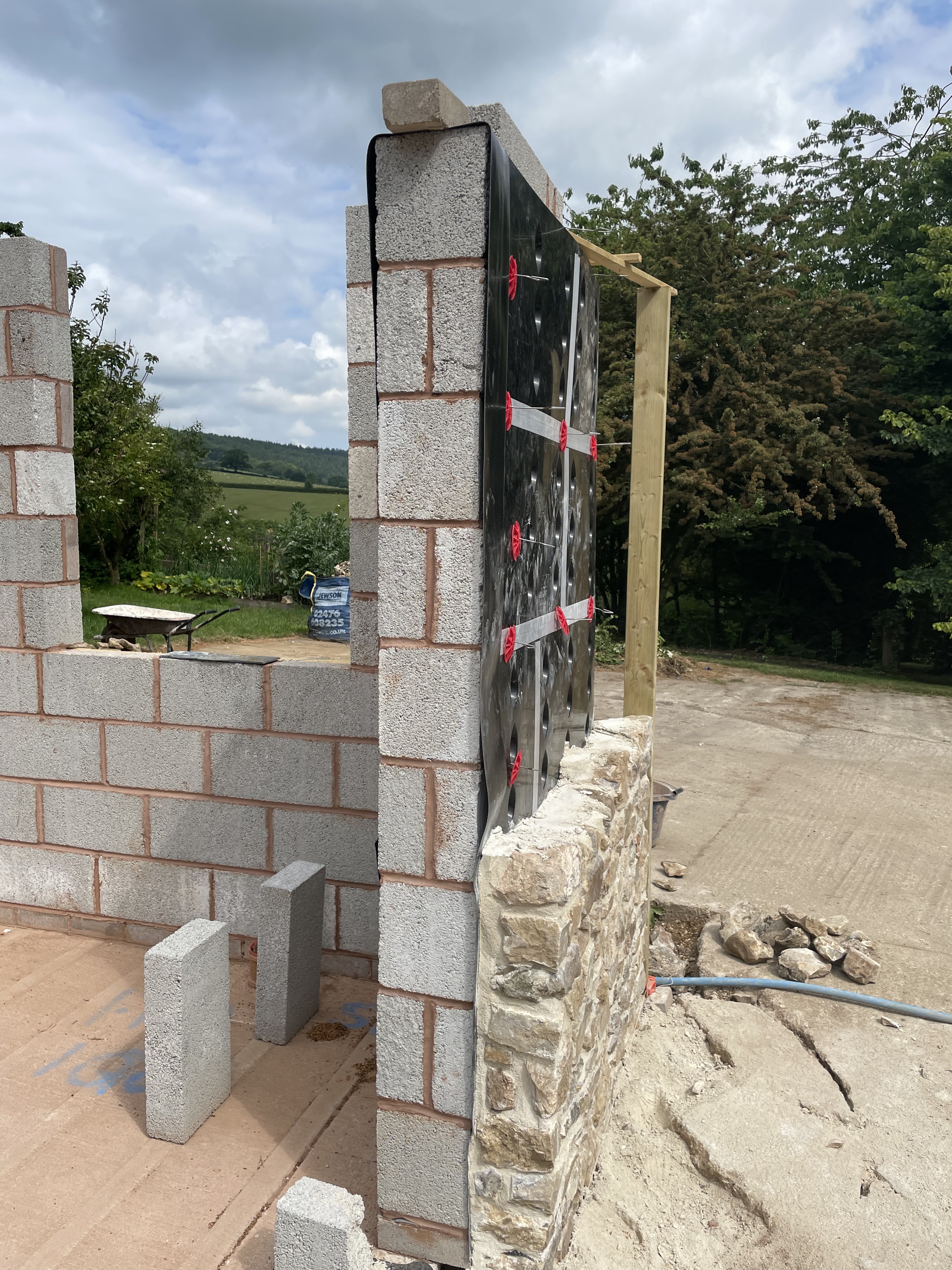 We also now have a wall along the whole of the shippon – not just the section that’s going to be the one-bed cottage. Our builders have put in the steel lintels above the windows and doors so that the building is now structurally able to stand without the internal acrow props. With the insulation starting to go on too, it looks like a real building again! Our stonemason has been incredibly busy building up the walls of our garage ancillary building too – his work is genuinely incredible. We’re starting to run out of stones already though, which is so frustrating as we have plenty of stones we didn’t get time to dig out from the footprints of the old barns, one of which is now under the builders’ cabin. We’re doing whatever we can to save money so having to buy something we have but can’t access is a little galling.