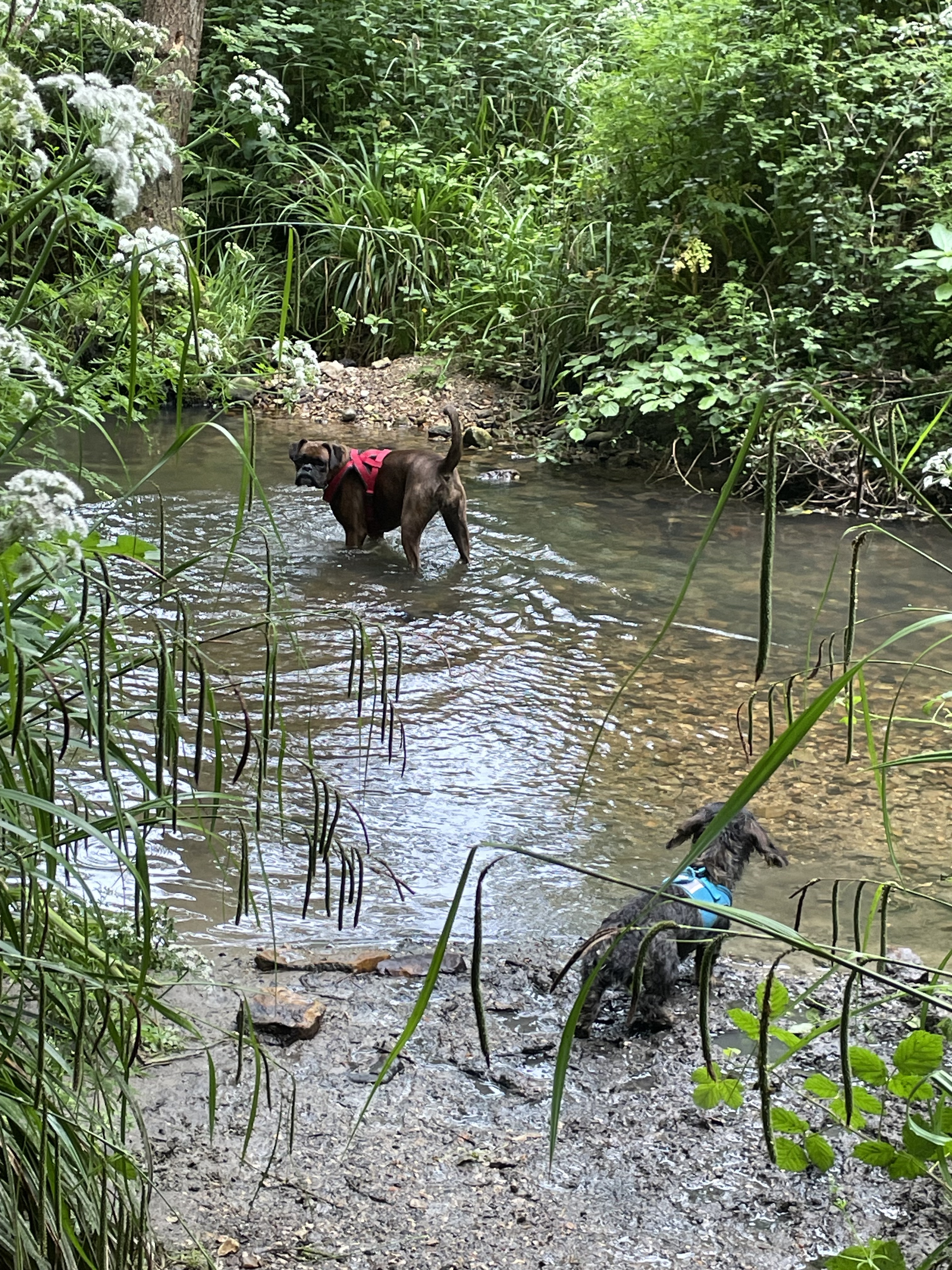 We took the opportunity with this weekend’s visitors to test out a local day out to the coast – walking from Uplyme to Lyme Regis, crossing the county border into Dorset. It’s only just over a mile walk each way, down the River Lim path mostly through woods – nicely shaded in sunny weather. We started off at the Talbot Arms in Uplyme for a drink before setting off, then grabbing lunch in Lyme Regis. We want to be able to offer our guests plenty of ideas about things to do – this one is particularly good for dog owners as most of the beaches in Lyme aren’t dog friendly in the summer months, so this gives an opportunity for pooches to stretch their legs before getting to Lyme where it’s a bit busier.