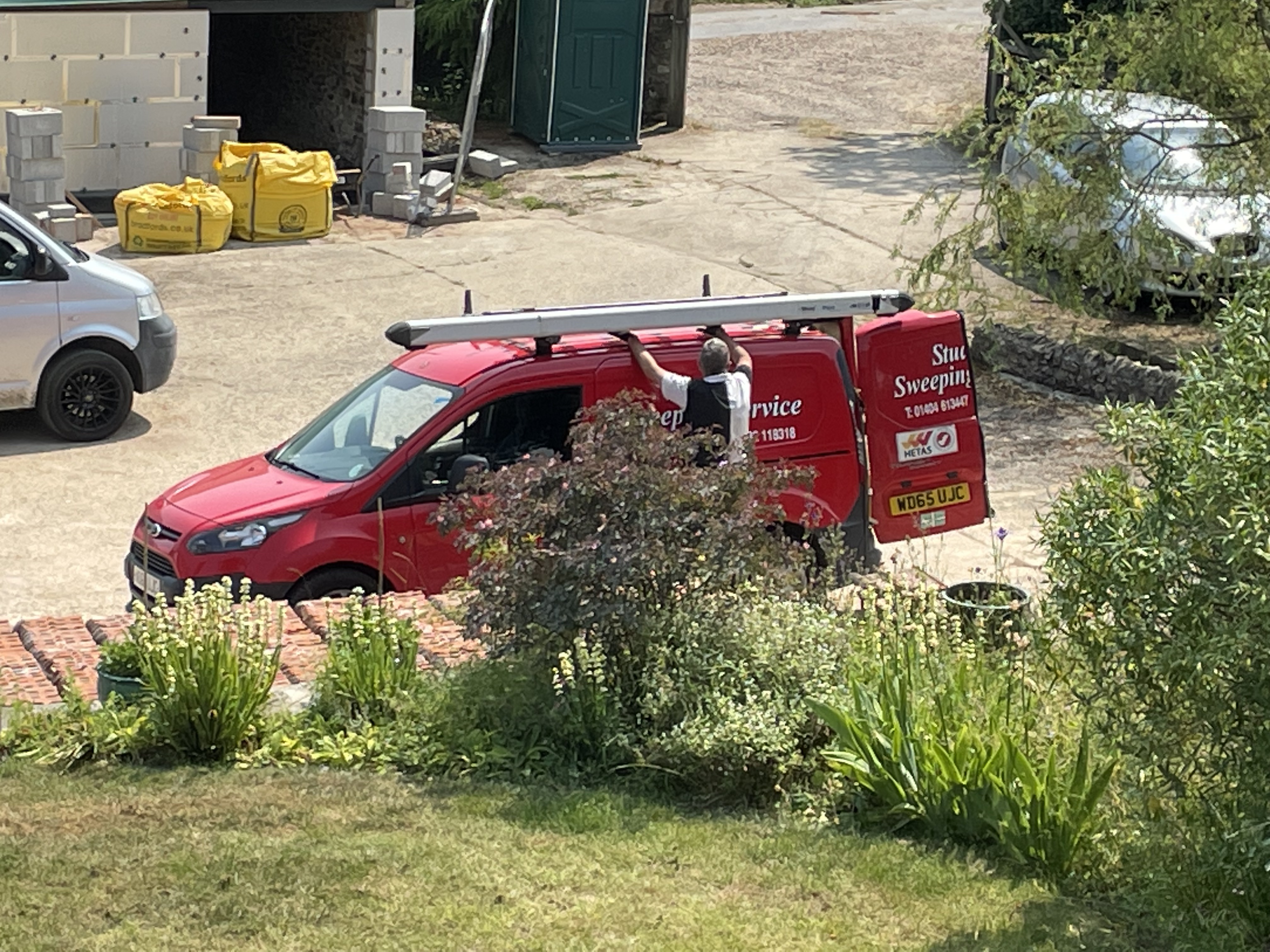 We’ve also managed to make a bit of progress this week. First of all, our chimney sweep took advantage of the scaffolding around the farmhouse to thoroughly clean the chimney from the outside, replacing the cowl to stop birds nesting in the chimney. We have birds nesting pretty much everywhere including the chimney, and while we don’t use the wood burner during nesting season, we can’t guarantee our guests won’t do the same, so it’s safer to stop them nesting there in the first place.
