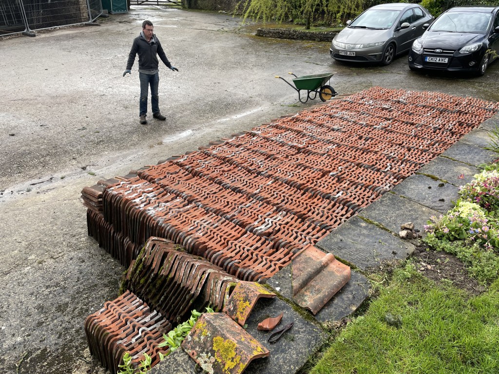 And the shippon tiles are all clean and ready for replacing on the new roof!