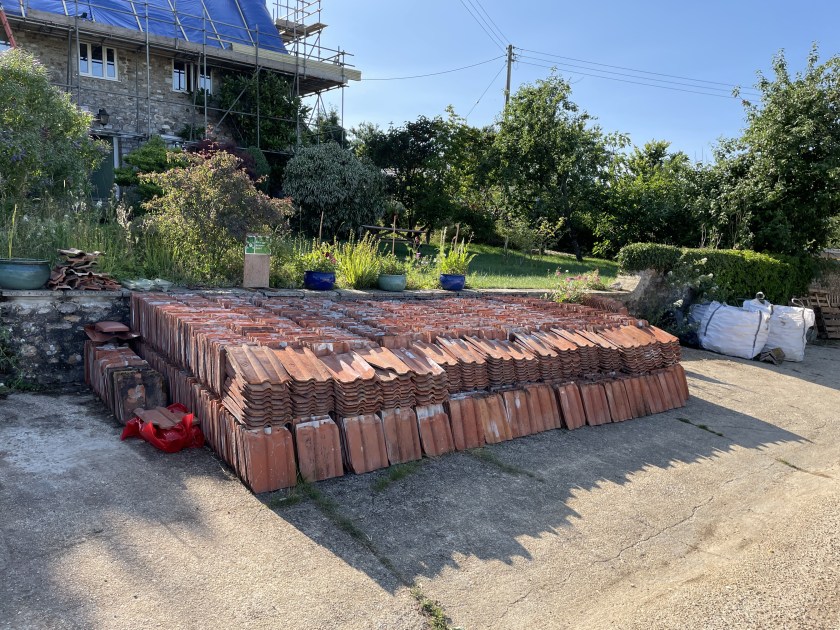 It’s been a busy week for us as well. John’s finally managed to finish cleaning all the shippon roof tiles now (we estimate there are approx. 2,500) including the ones we bought from our neighbour, which hopefully should cover the extension.