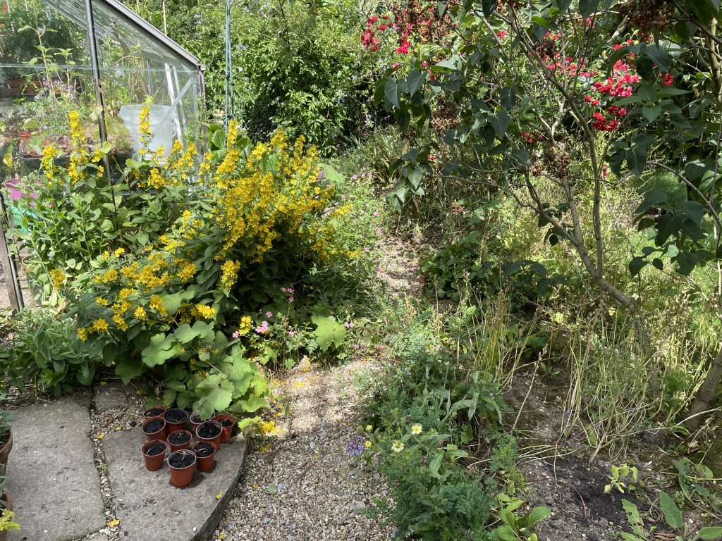 Most of the weekend we spent out in the garden catching up on cutting back and planting out – much needed as the last few weekends have been busy and we’ve only managed to snatch a few hours in the evenings. Our pumpkin/squash arch is taking shape – there are 12 different varieties on the arch in total and most seem to be trailing nicely (and fast!). We picked most of our peas and mangetout to freeze – our experimental new location seemed to work ok (under the pine trees) but our makeshift bamboo pea frames let us down and kept collapsing, which damaged the plants. It’s firmed up our next project though – a new raised bed and properly-made frames that we can put up each year. That’ll give us something to do over winter! We tried something we’d seen on facebook this year with our strawberries – little organza bags that stop the birds and slugs eating them as they ripen. Safe to say it was mostly a failure – the birds simply pecked through the bags – or tore them off and strew them across the garden… ah well, at least we tried.