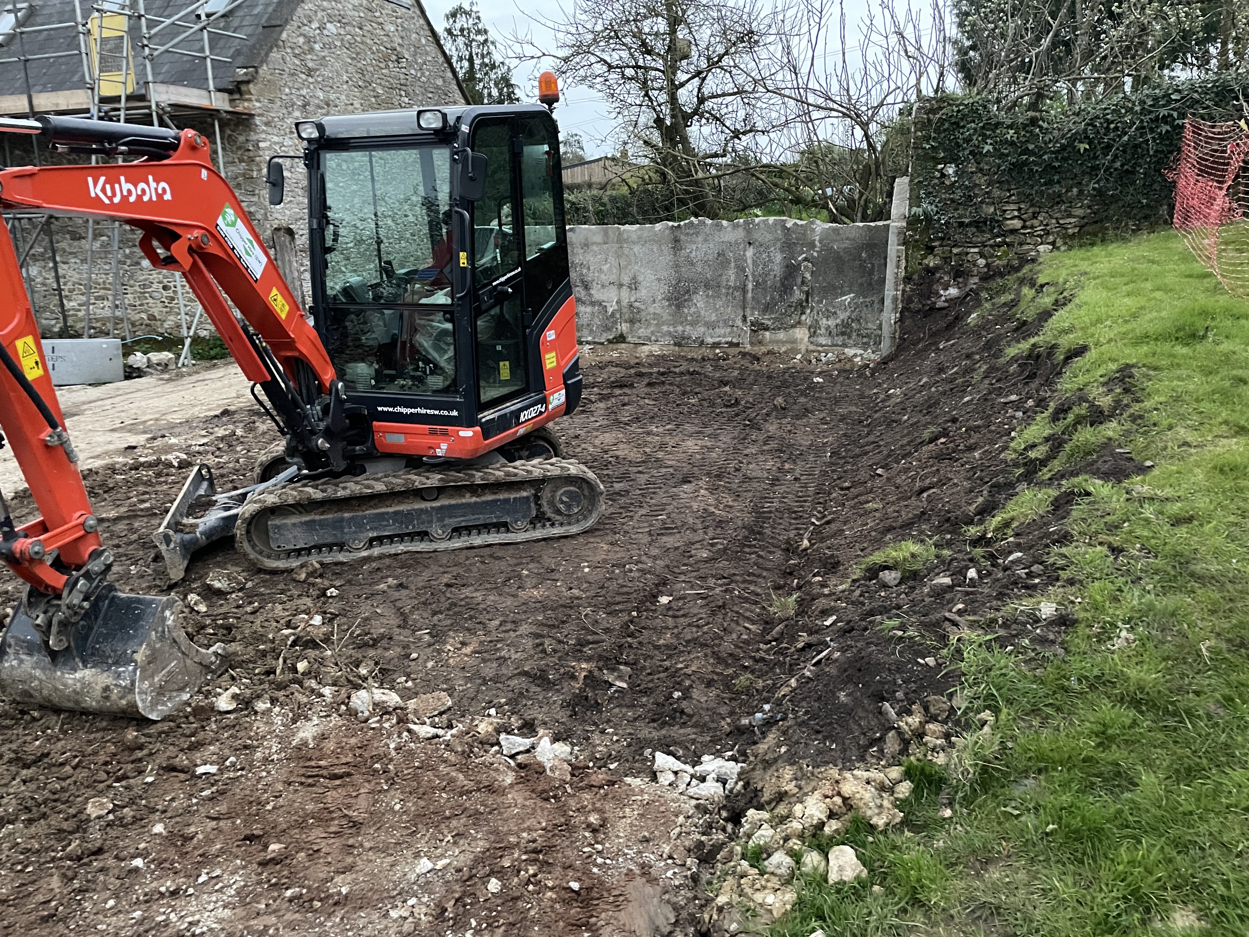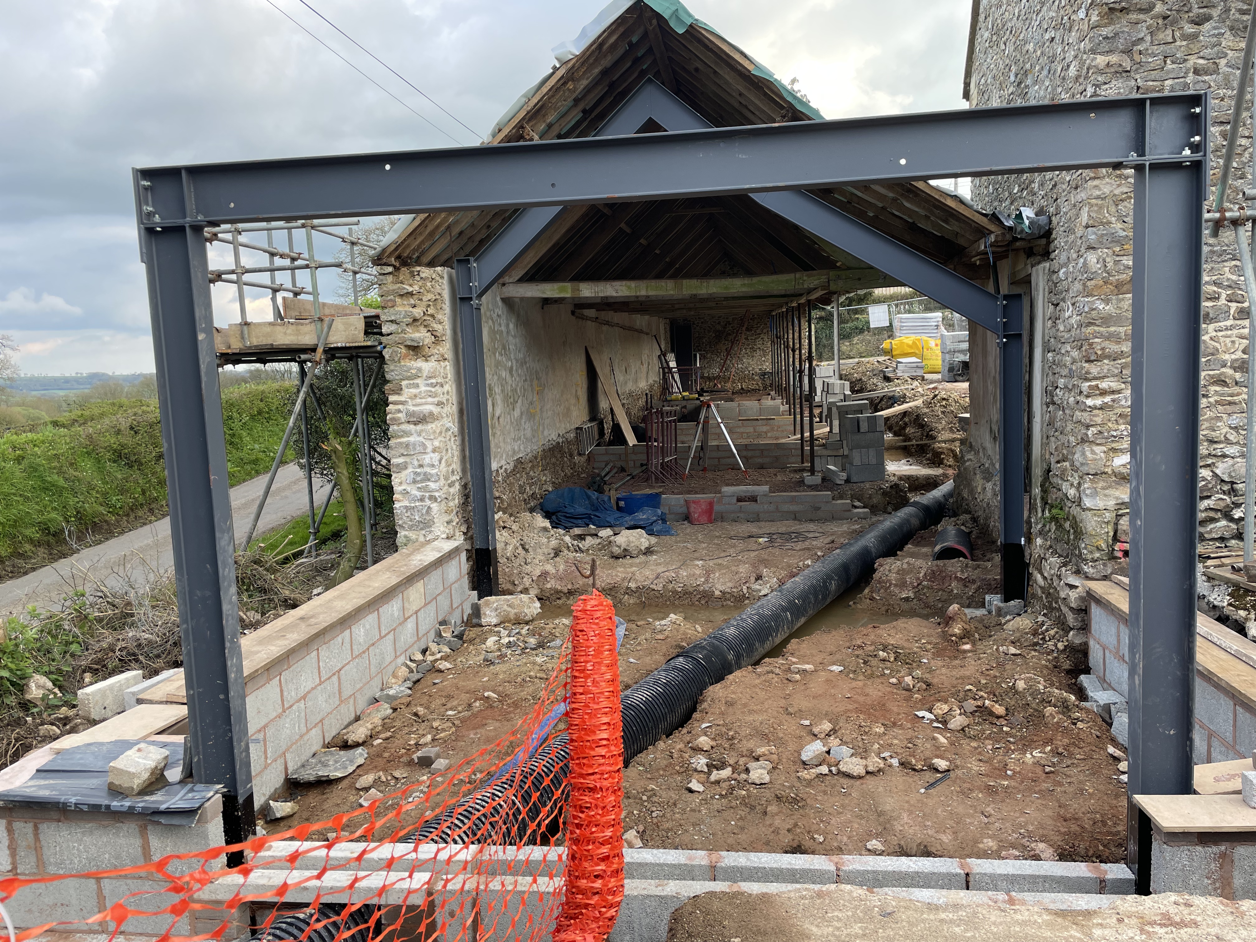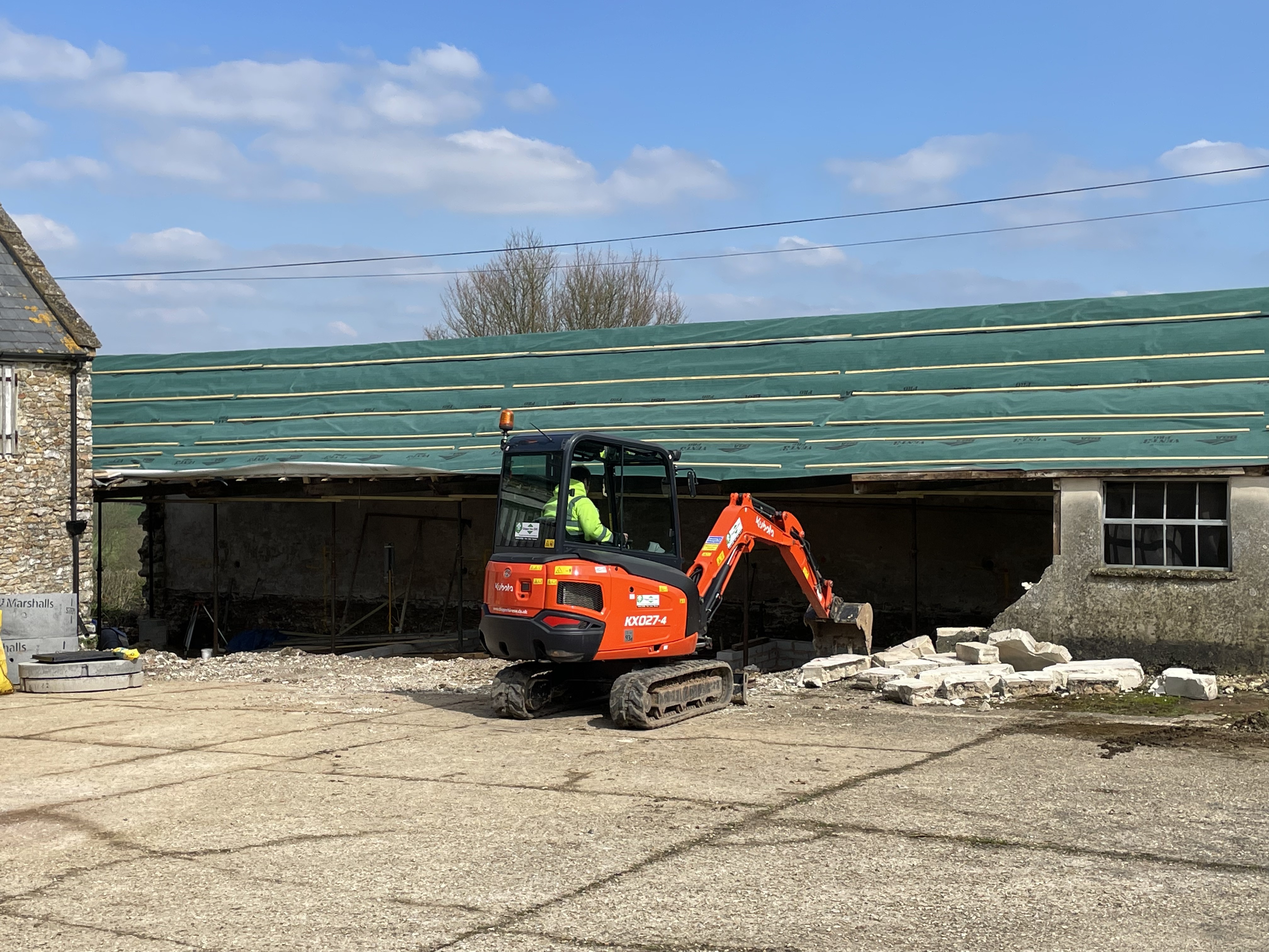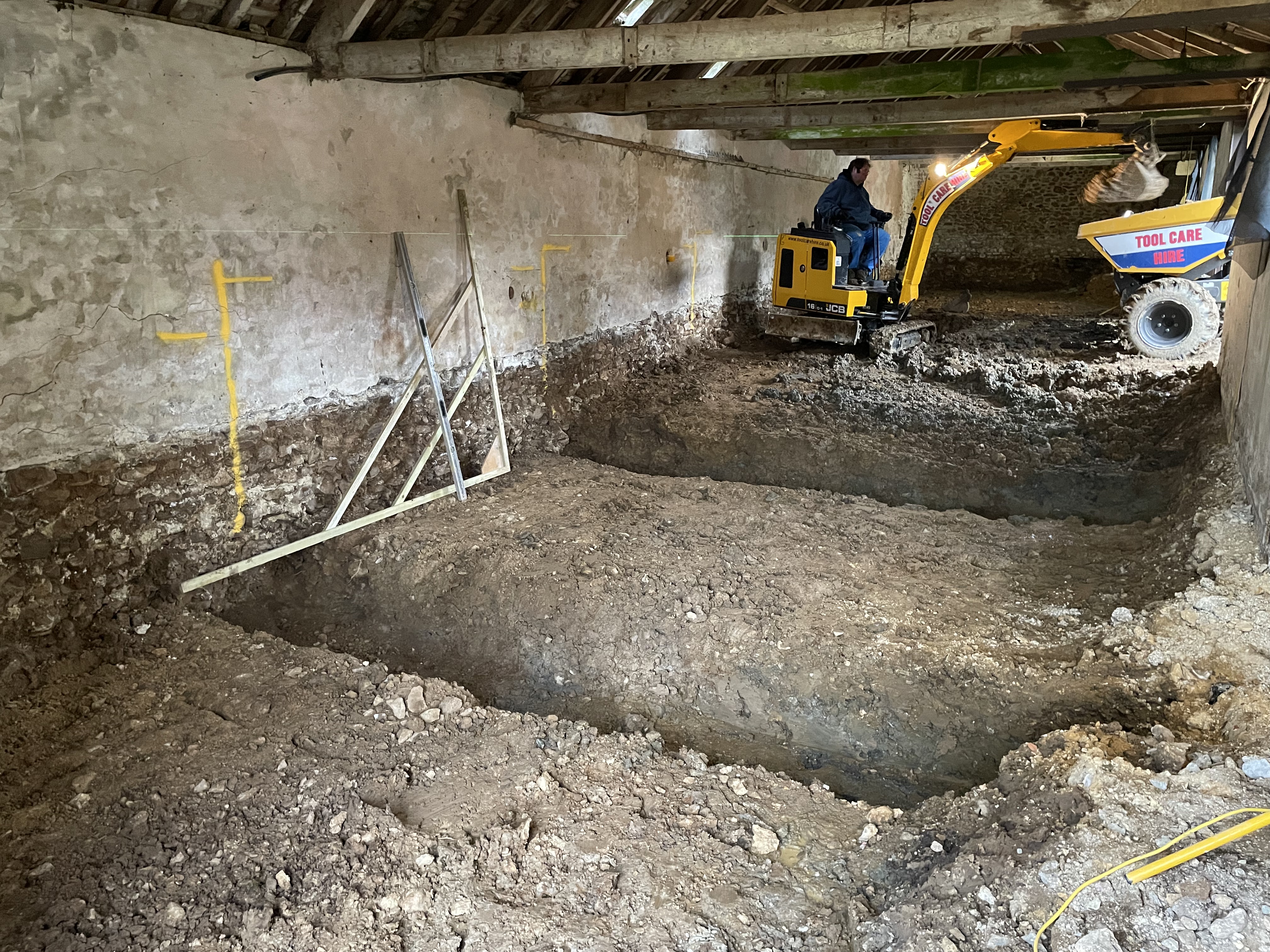 We distracted ourselves over the second half of last year by getting on with all the site preparation we needed to do. This ranged from easier jobs like gradually clearing out the barns (mainly into the top floor of the farmhouse, which we then had to move again last month) and reclaiming beams for lighting, through to organising works with third parties like BT Openreach, National Grid, and our bat license and mitigation plans. Looking back, we spent at least half our weekends from August to February either moving things out of the way (compost bins, piles of woodchip and stones, and boxes), cutting back years of vegetation off the shippon (memories of that bitterly cold weather will stay with us for a while!).